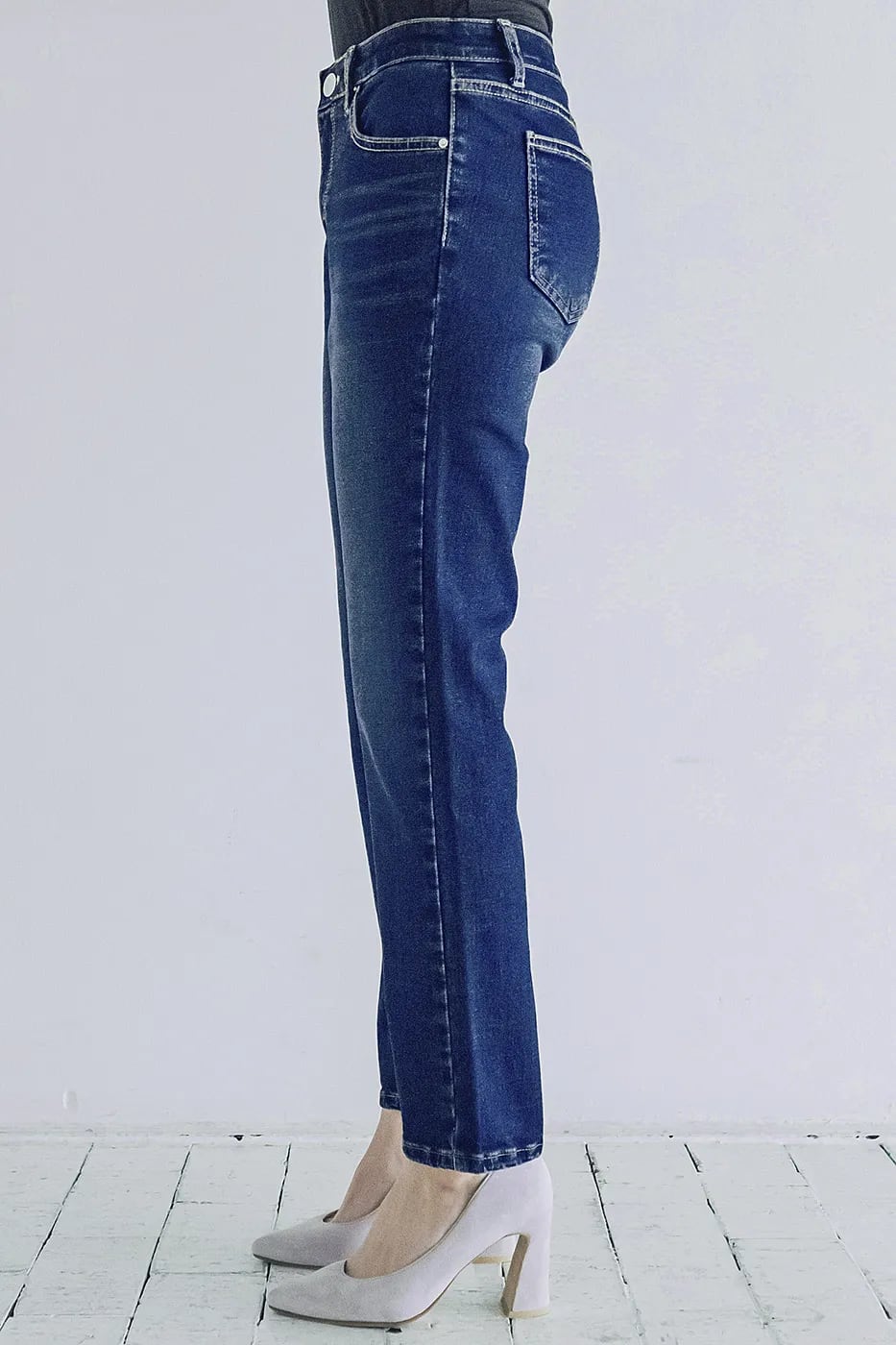 伸びやかなストレッチデニムに、ウエスト部分は幅広ゴムでフィット感抜群。
