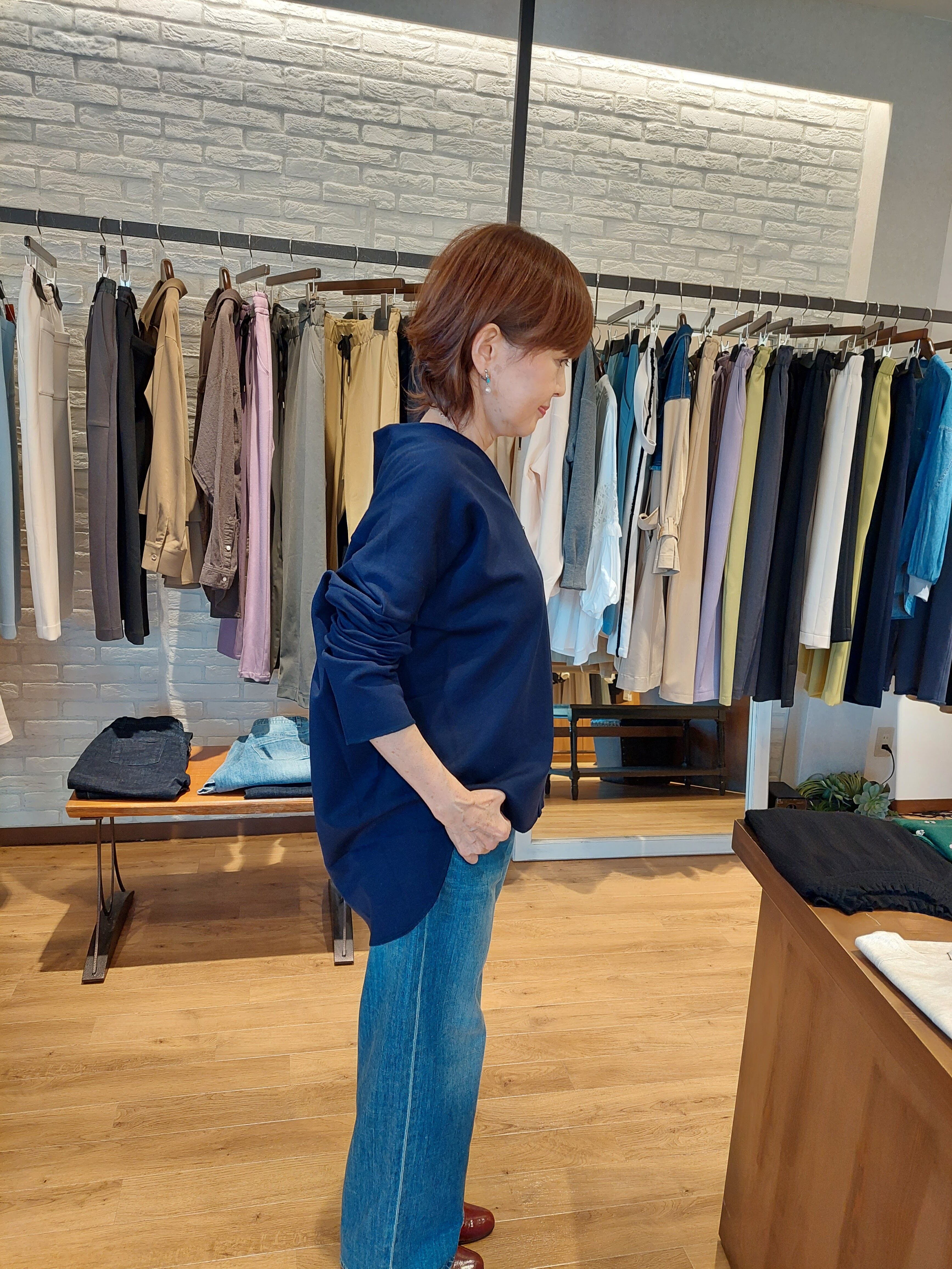 ストレッチ糸を編み込むことで立体感とストレスフリーな着心地を実現。?前後差のある裾丈と深めのVネックが女性らしい抜け感とリラクシーな印象を演出します。