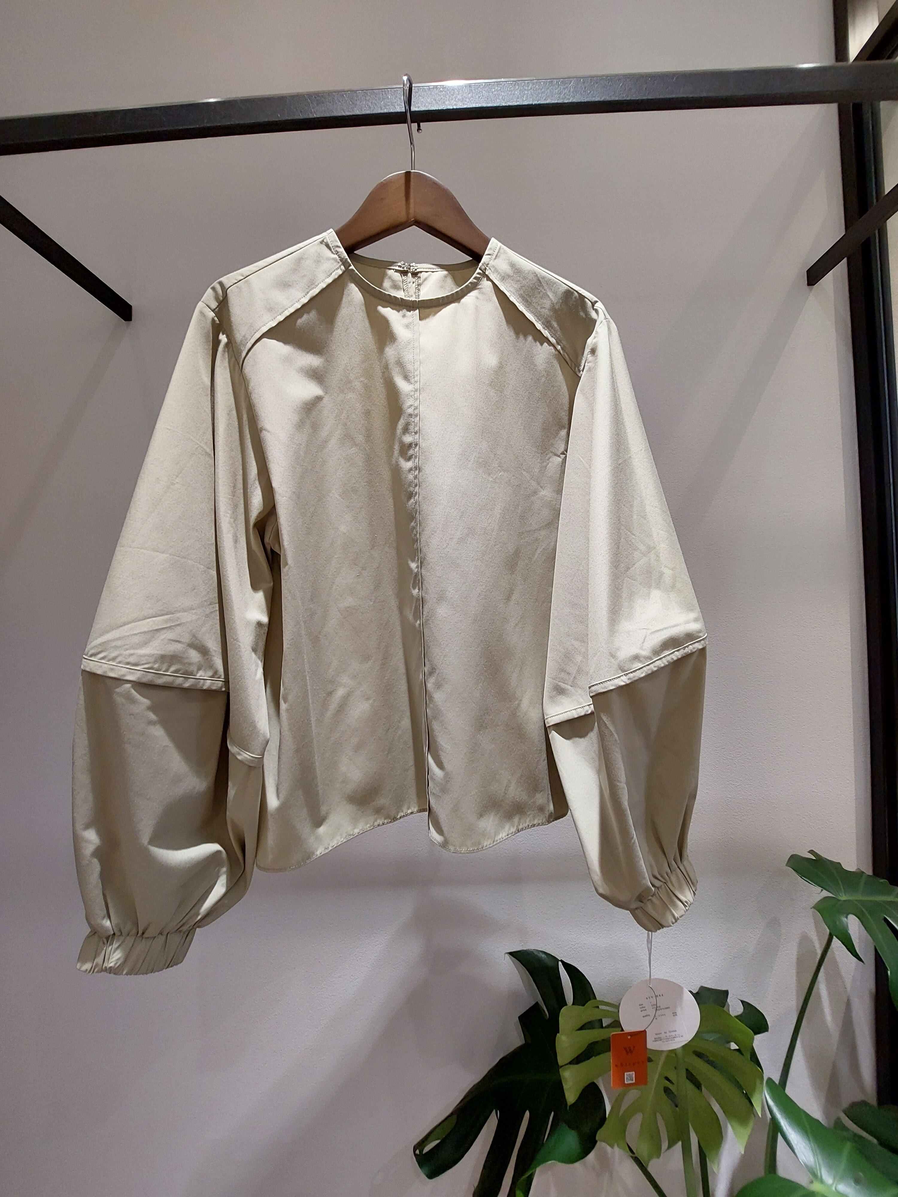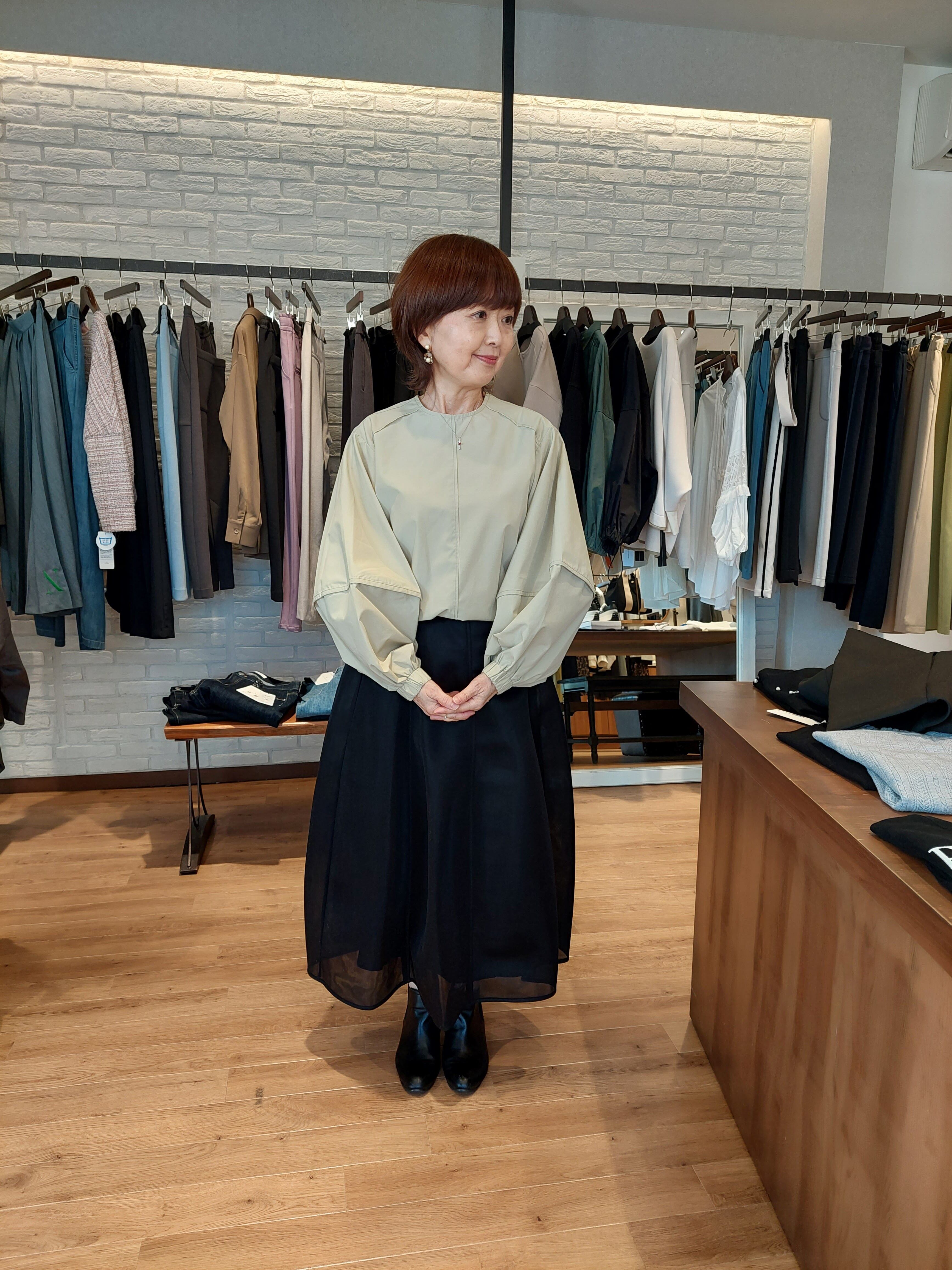 ふんわりとしたランタンスリーブが印象的なブラウス。袖口をすっきりと仕上げることでボリューム感がありながらも洗練されたシルエットに。