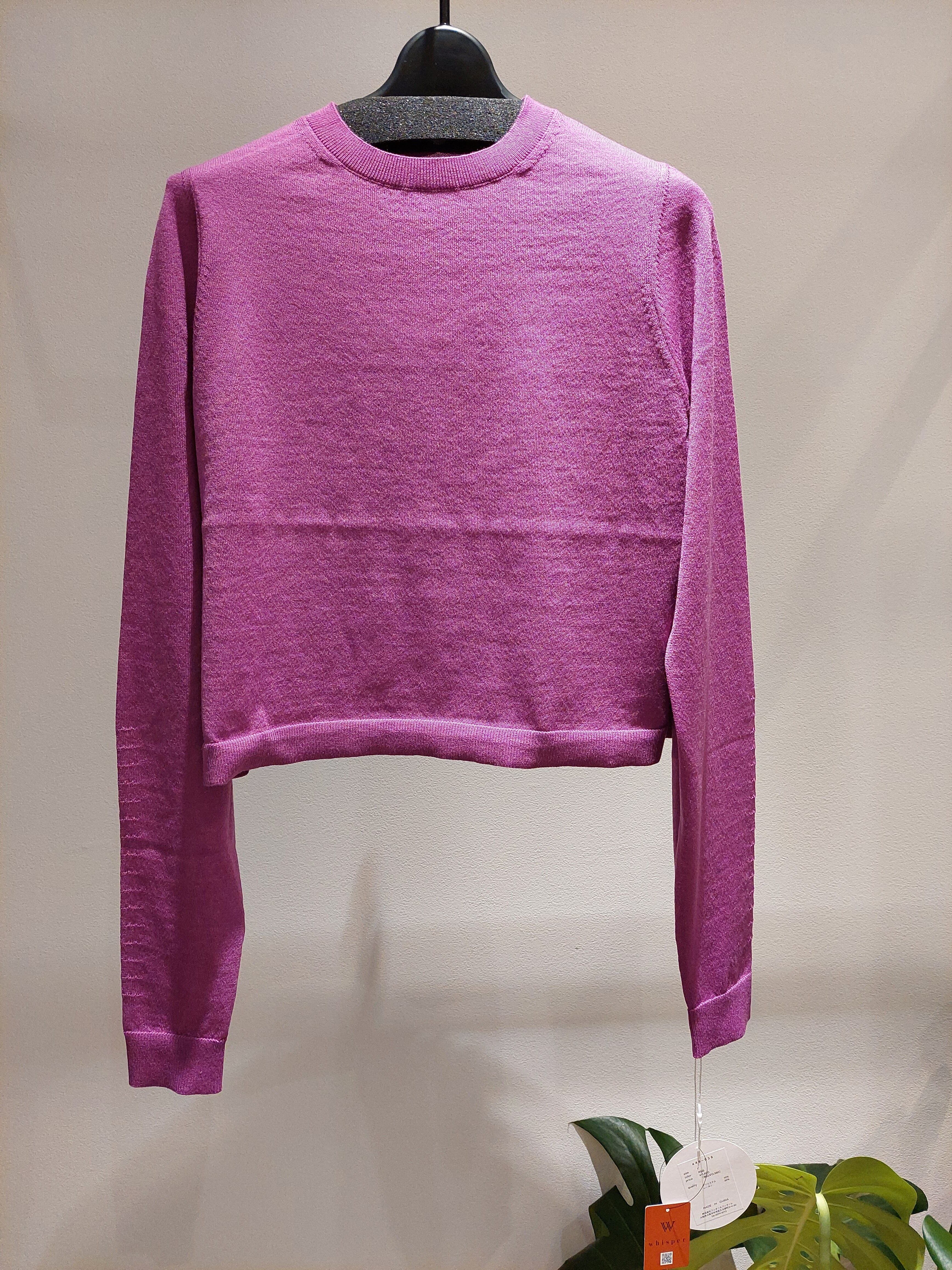 軽やかな透け感が魅力のクルーネックシアーニット。