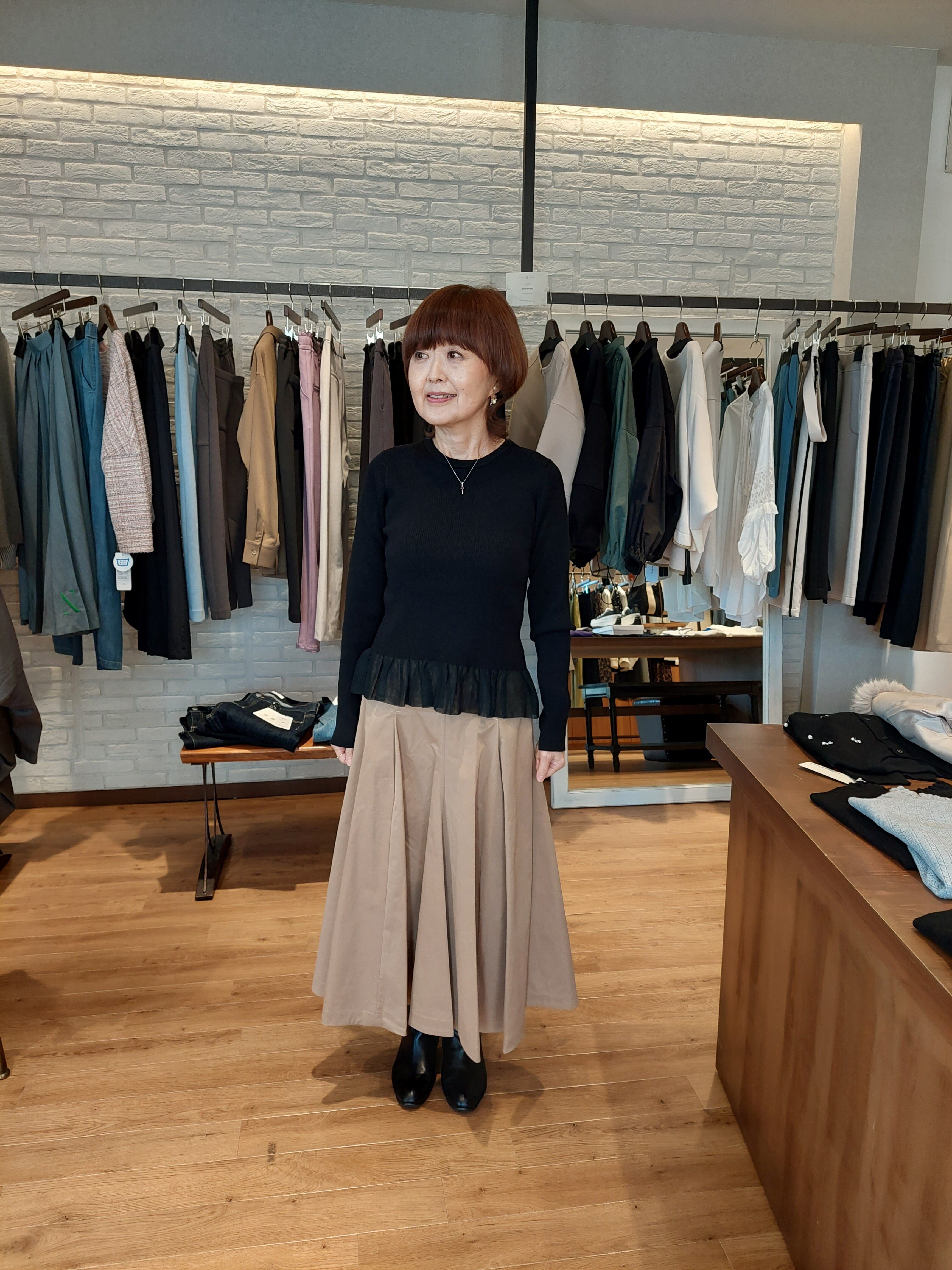 スニーカーやブーツとの相性も抜群で、デイリーにもお出かけにも活躍する頼れる万能スカートです。