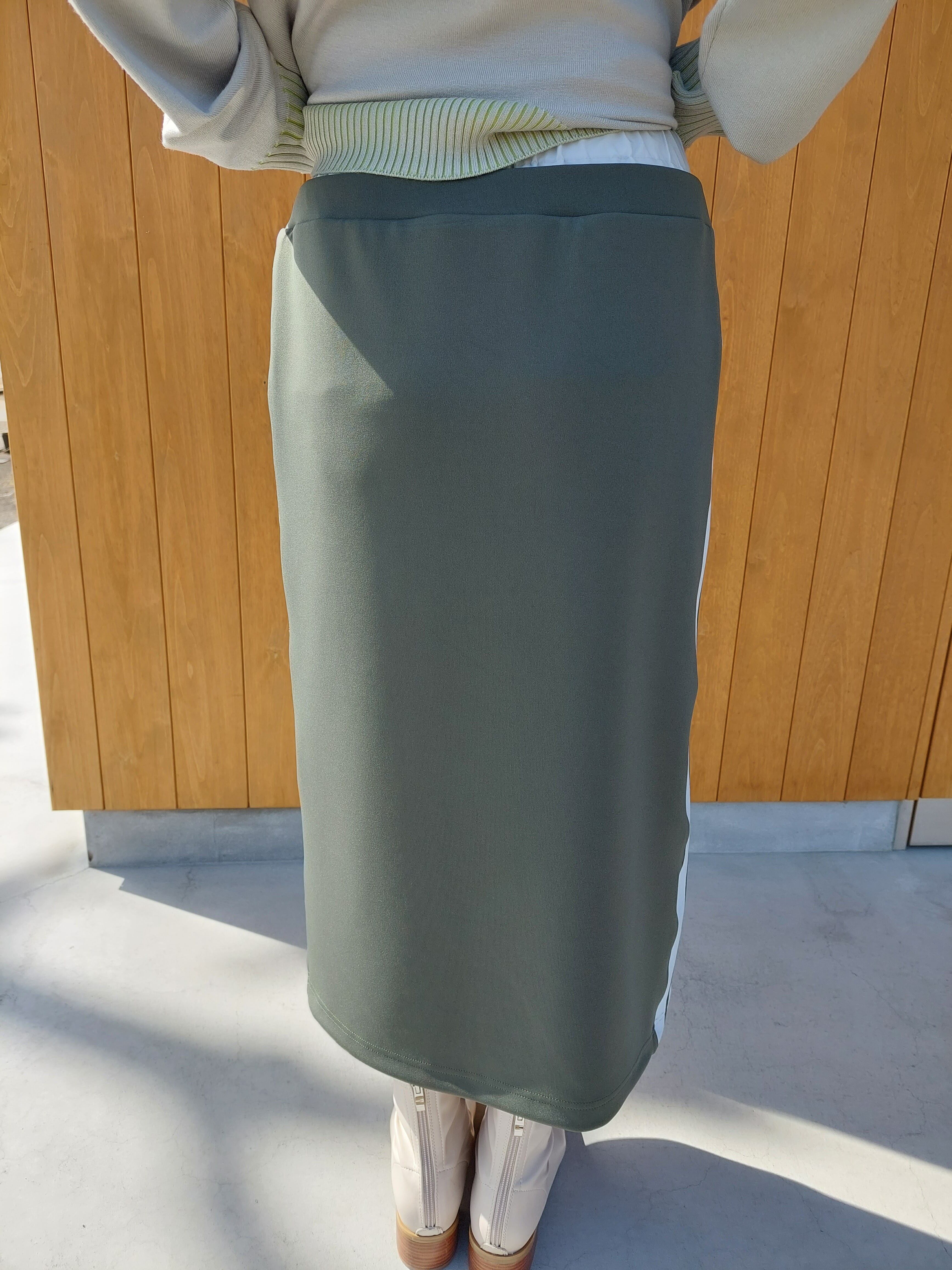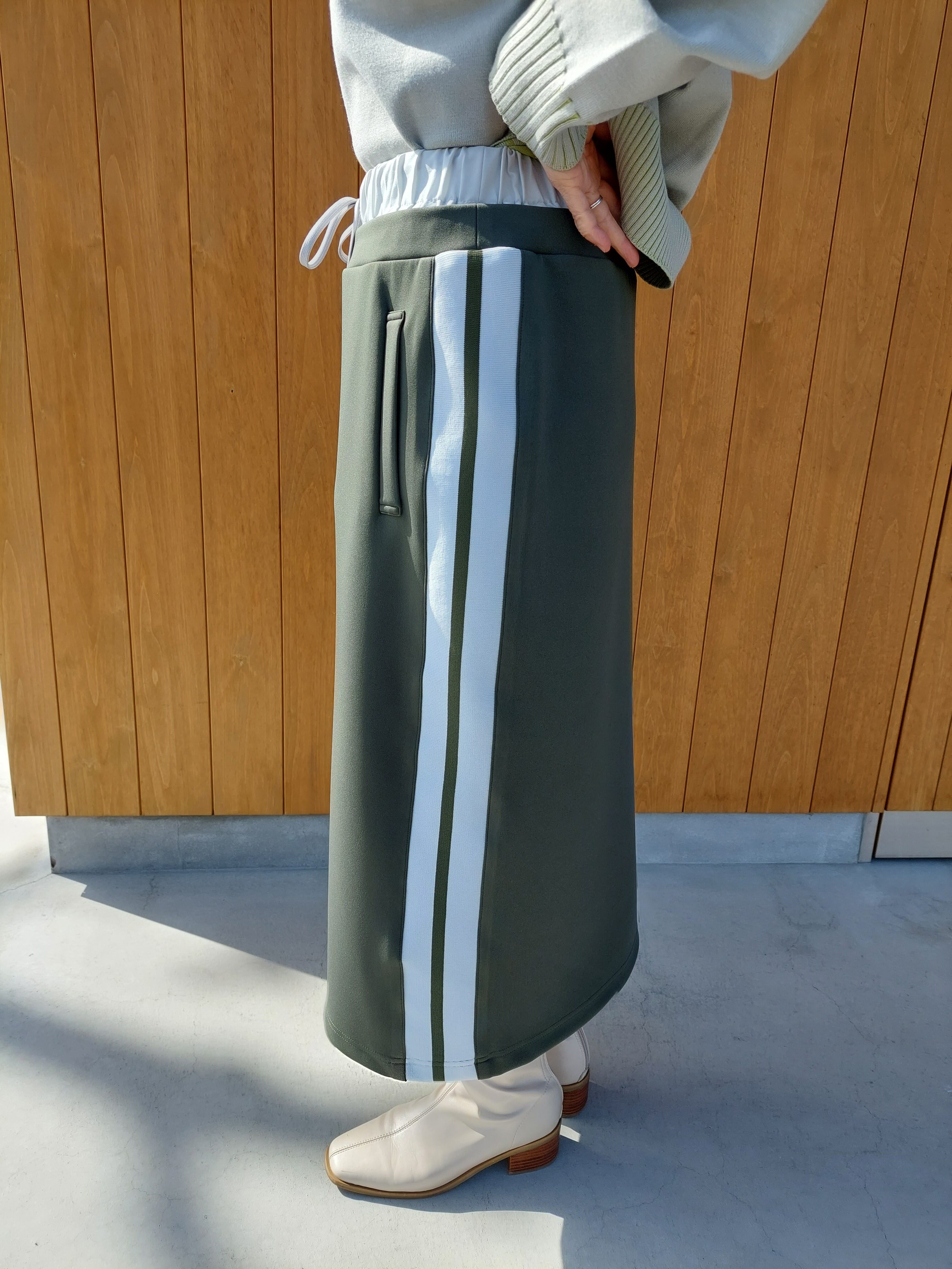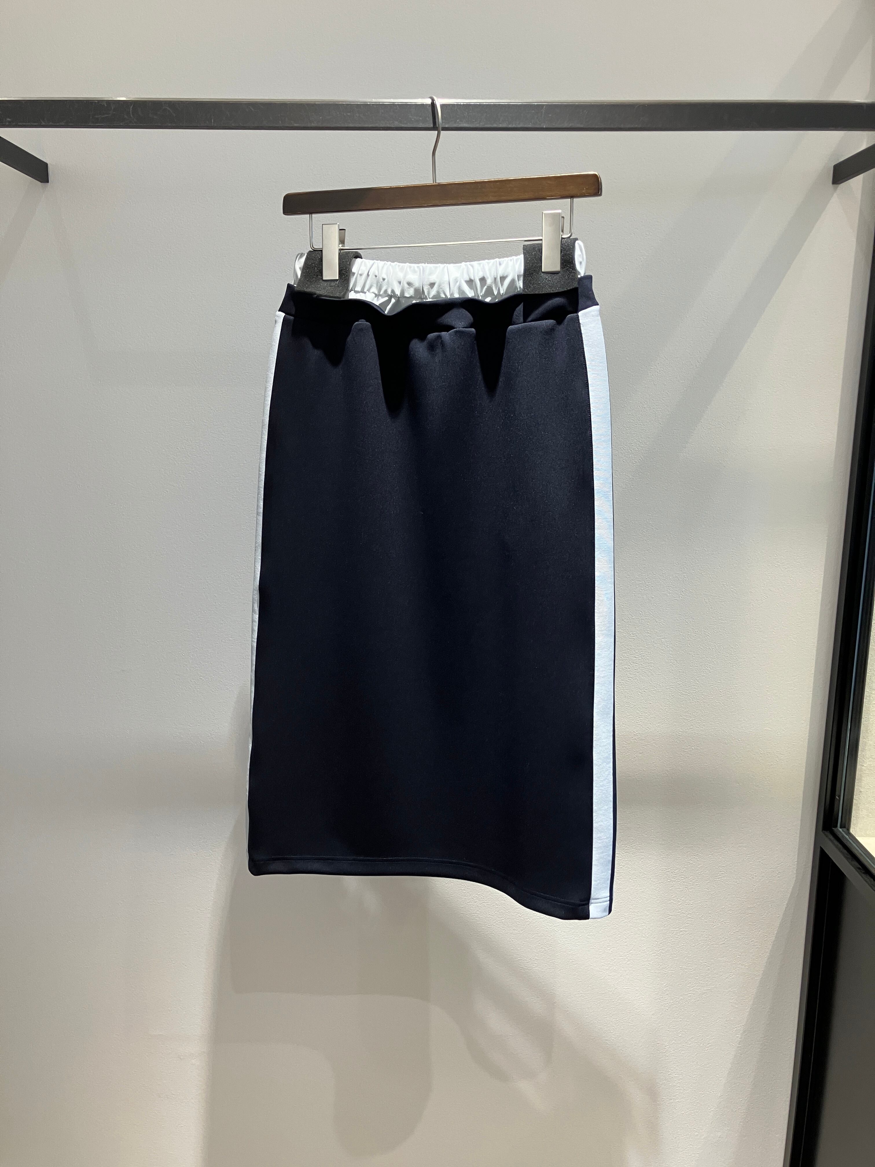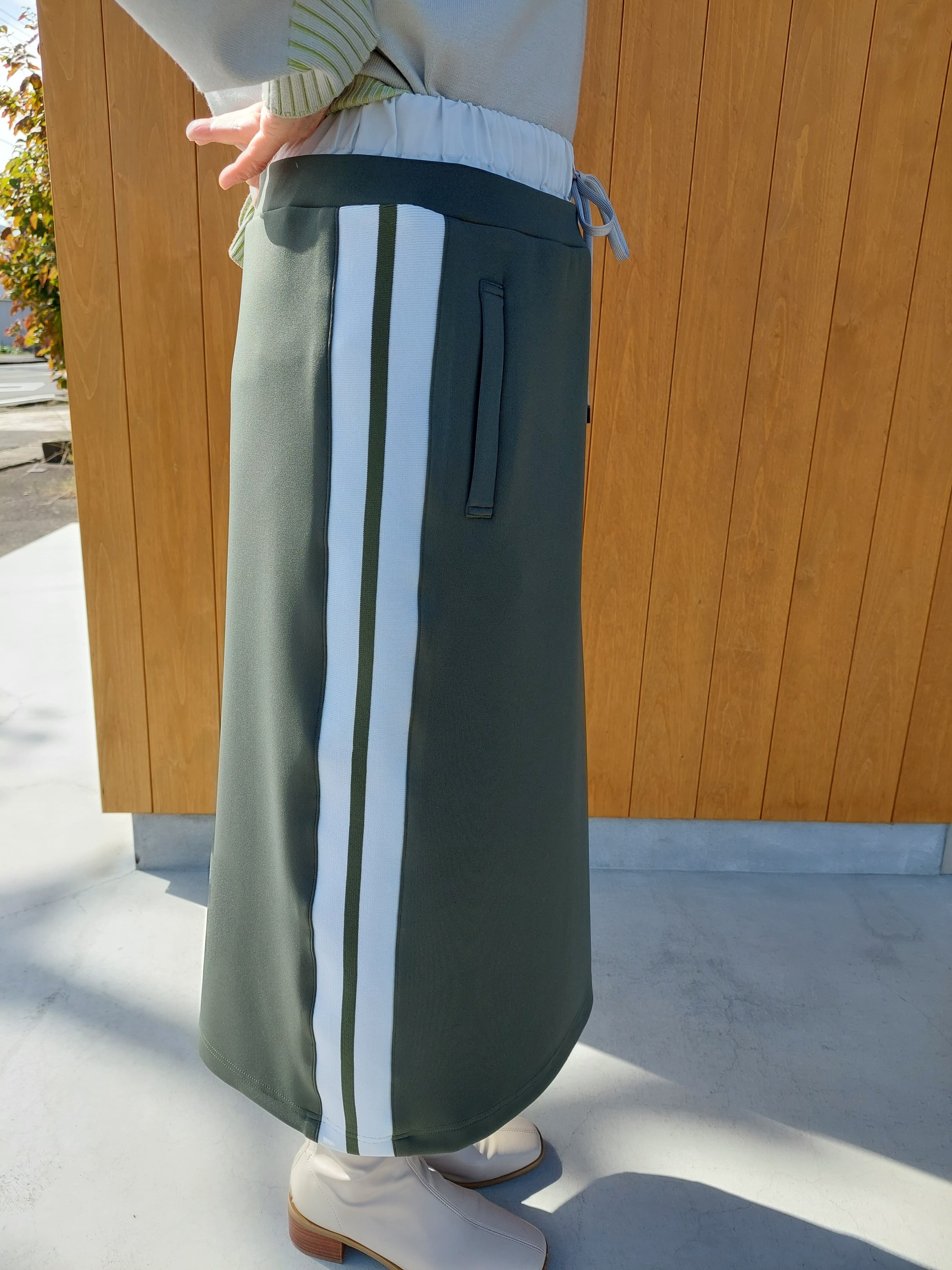 伸縮性抜群のダンボールジャージ素材を使用した、サイドラインが特徴的なスカート。