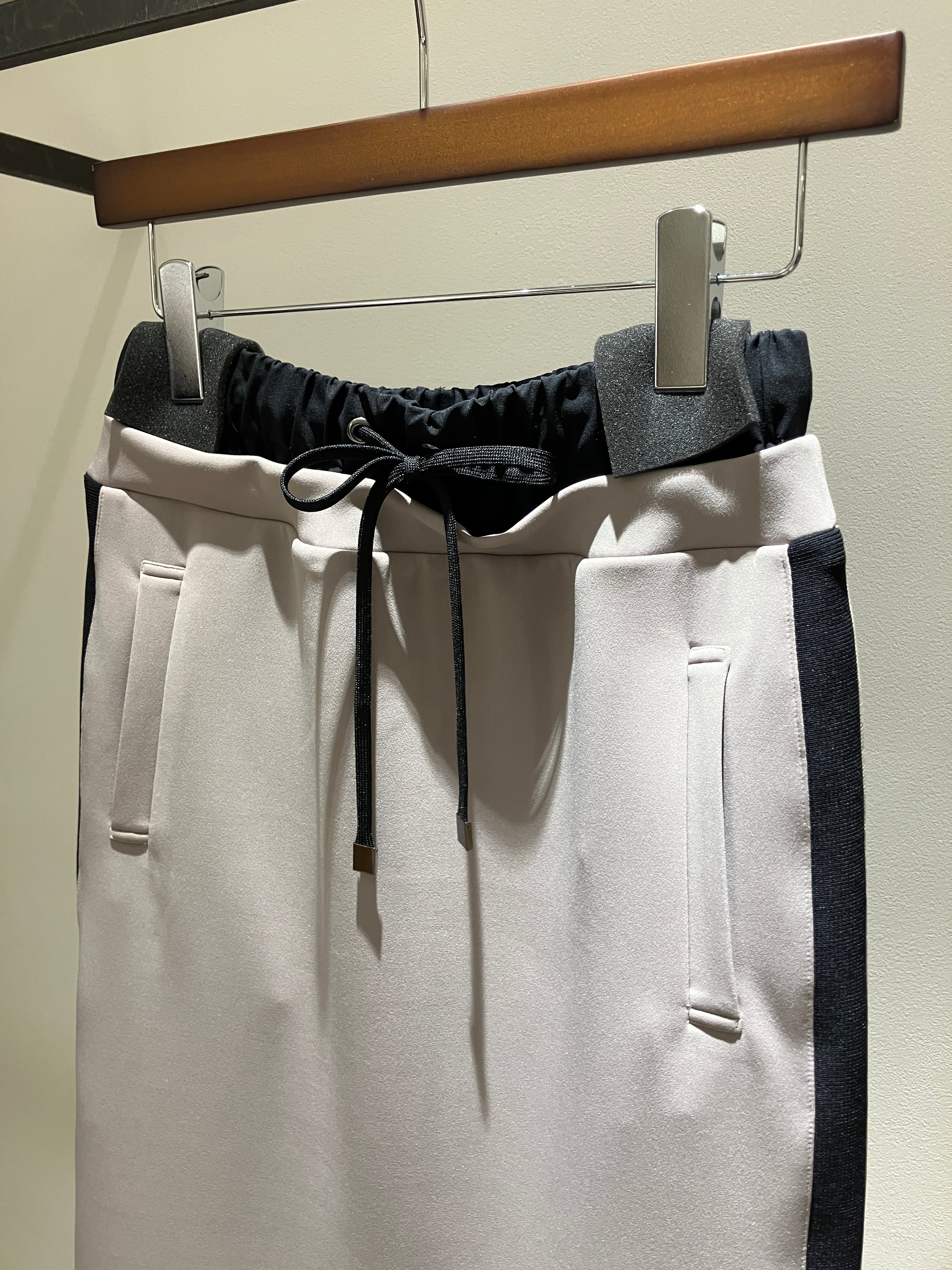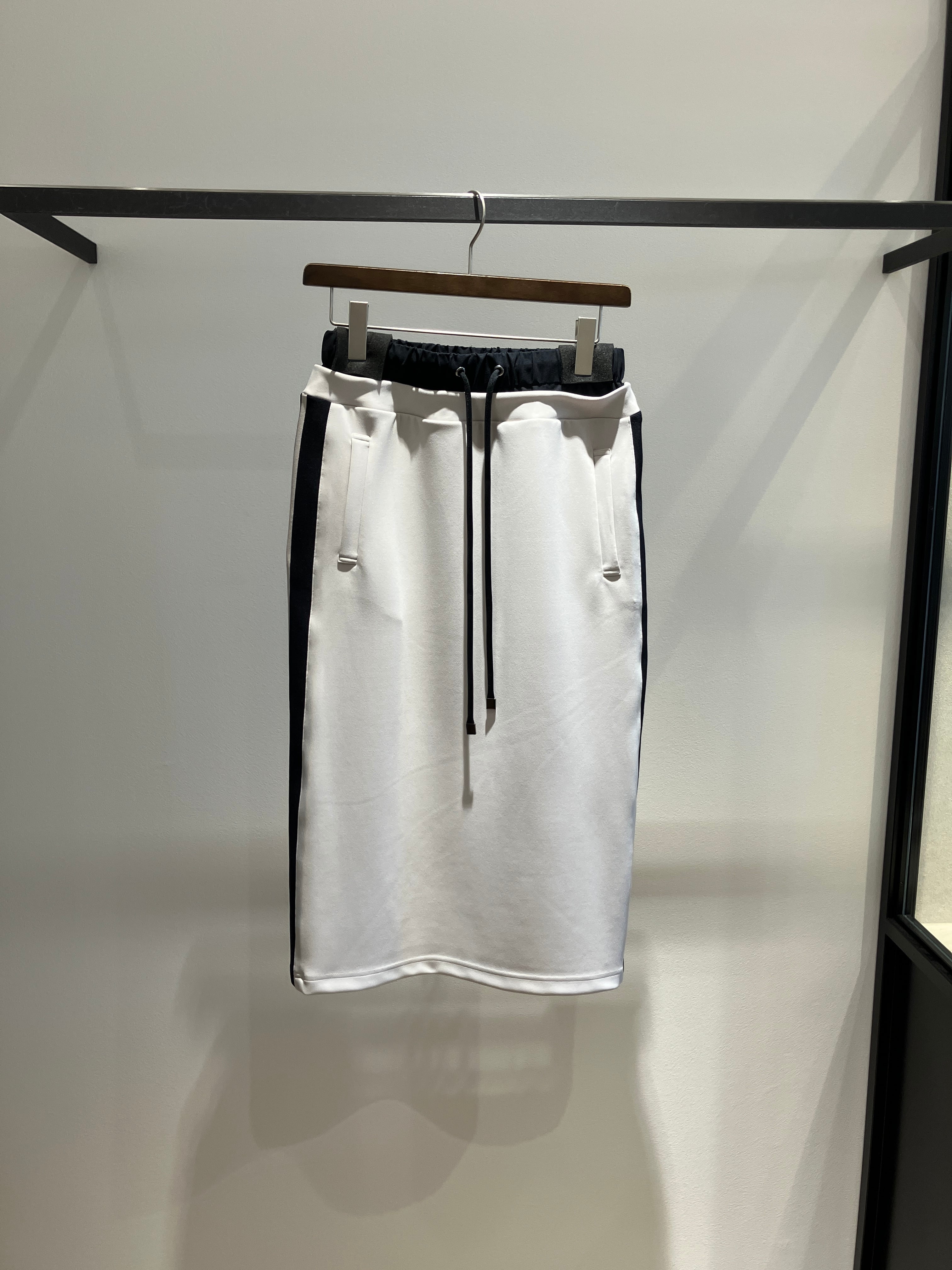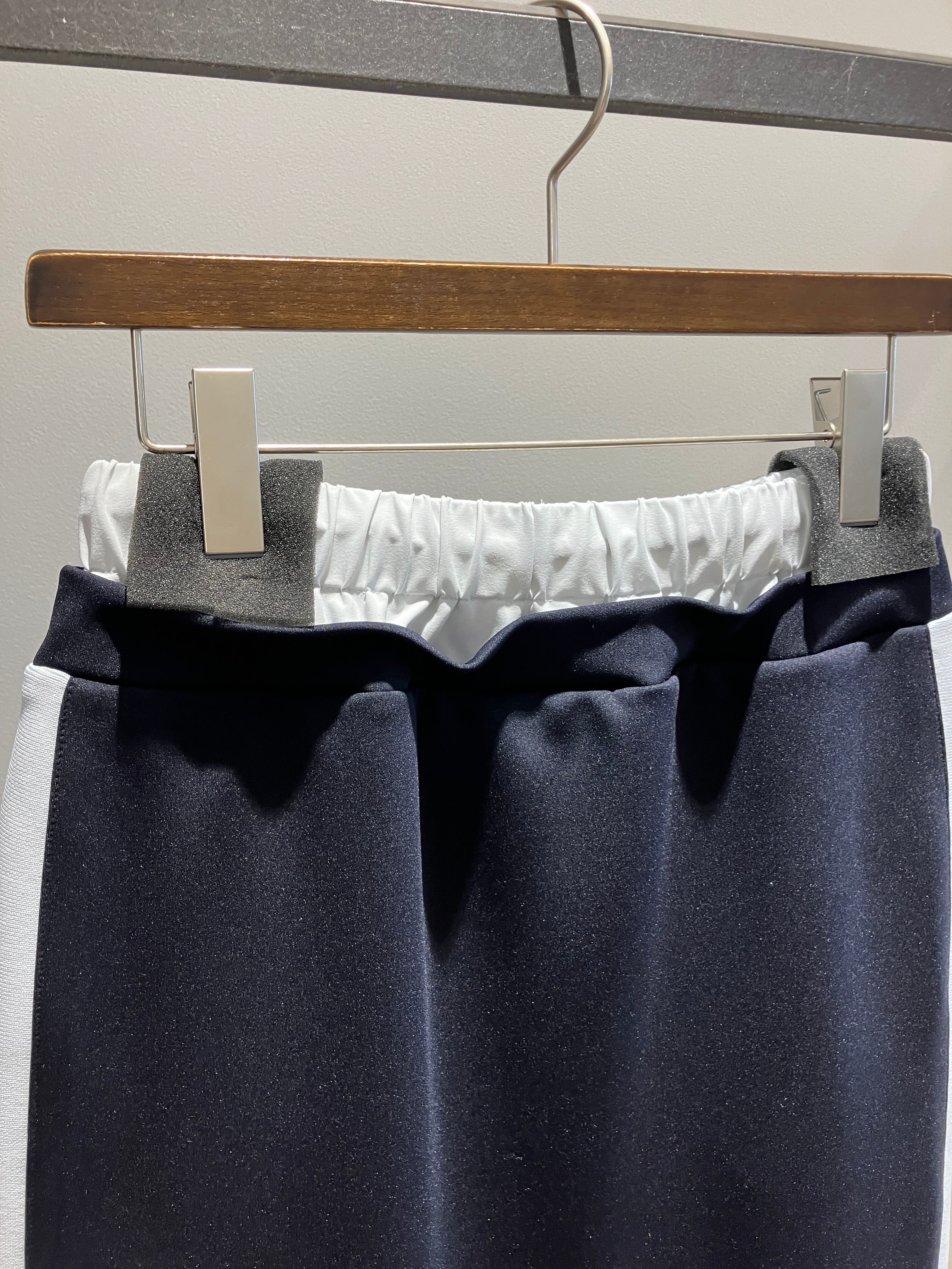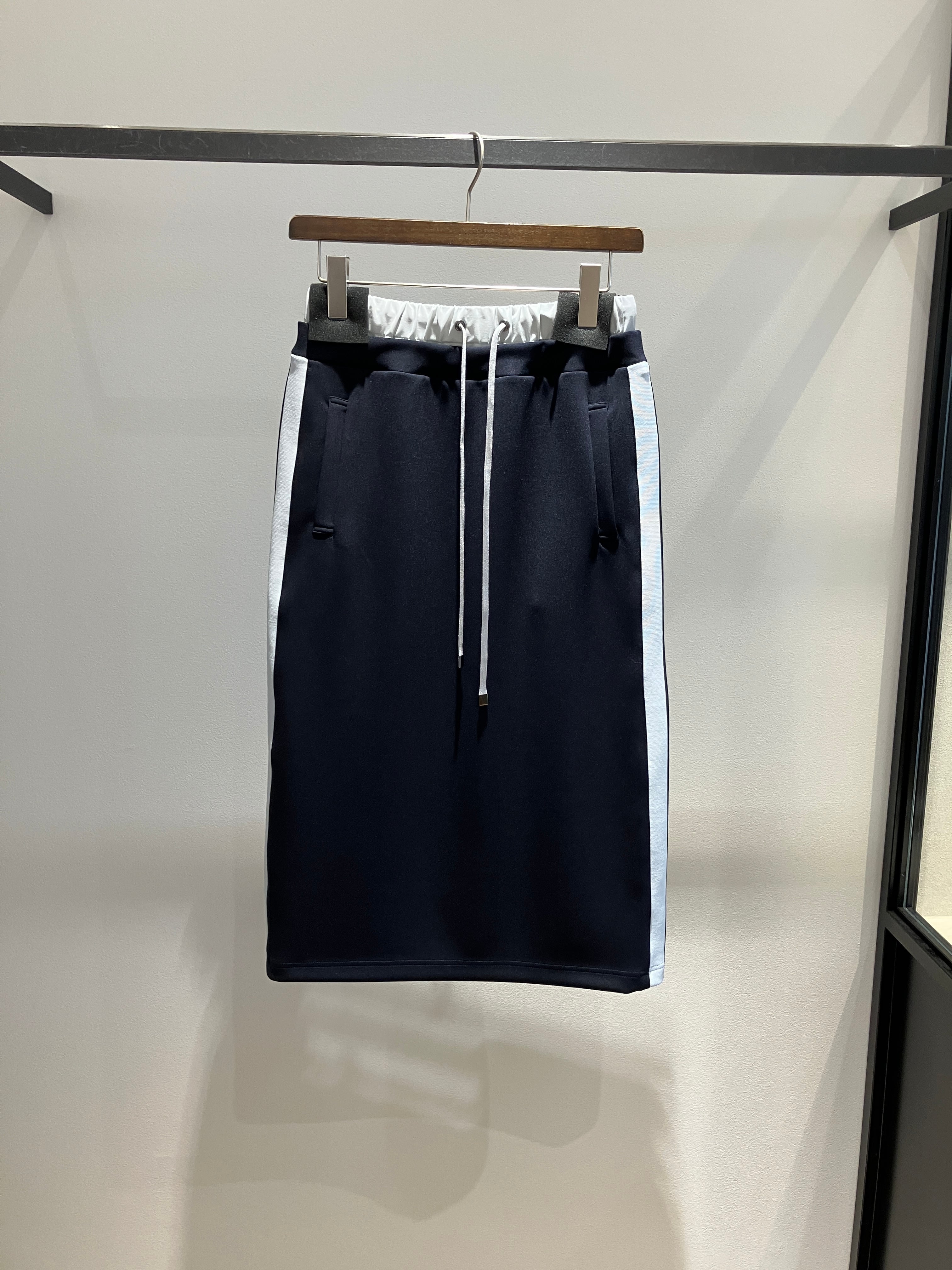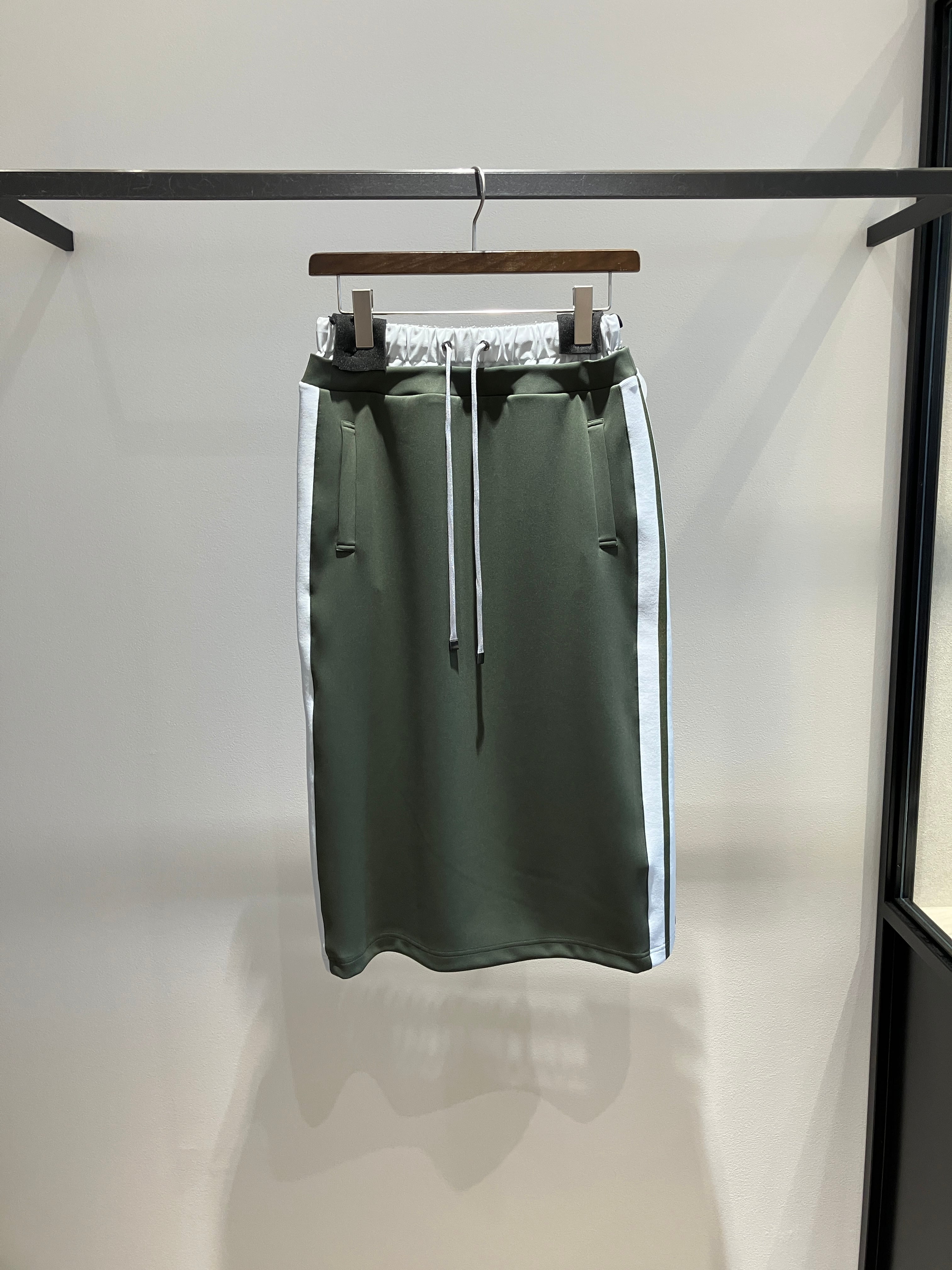 伸縮性抜群のダンボールジャージ素材を使用した、サイドラインが特徴的なスカート。