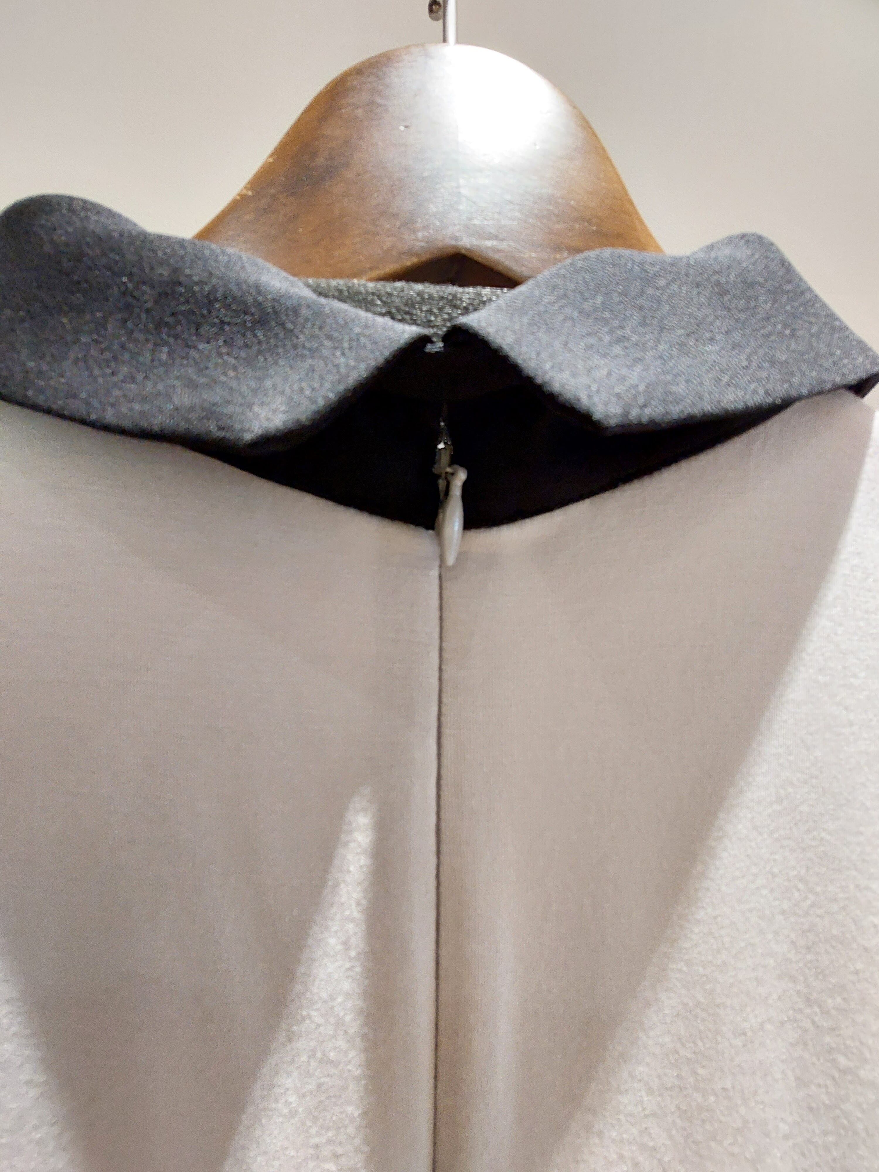 丸衿とリボンが上品なアクセントを添えるジョーゼット生地のジャケットインナー。