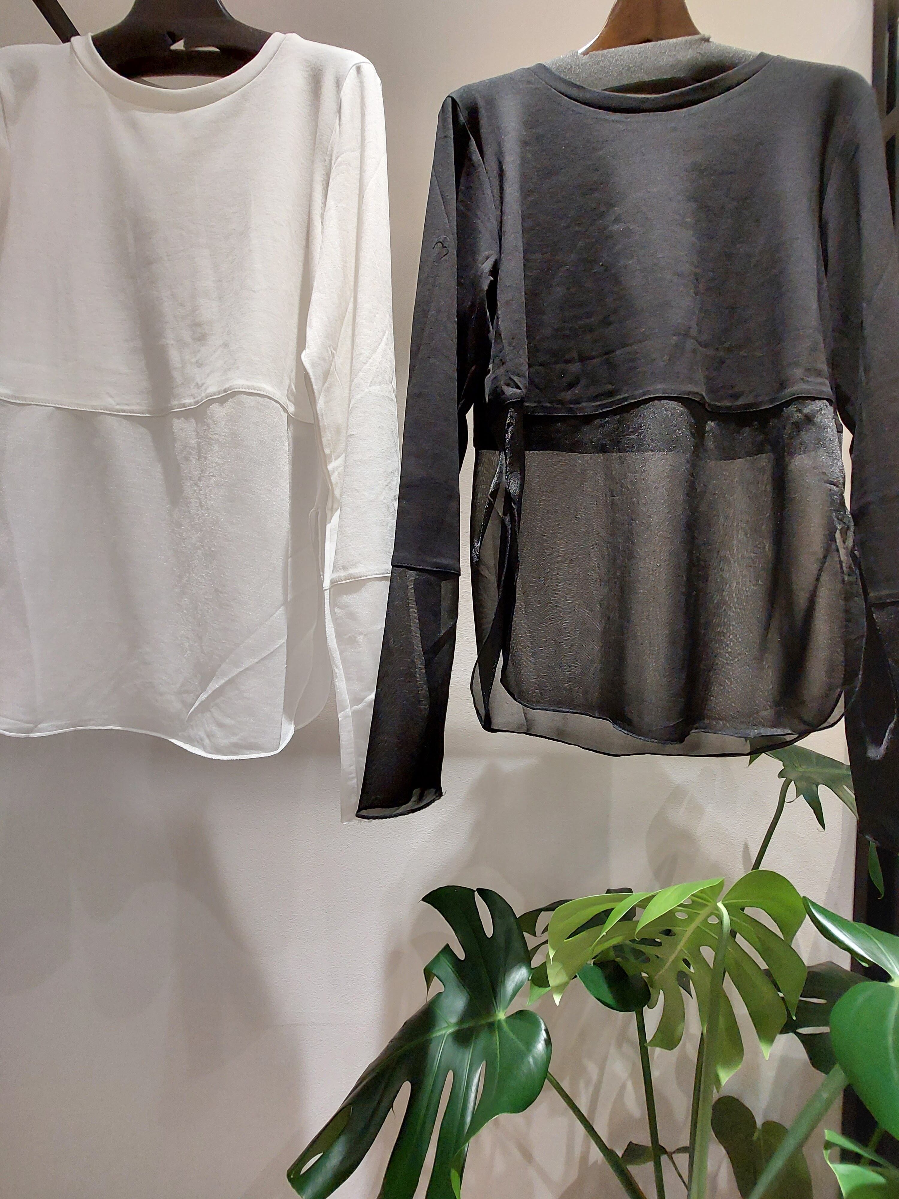 袖口と裾がシアー素材に切り替わっている抜け感のあるカットソー。