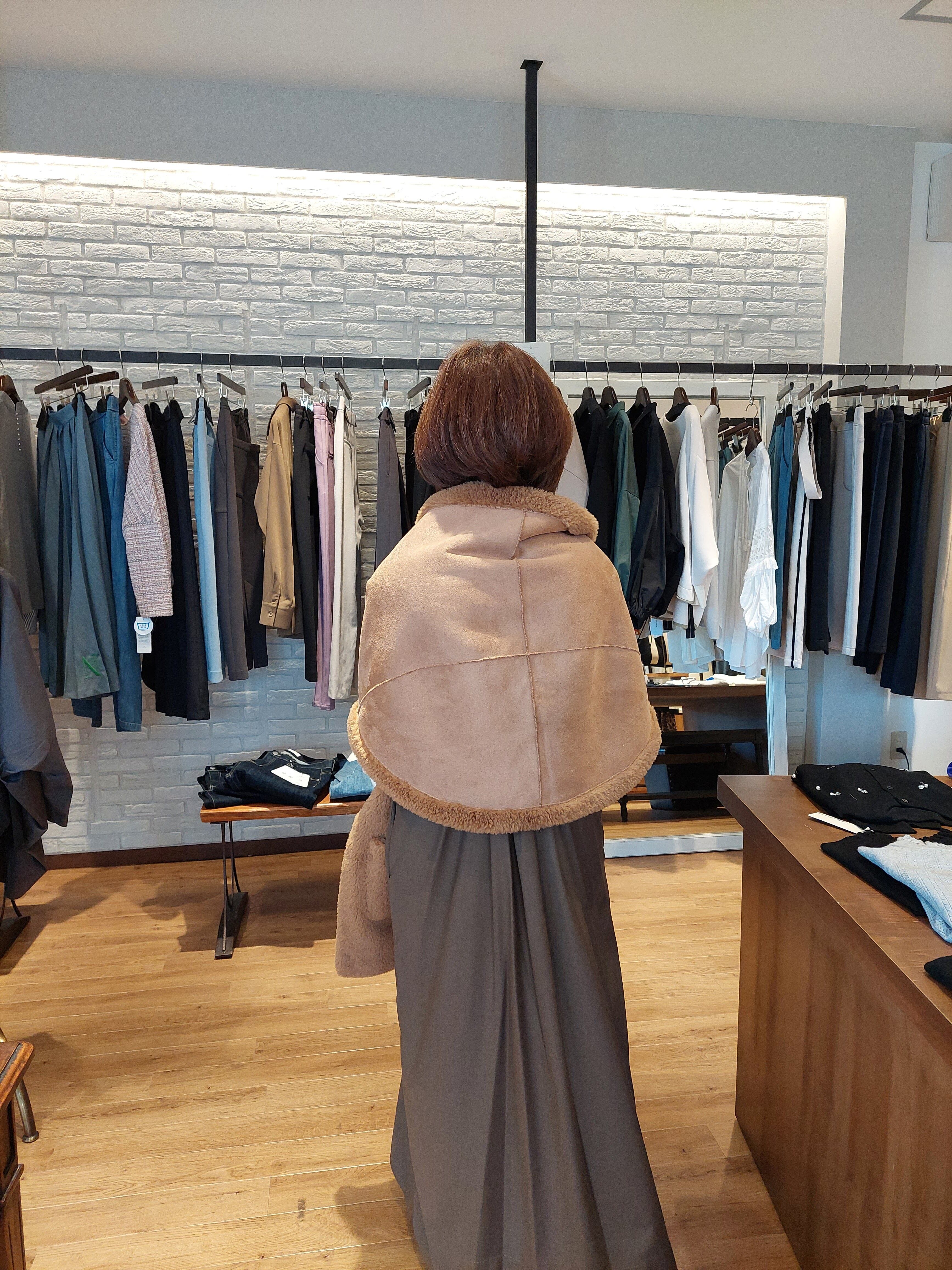 カーブが緩やかな方を上にしていただくとケープ風で腰回りもあったか。