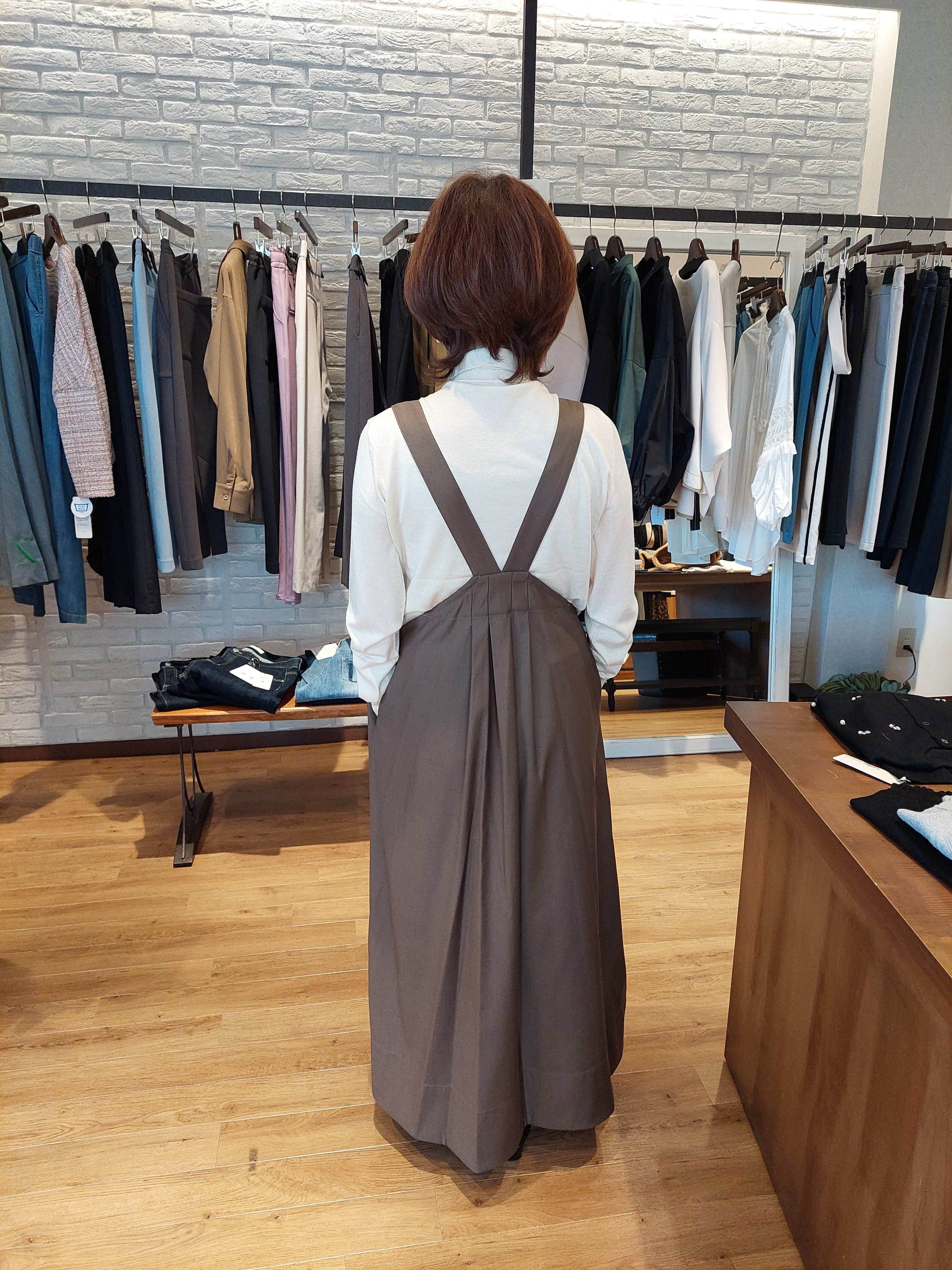 調節がきく肩のストラップで低身長さんから高身長さんまで幅広くお召しいただけ、季節を越えて長く着まわしていただけます。
