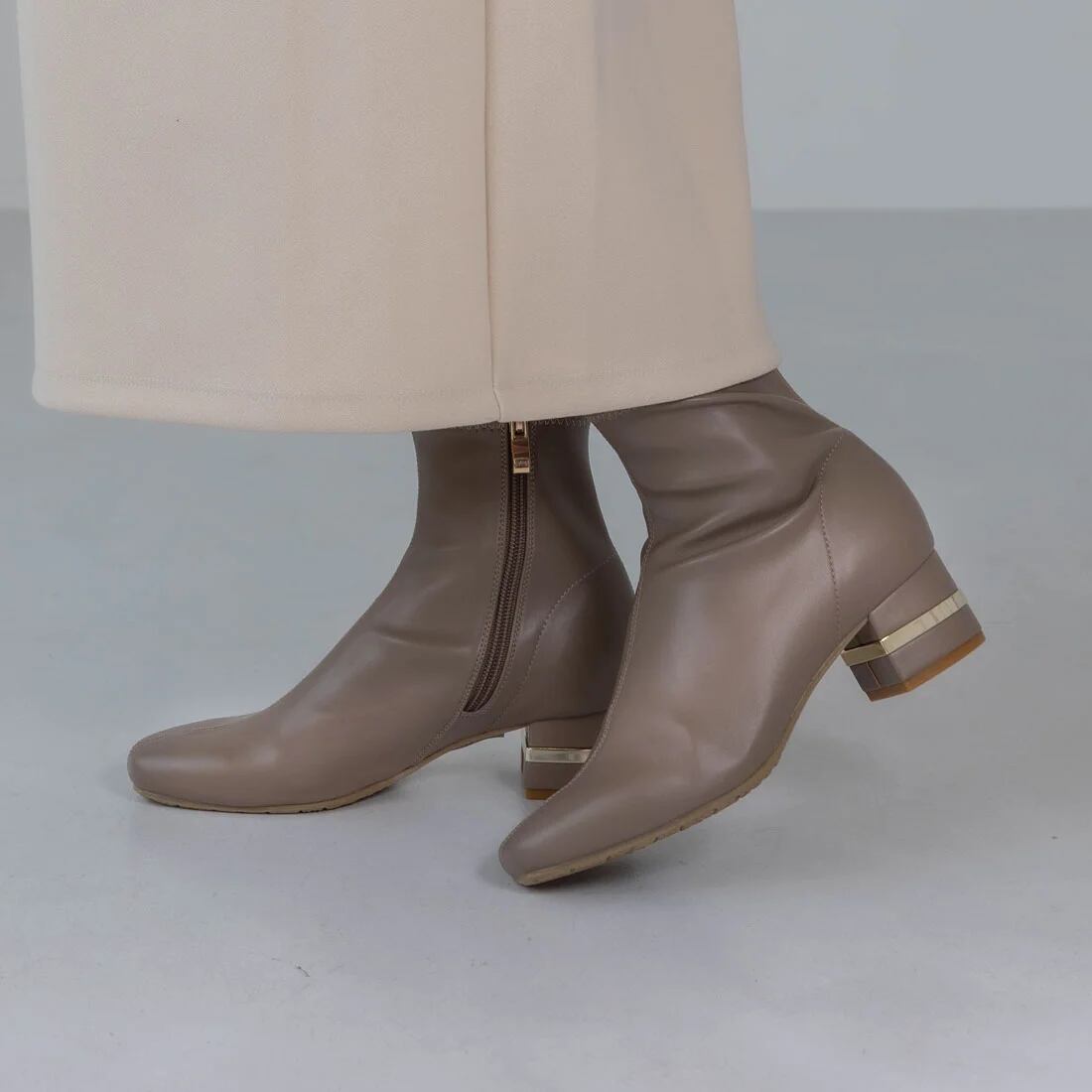 シンプルなストレッチブーツは秋冬のスタイリングの定番で、どんなコーディネートにもハマる万能アイテム。センターシームで足元をすっきり美脚に導いてくれます。ストレッチが効いているので余計な余りが出ずに程よいフィット感で足元をキュッと引き締めてくれるのも嬉しいポイント。スクエアトゥとメタルパーツがアクセントになって、普段のスタイルをお洒落な雰囲気にブラッシュアップしてくれるアイテム。
