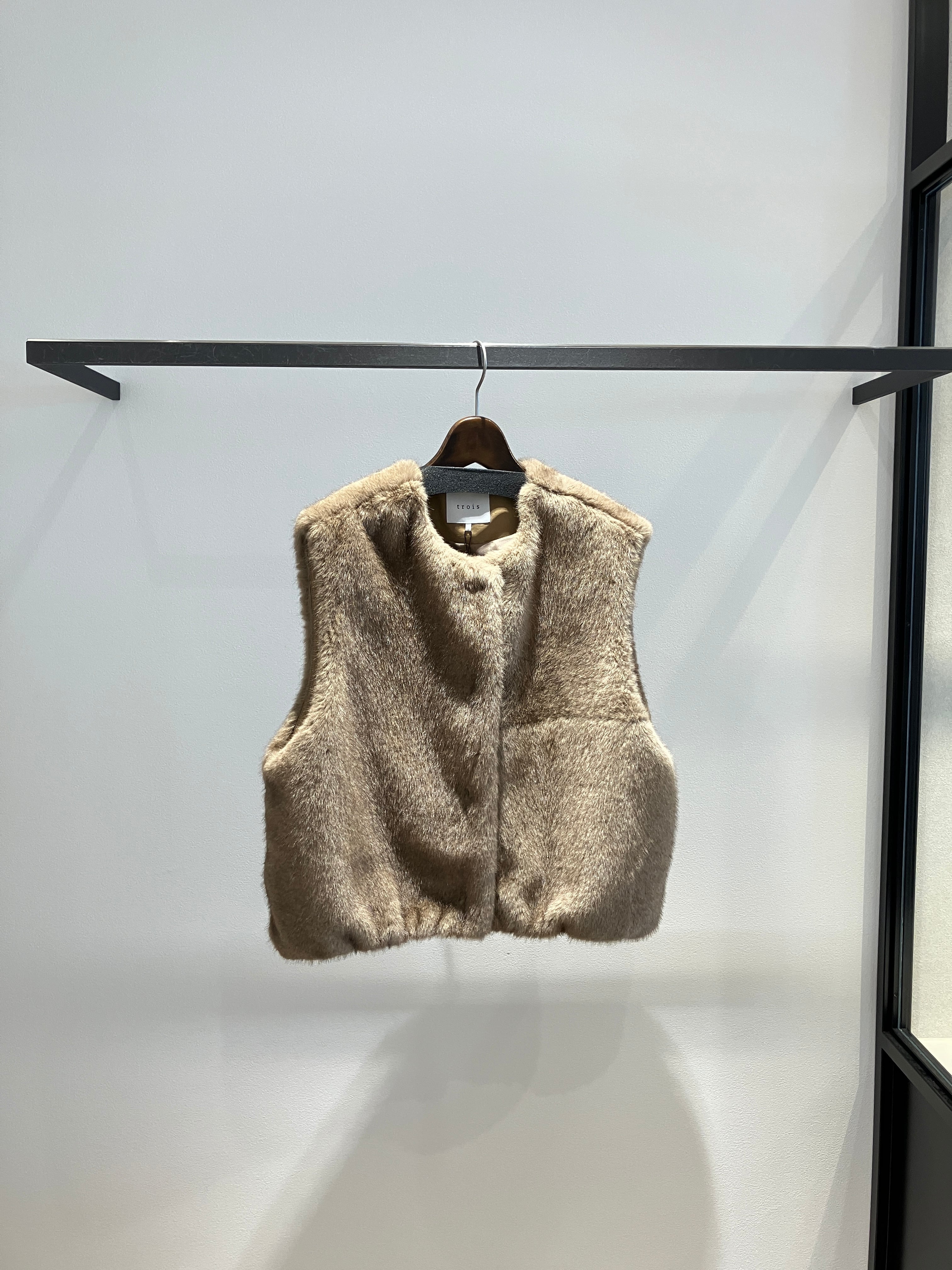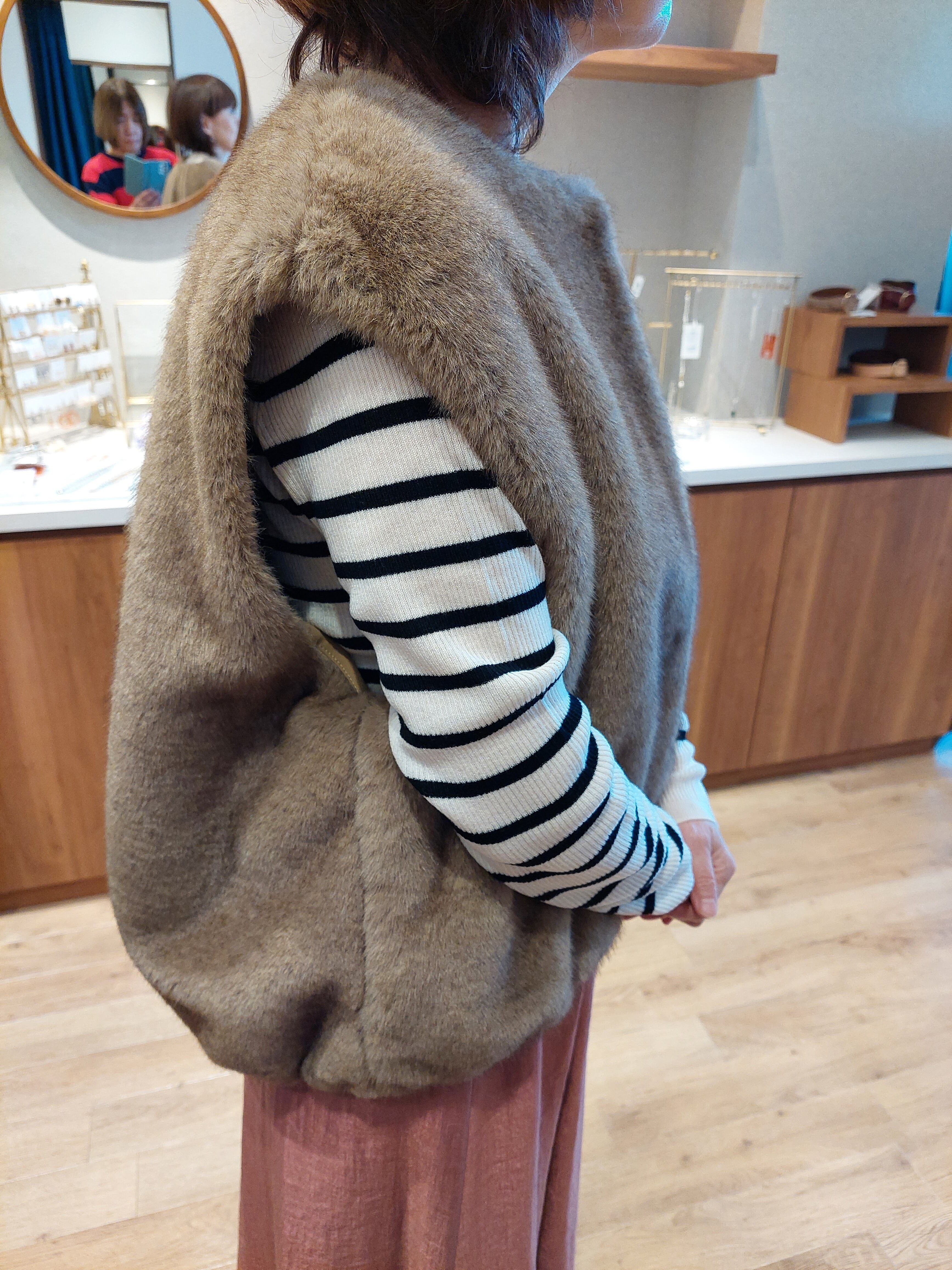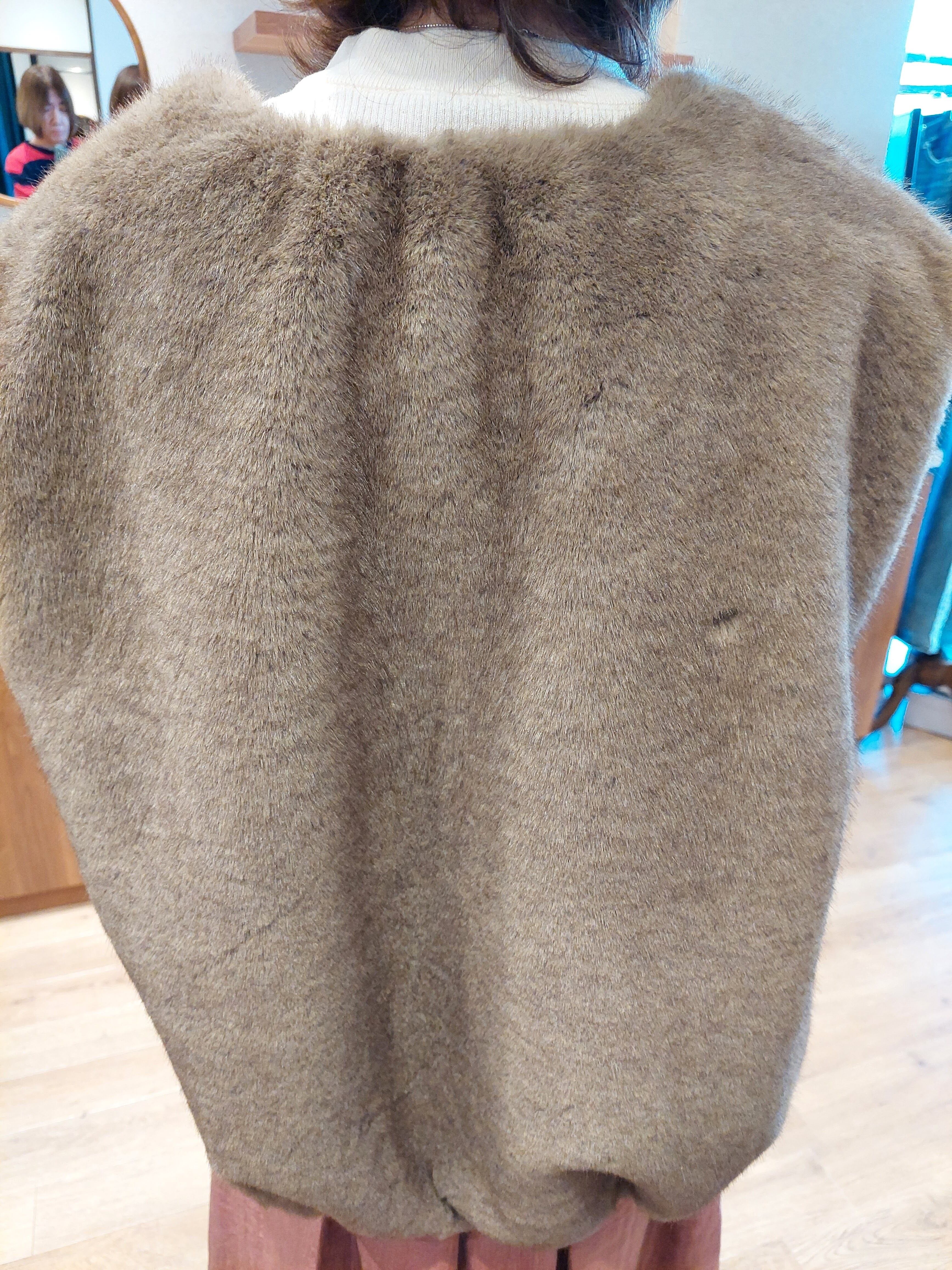 毛足の長い、肌触りの優しいファーを使用したショートジレ。