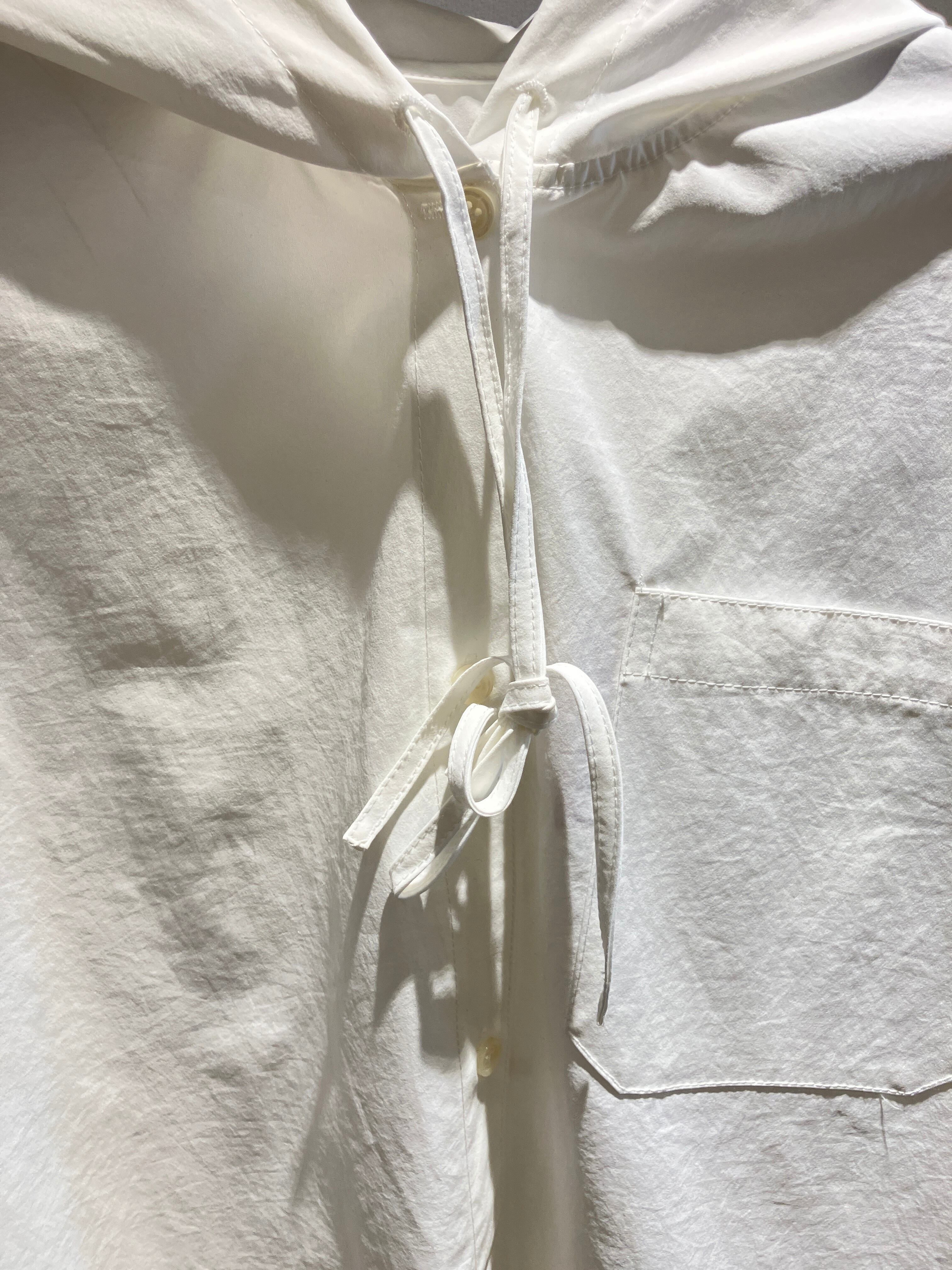 布帛生地の様なシャカシャカの生地感で、さらっとした肌触りのフードブルゾン。