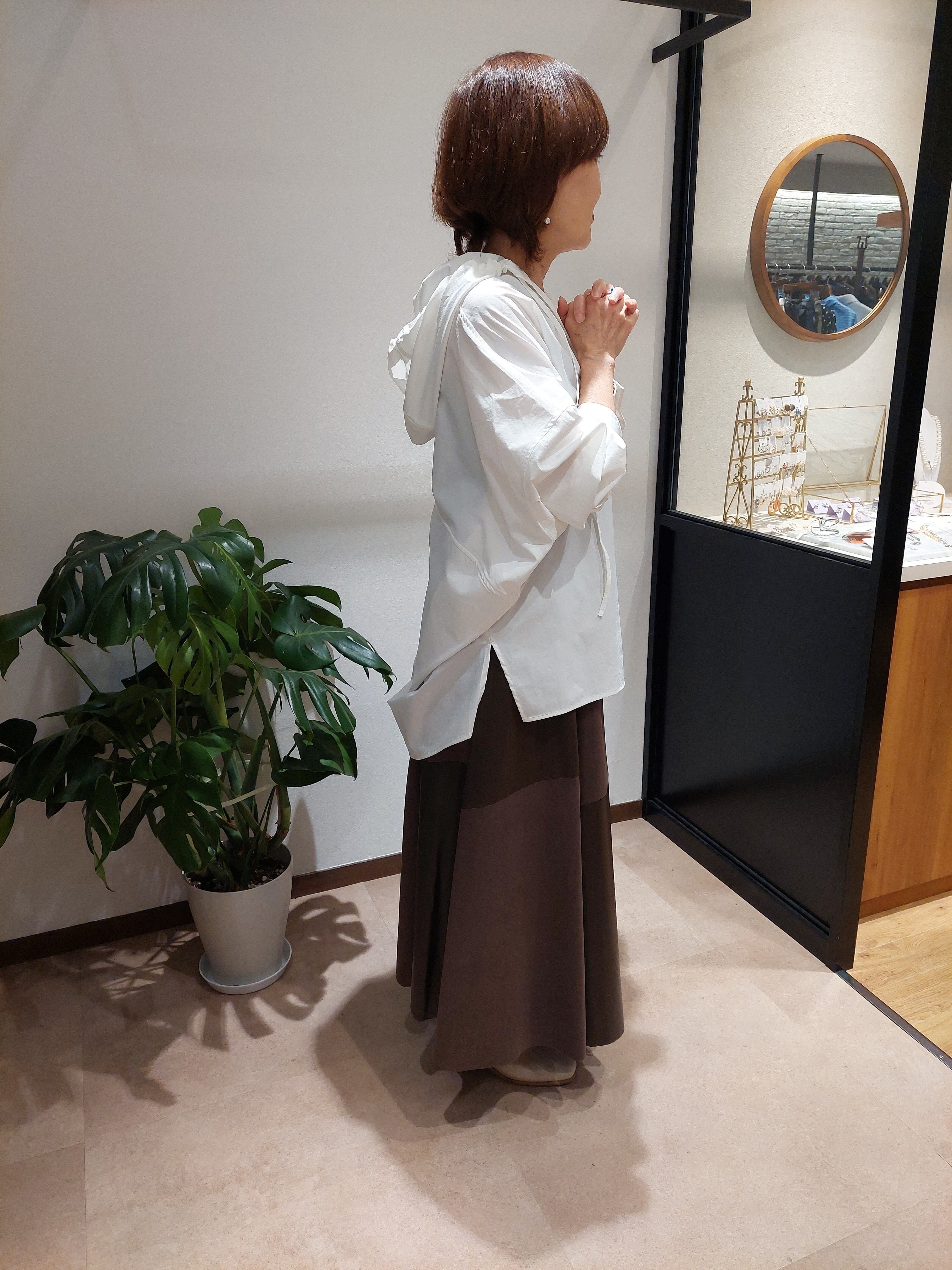 フード付きのブルゾンですが、生地感が良いためキレイ目な印象。