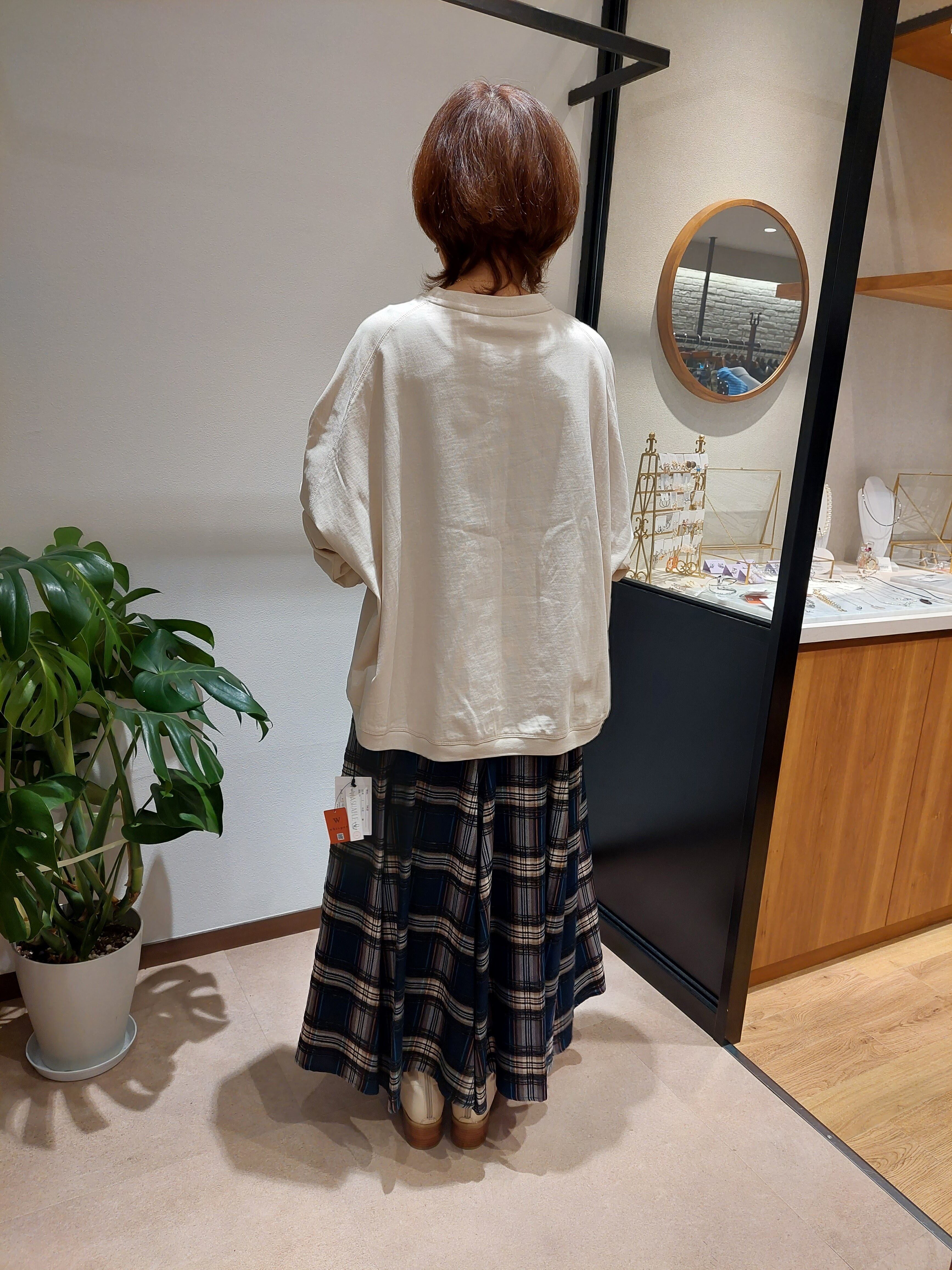 ゆったりとしたシルエットでボトムスを選ばないアイテム。