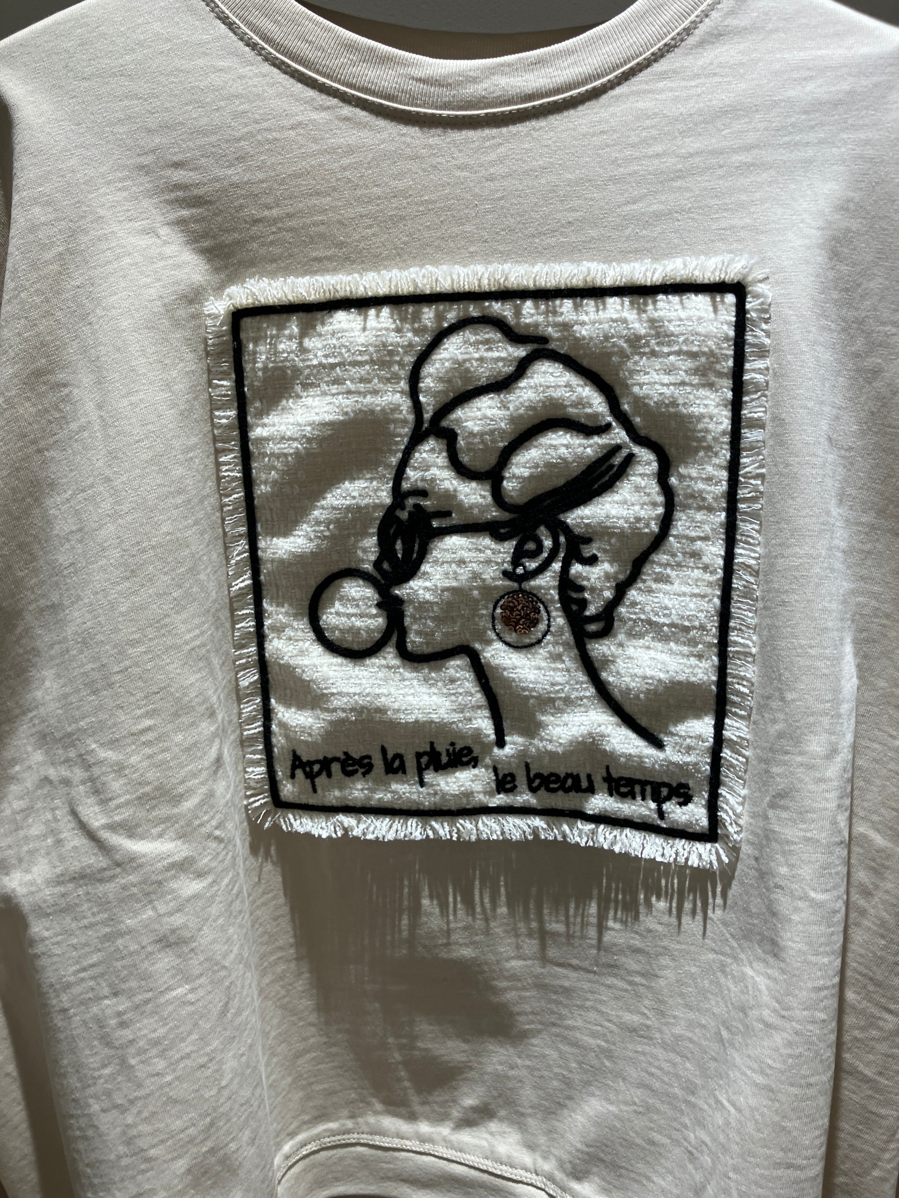 マリードール人気の刺繍トップスがスウェットトップスになって登場。