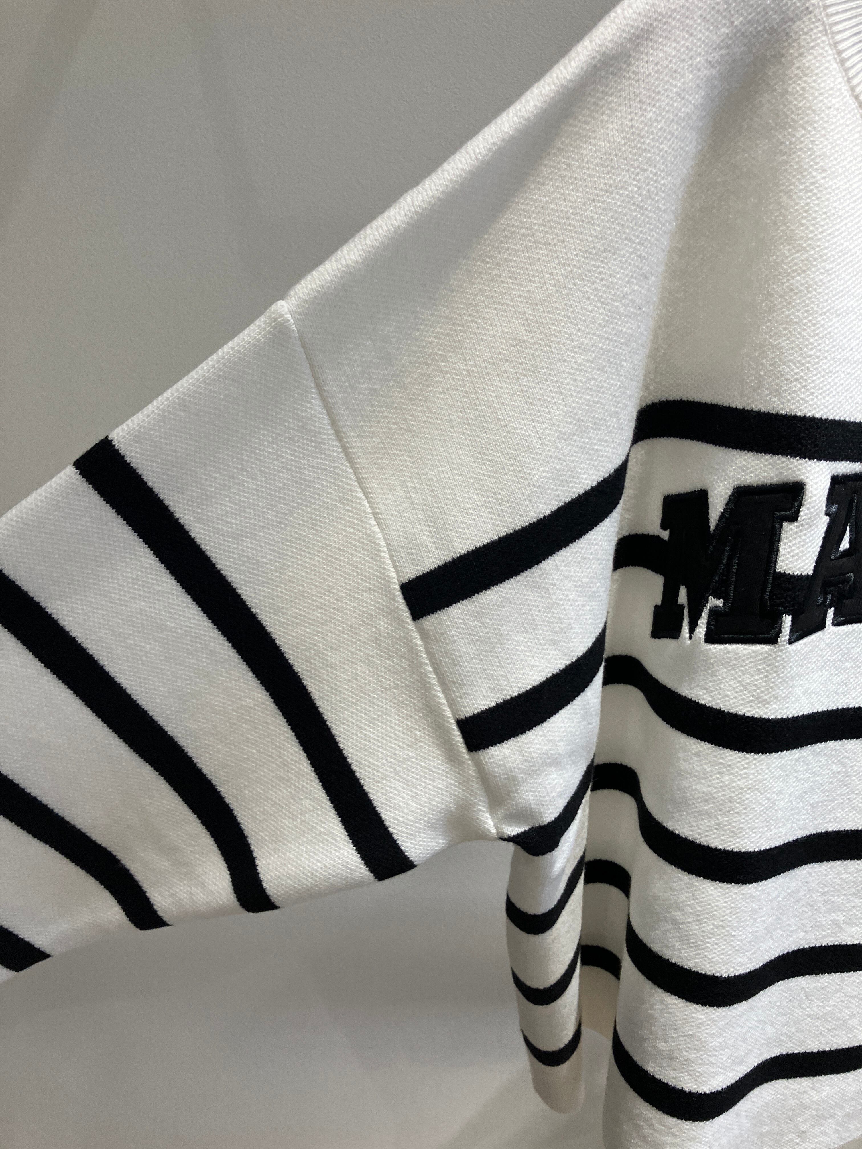 幅広のボーダーで、身頃にはロゴが施されているのでアクセントに◎。