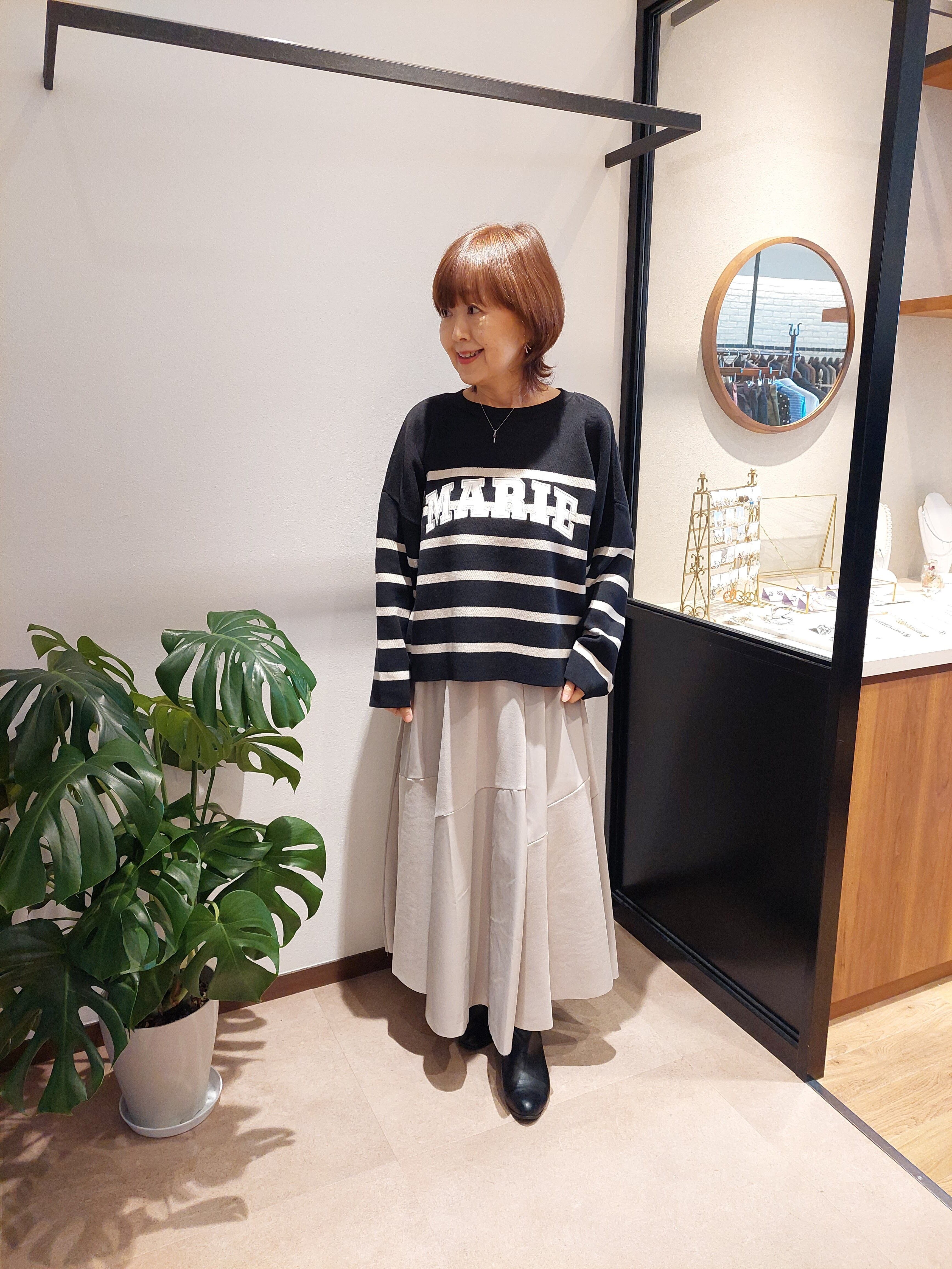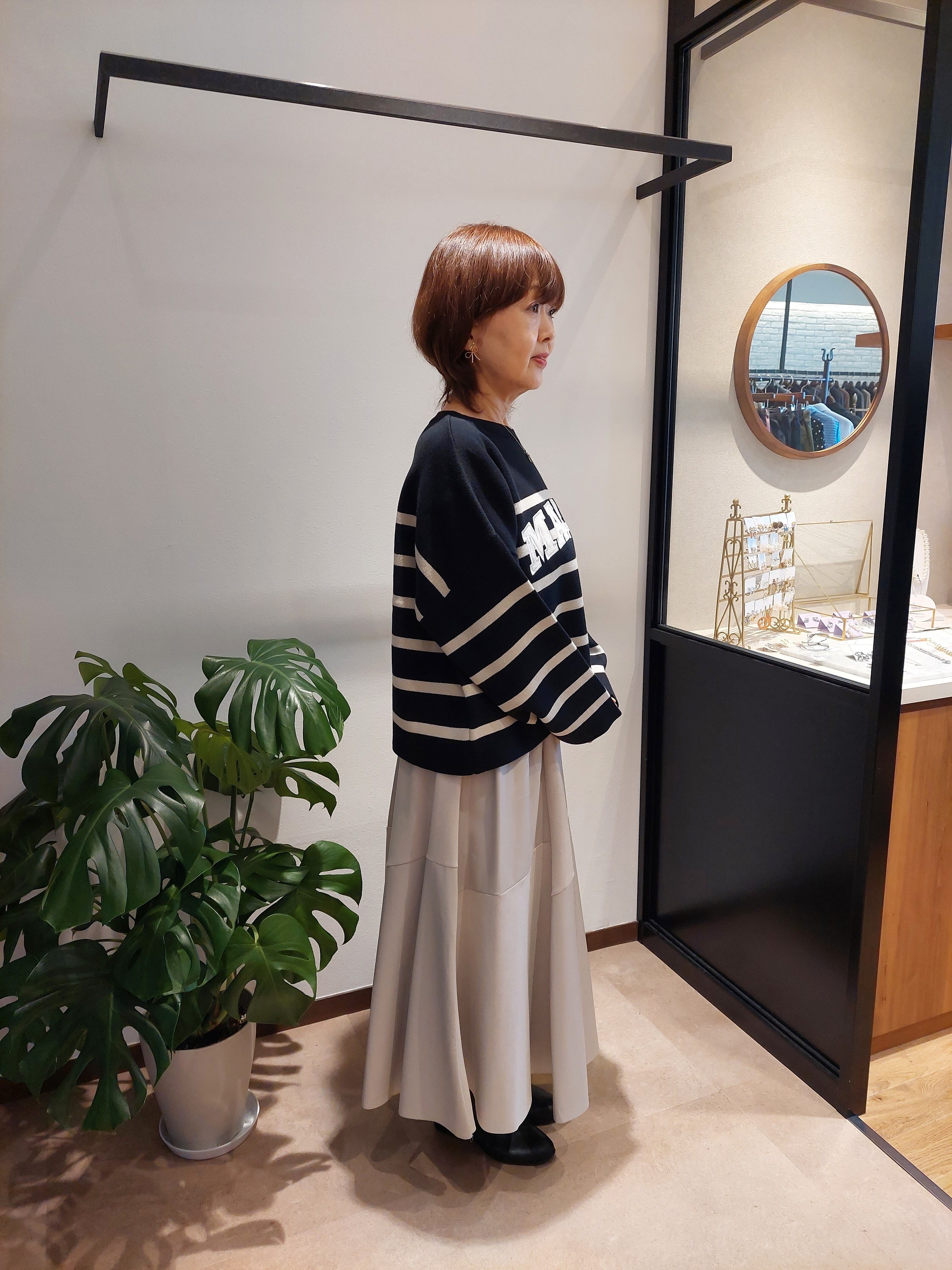 ボックスシルエットなのでボリュームのあるボトムスとも相性抜群です。