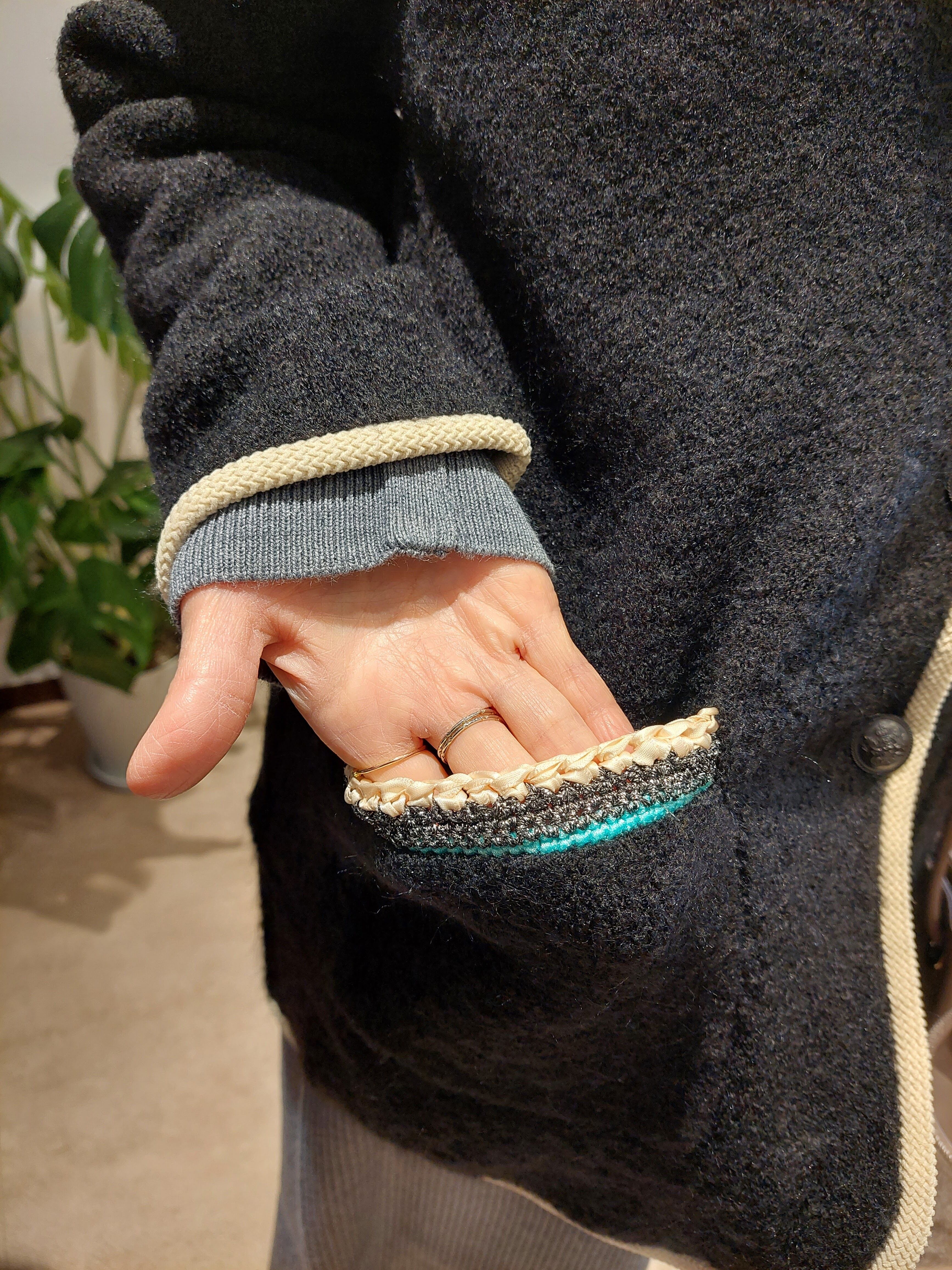 ポケット口のかぎ針パーツがポイント。