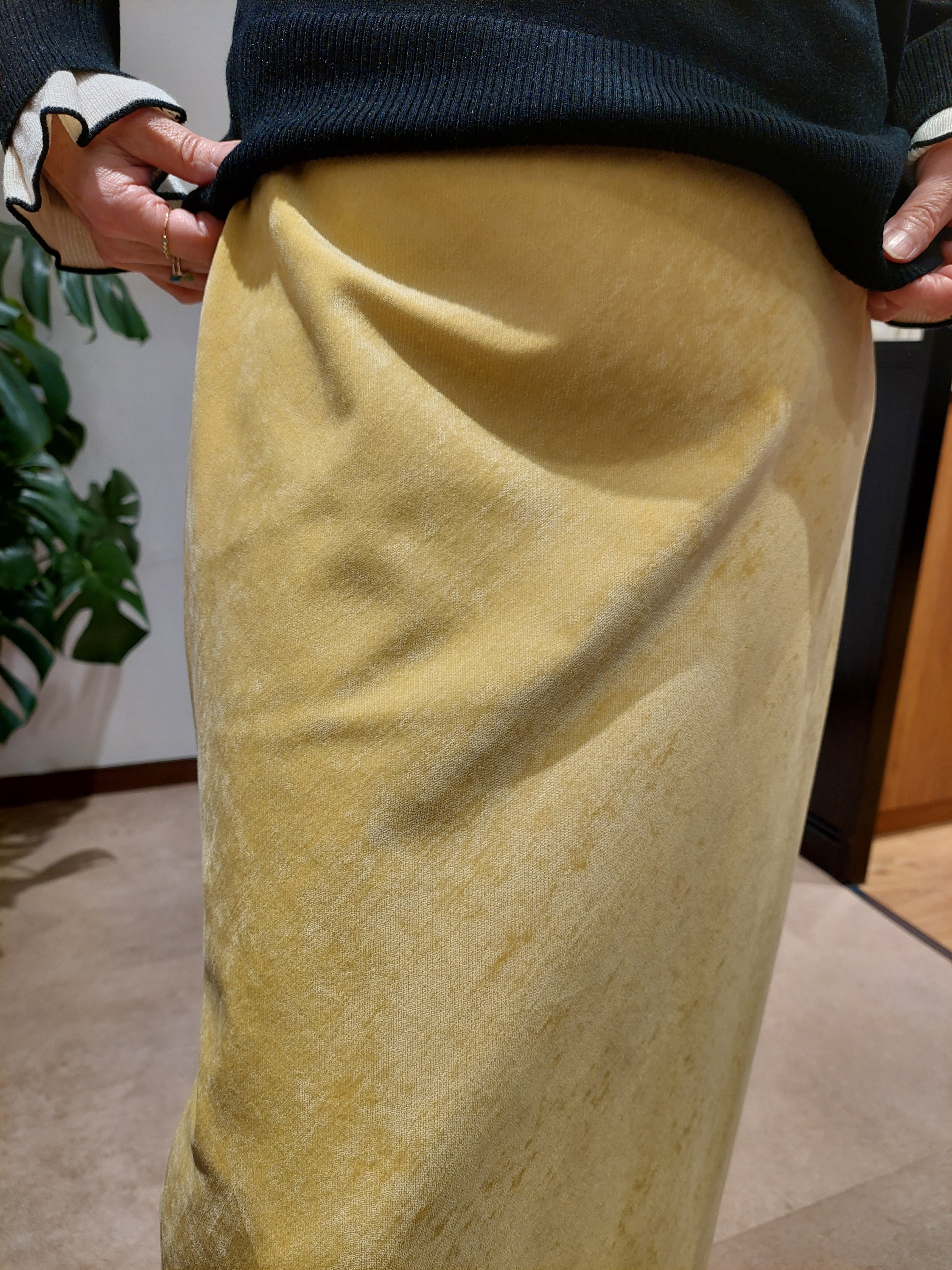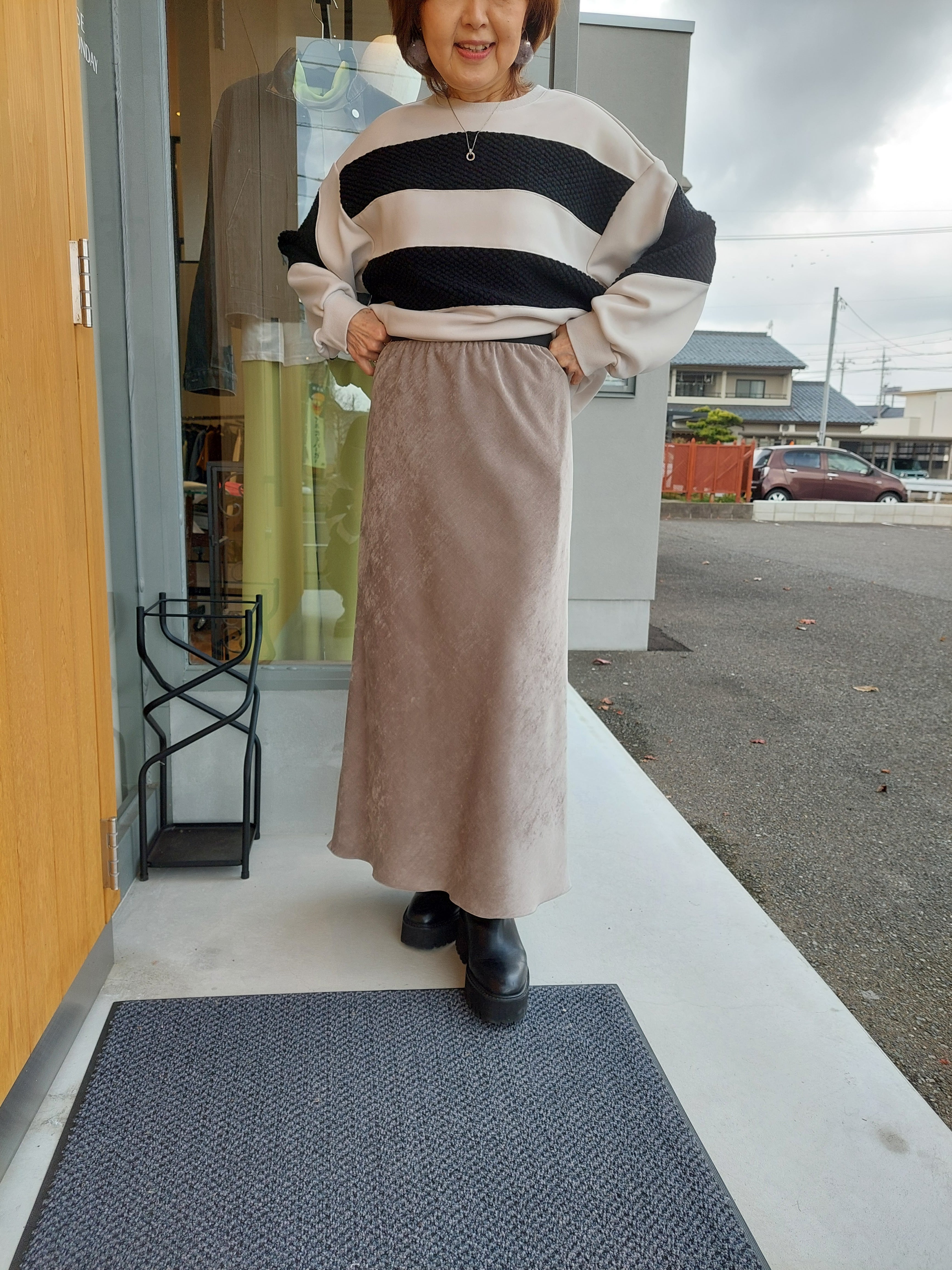 ベロアのような光沢が美しい別珍タイトスカート。