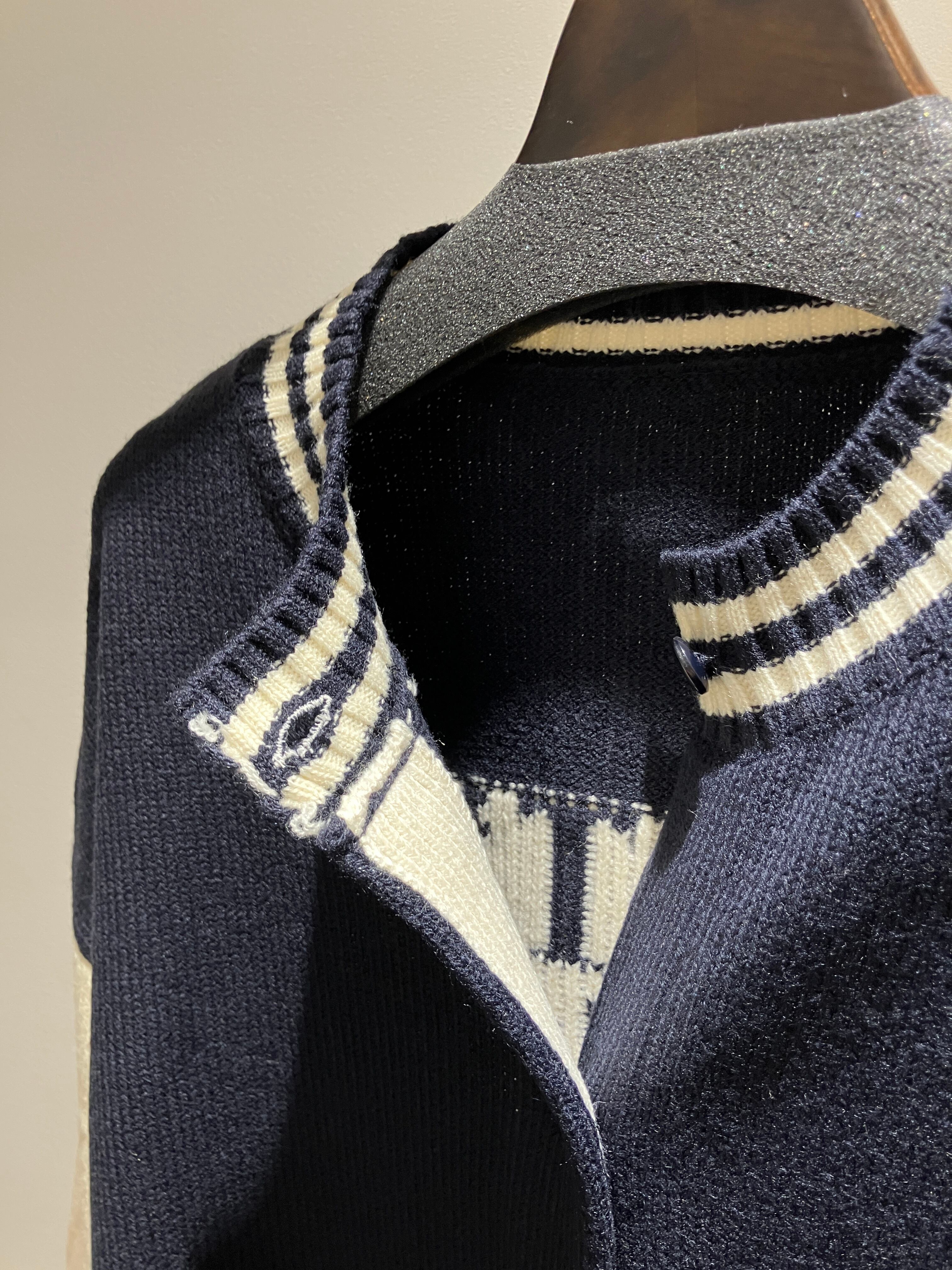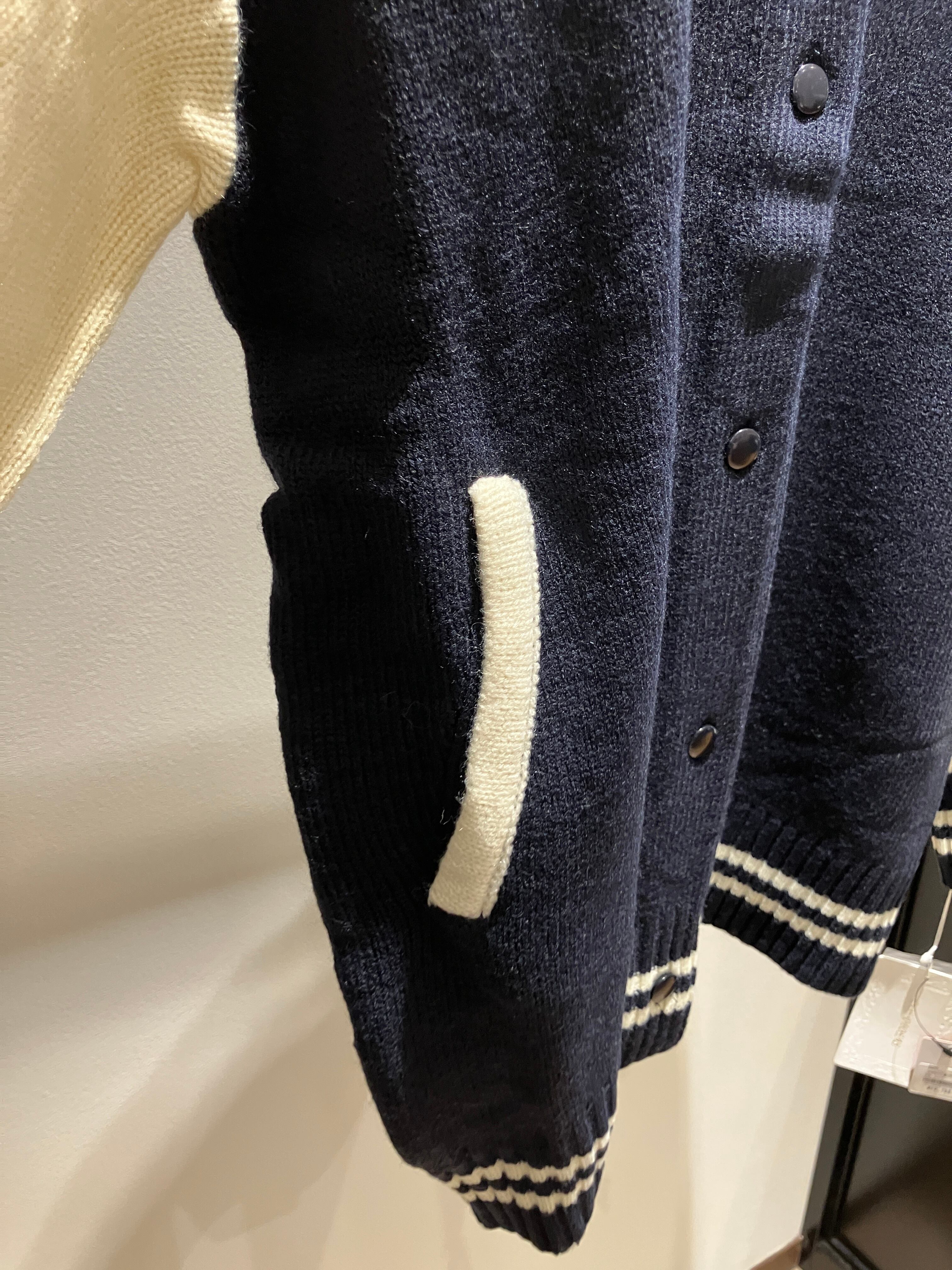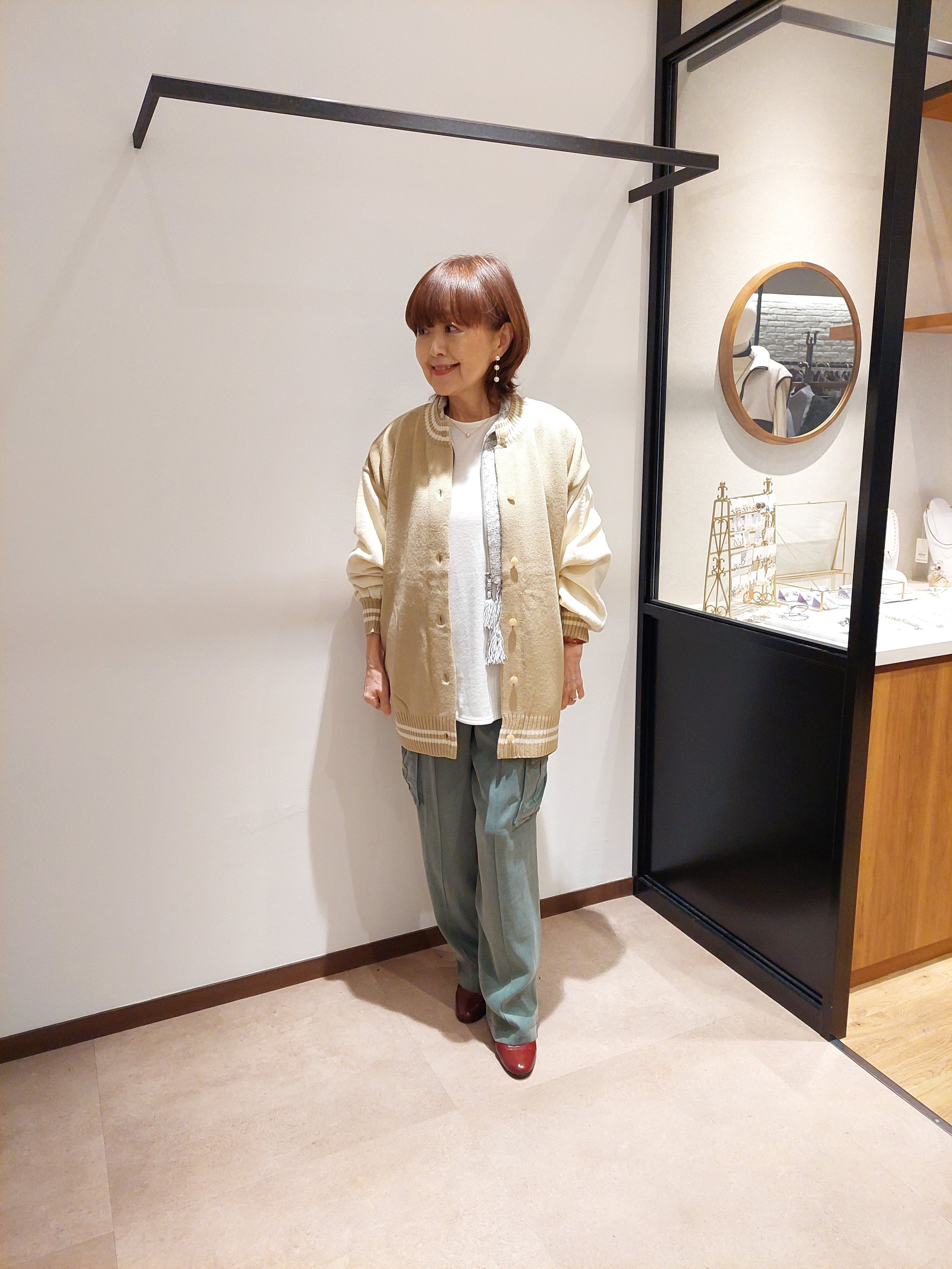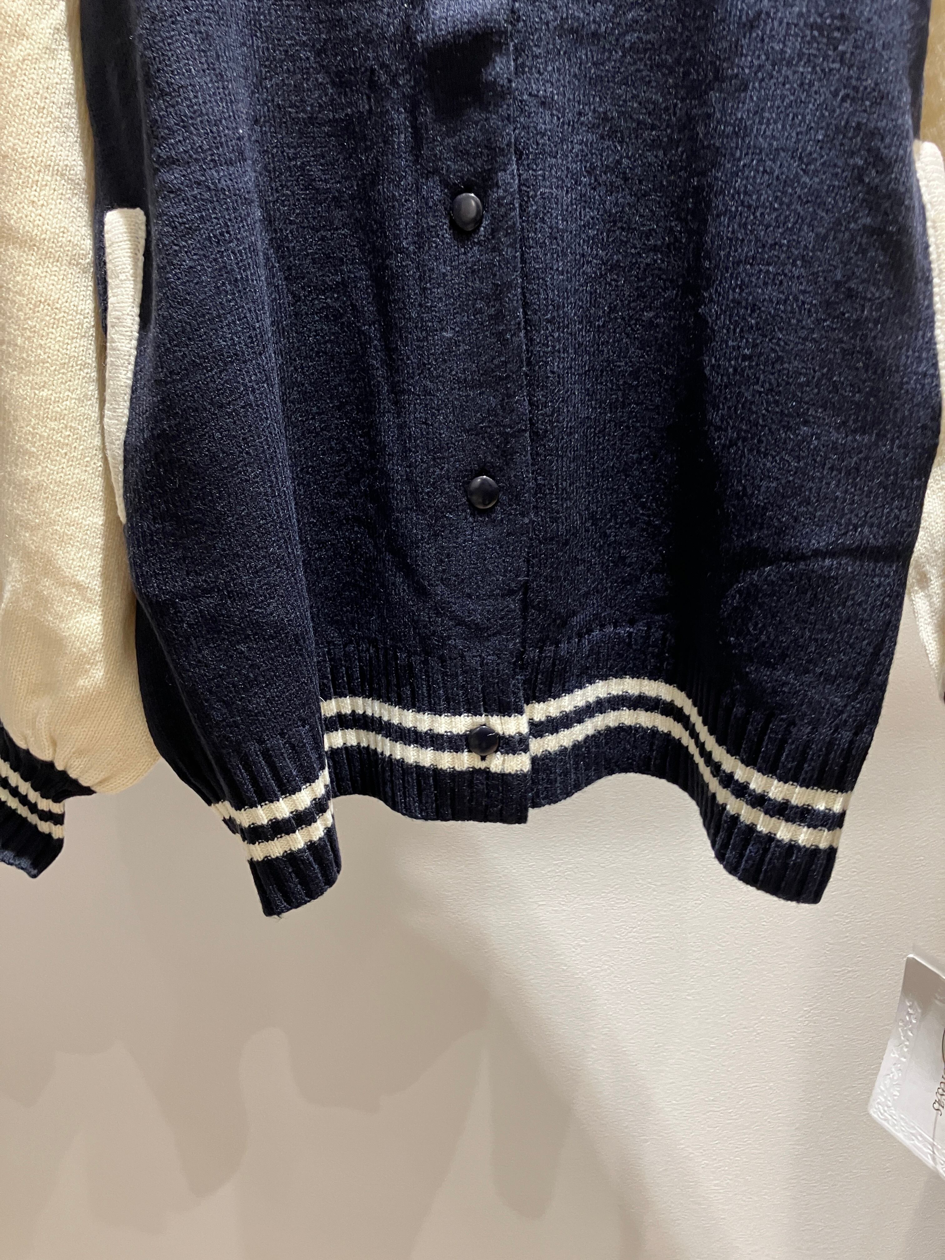 ニットで編みこんだ、柔らかい雰囲気のスタジャン。