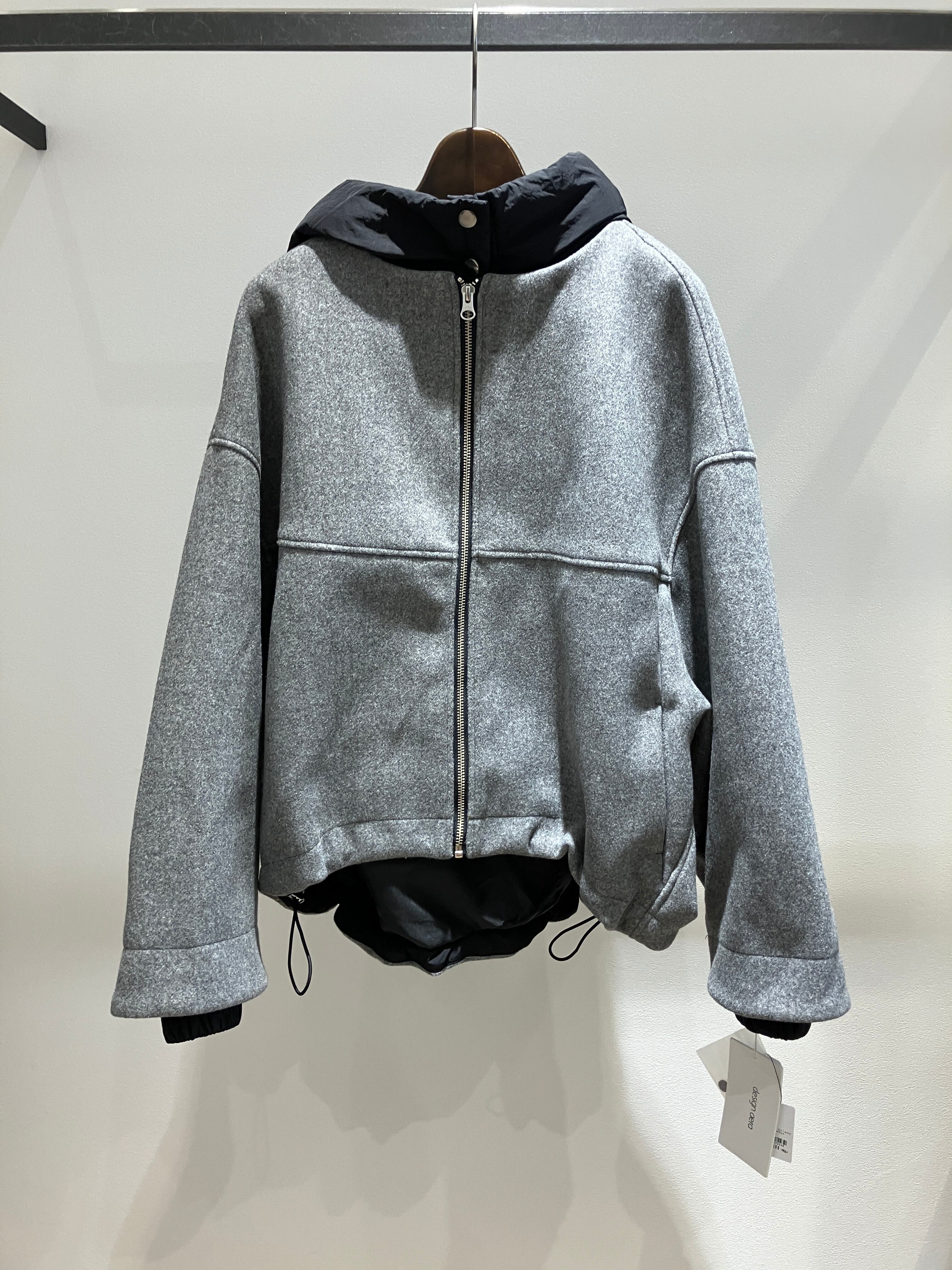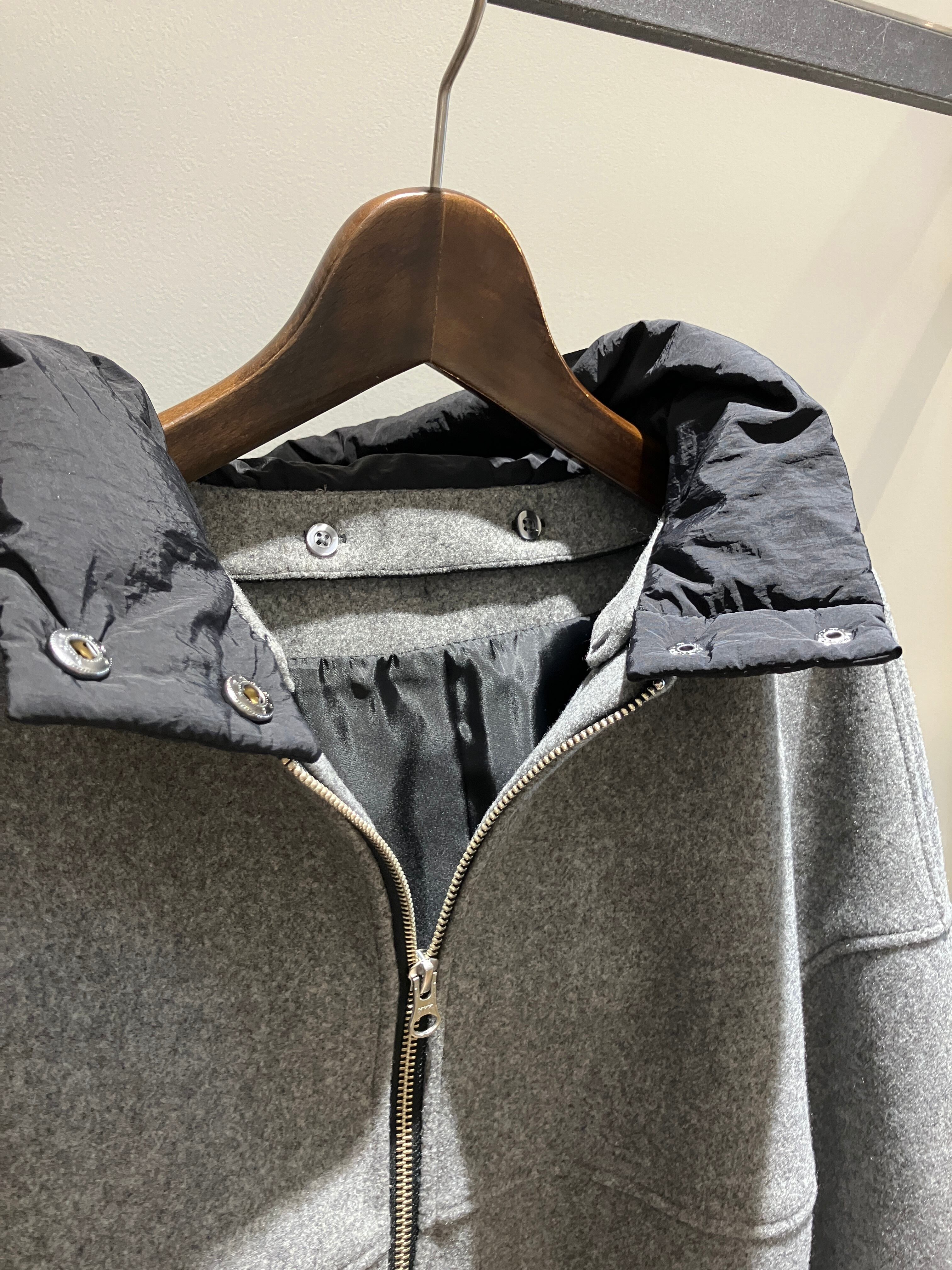 フードは取り外しが可能なので、ノーカラーのブルゾンとしても楽しめます。