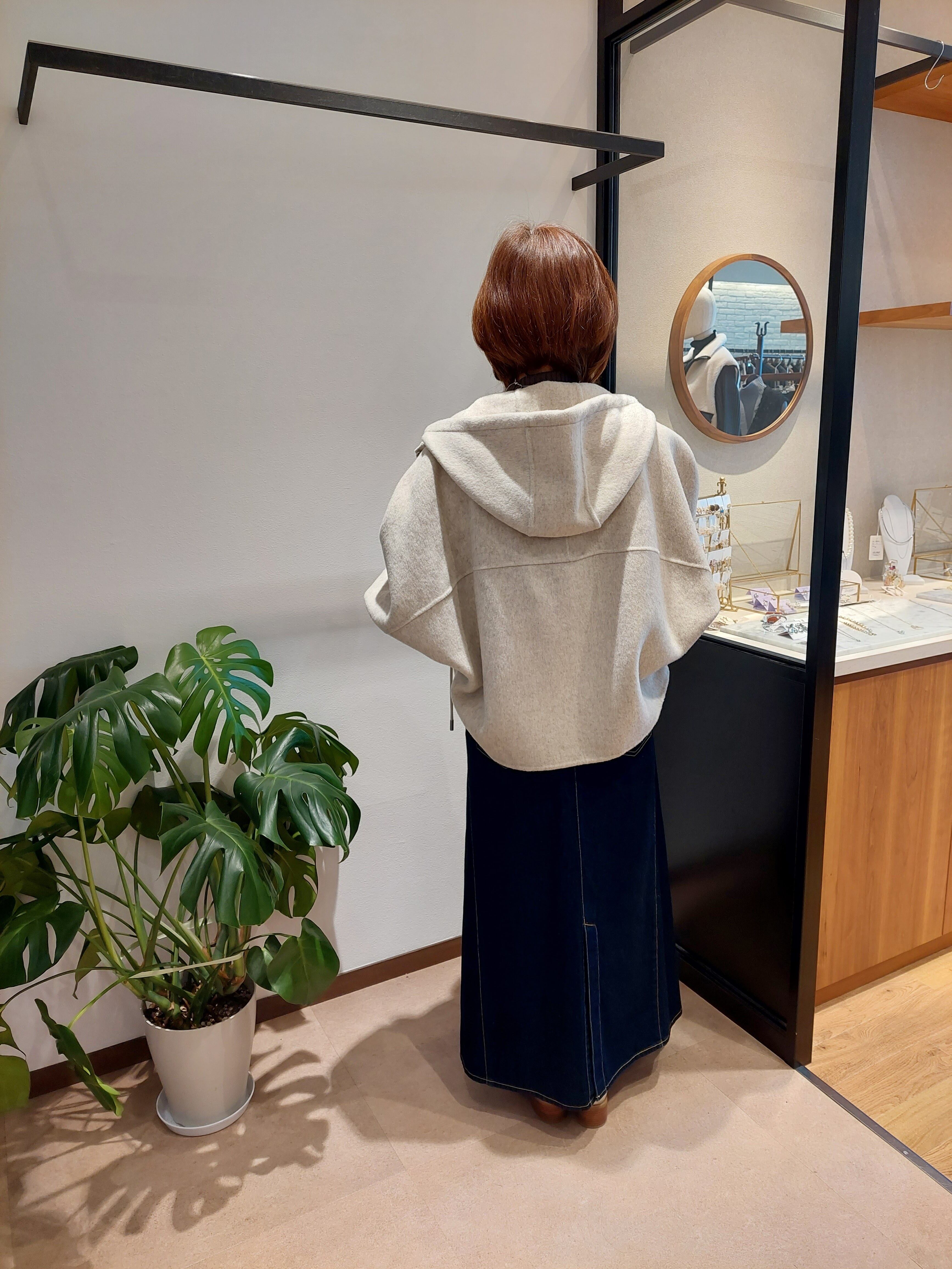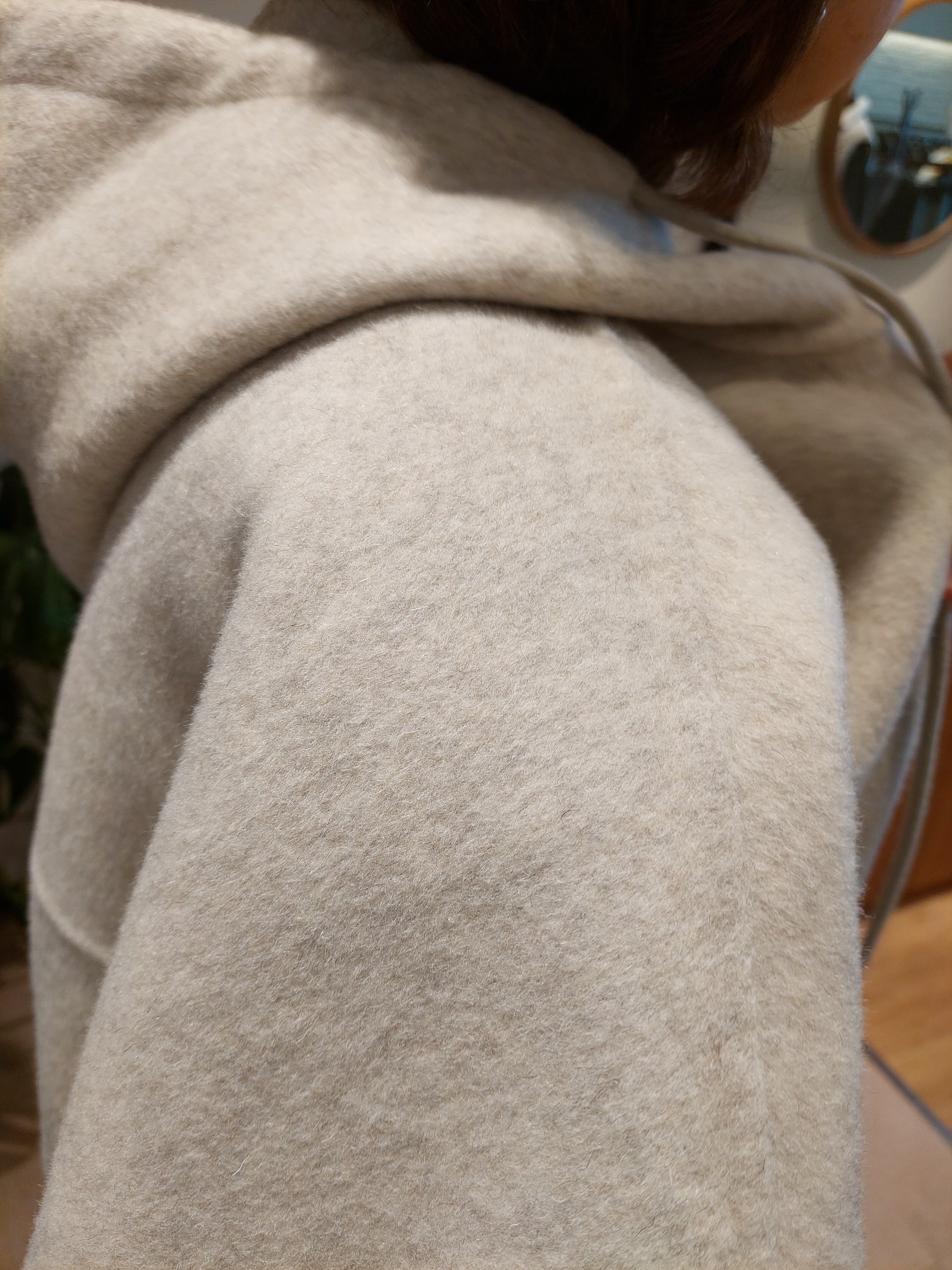 柔らかいウールをふんだんに使用したフード付きジャケット。