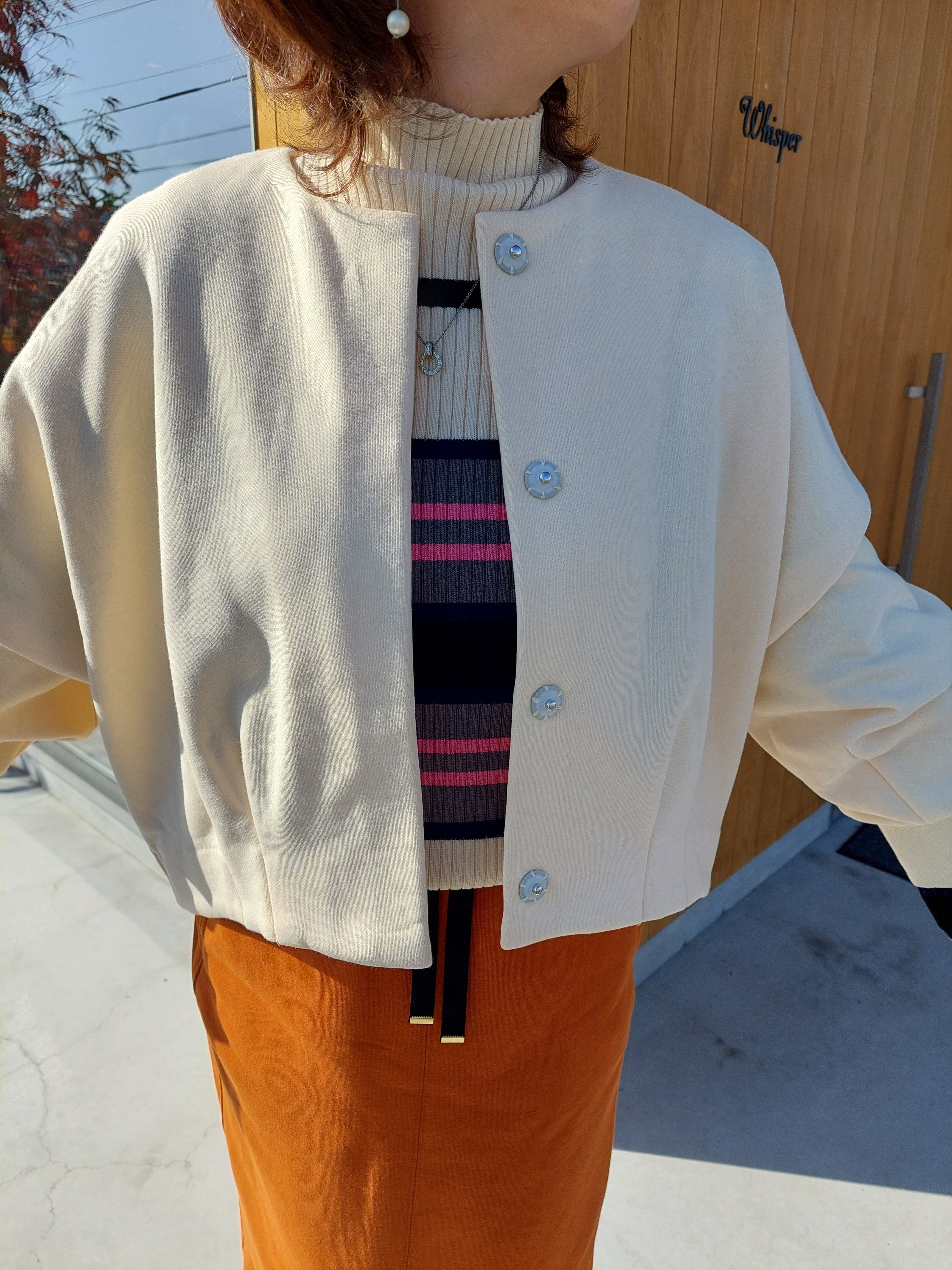 暖かく肌触りの良い裏起毛のジャージを使用したショート丈ボレロジャケット。軽やかな着心地と保温性を兼ね備えた素材で、季節の変わり目にも活躍します。丸みのある立体的な袖が特徴で、着るだけで自然とこなれた雰囲気を演出。後ろ身頃のタックデザインがシルエットにメリハリを持たせ、軽いカーディガン感覚でデイリーに着られる1枚です。