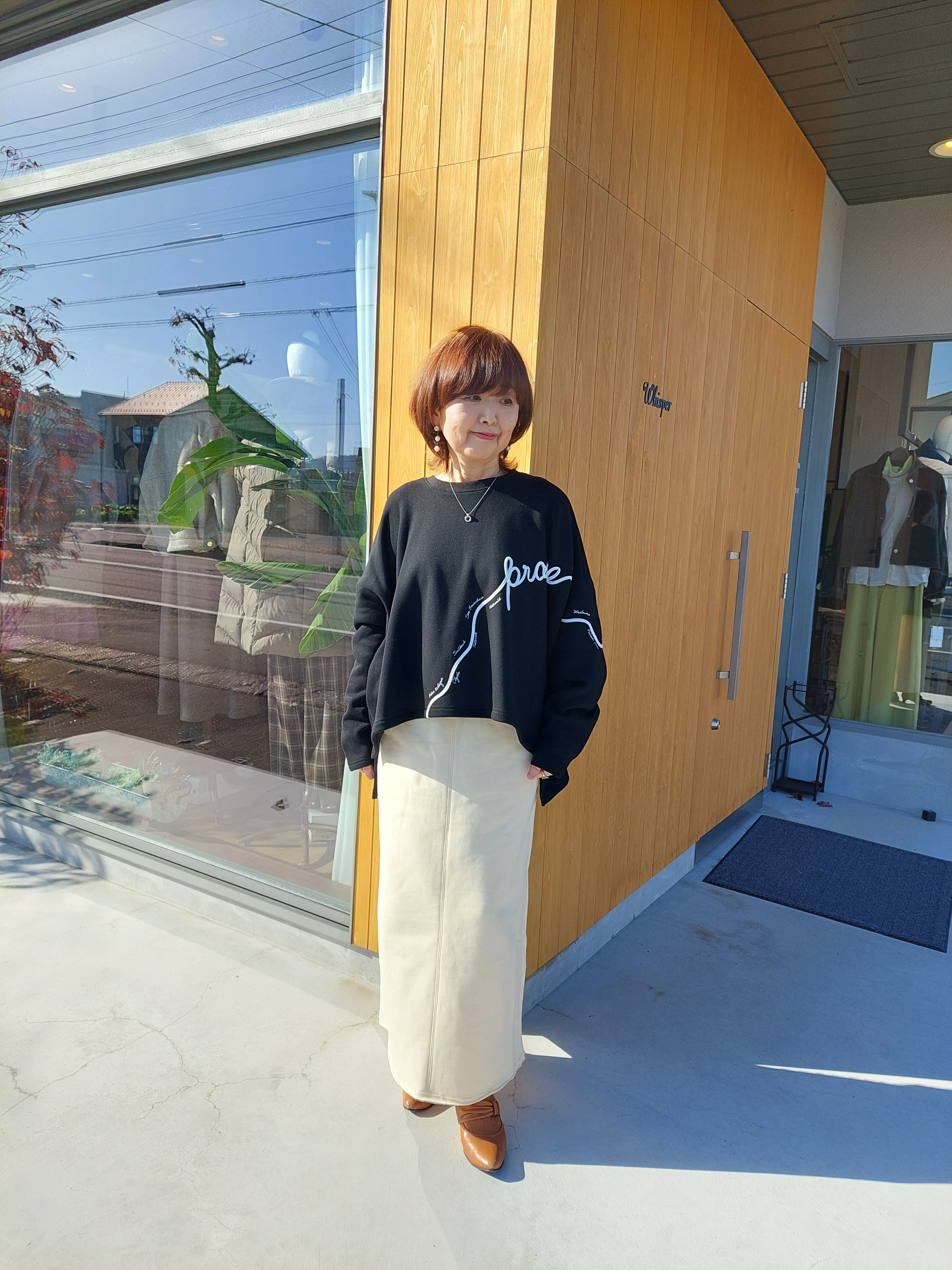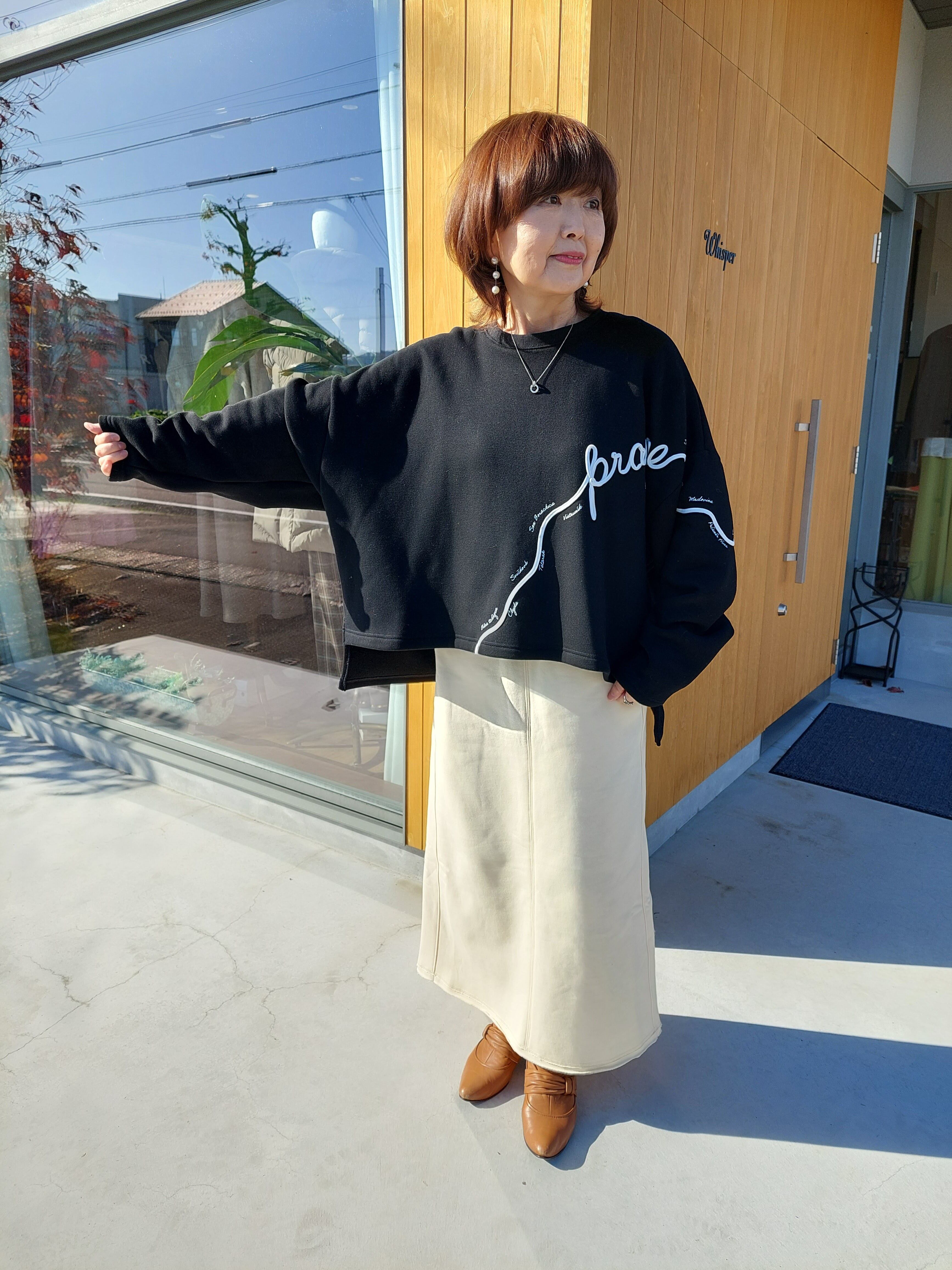 着丈が長すぎないため、バランスのとりやすいトップスです。
