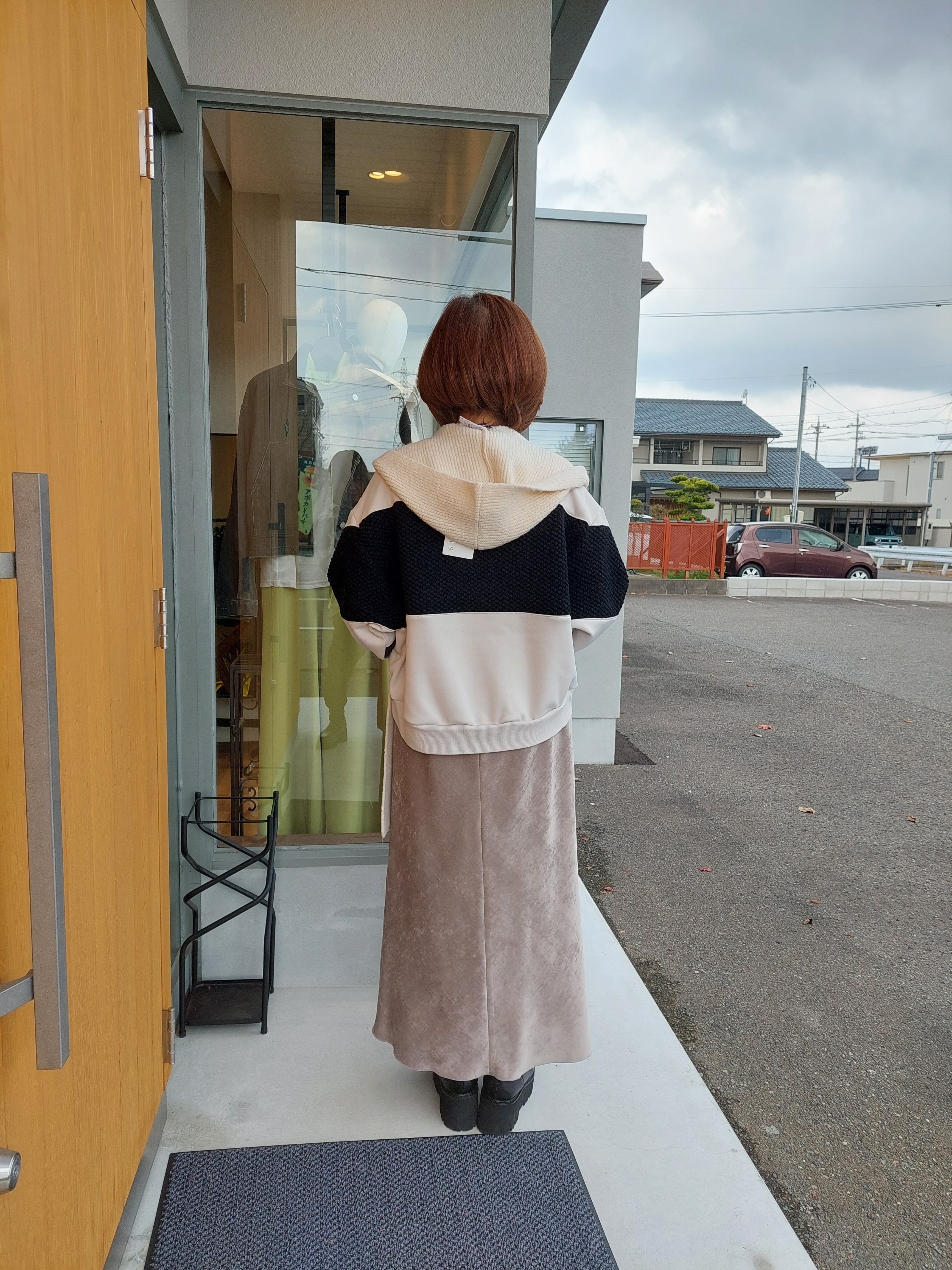 程よい厚みと立体感のあるふんわりとした生地感のフードマフラー。