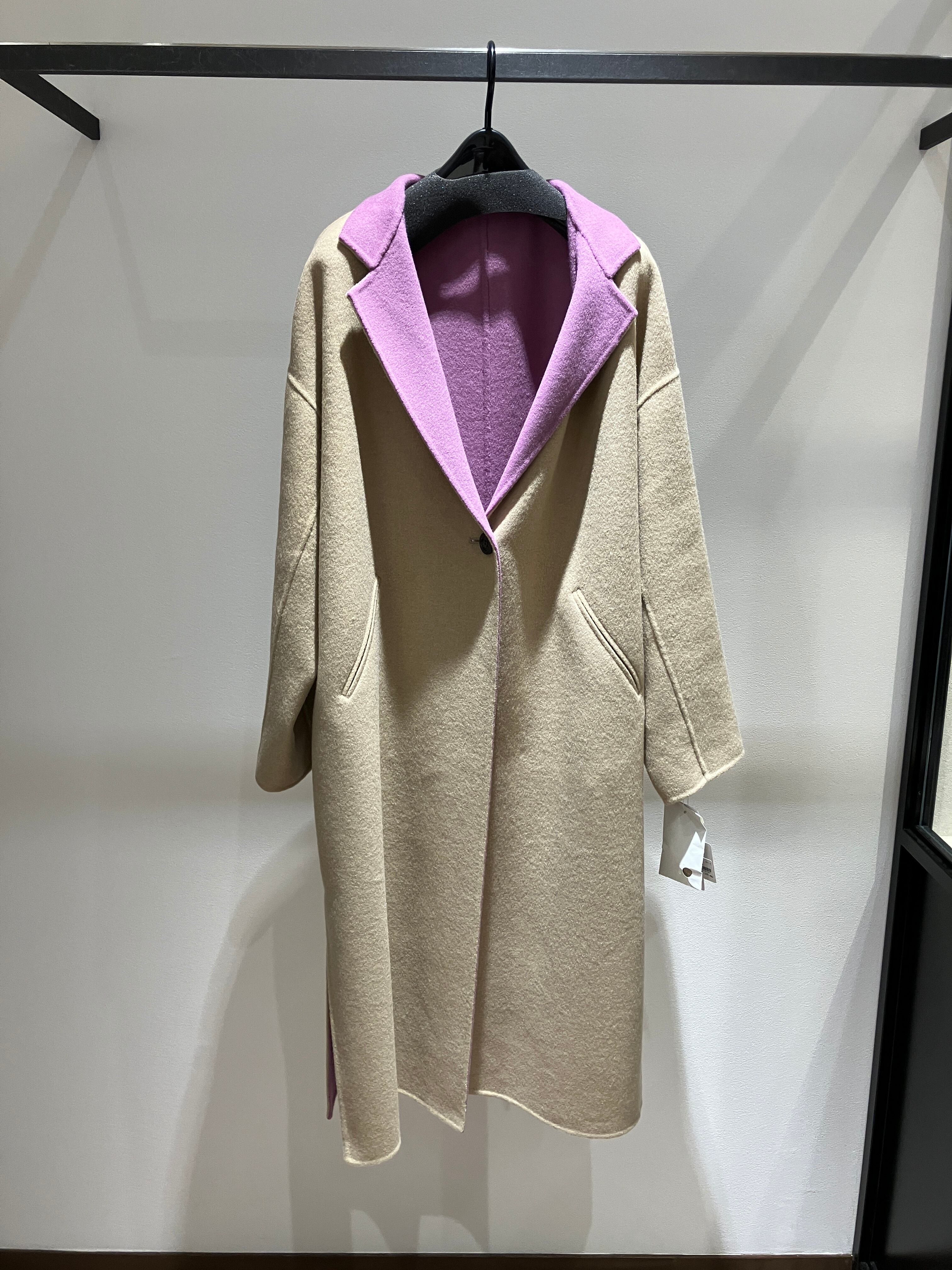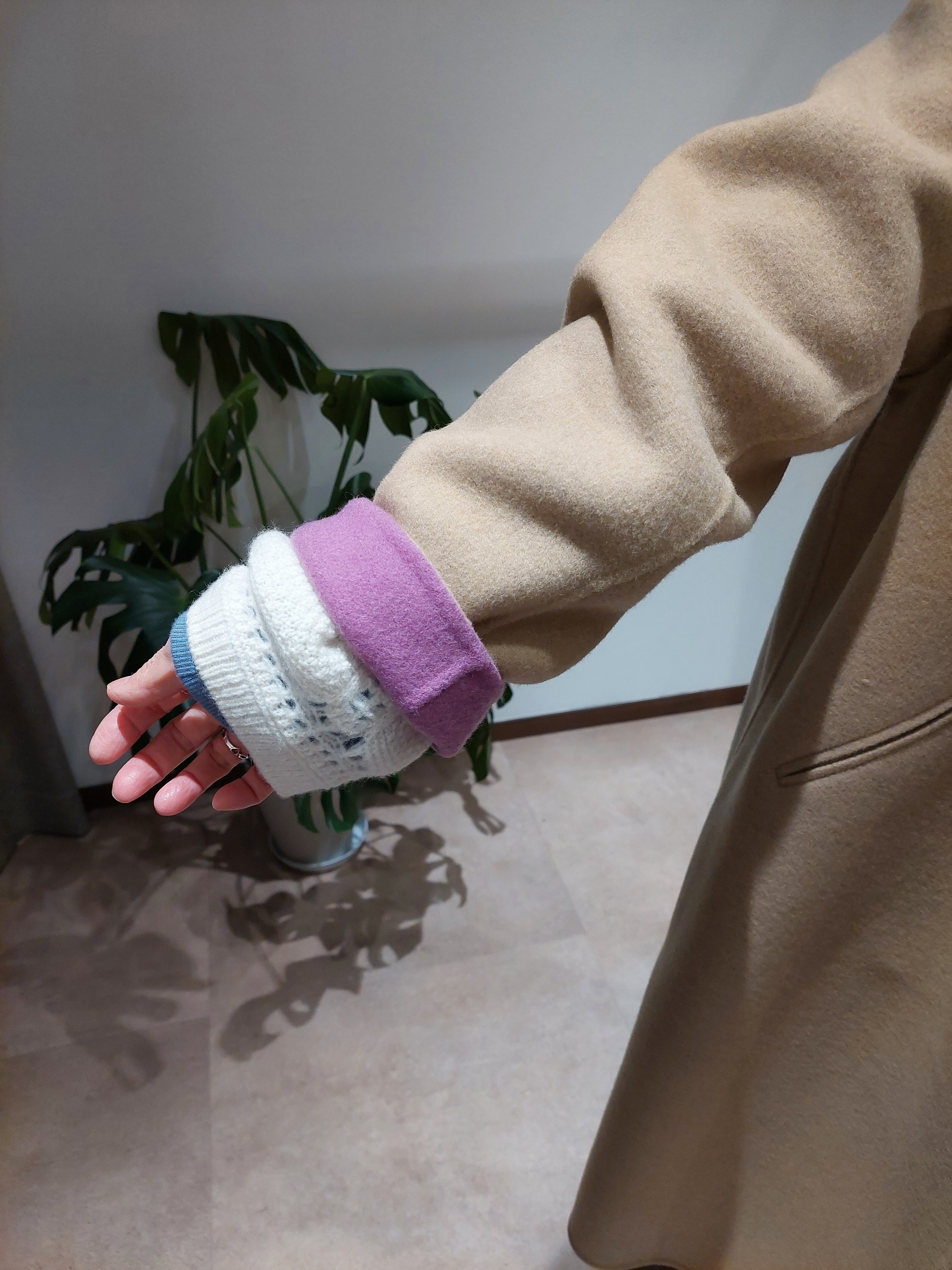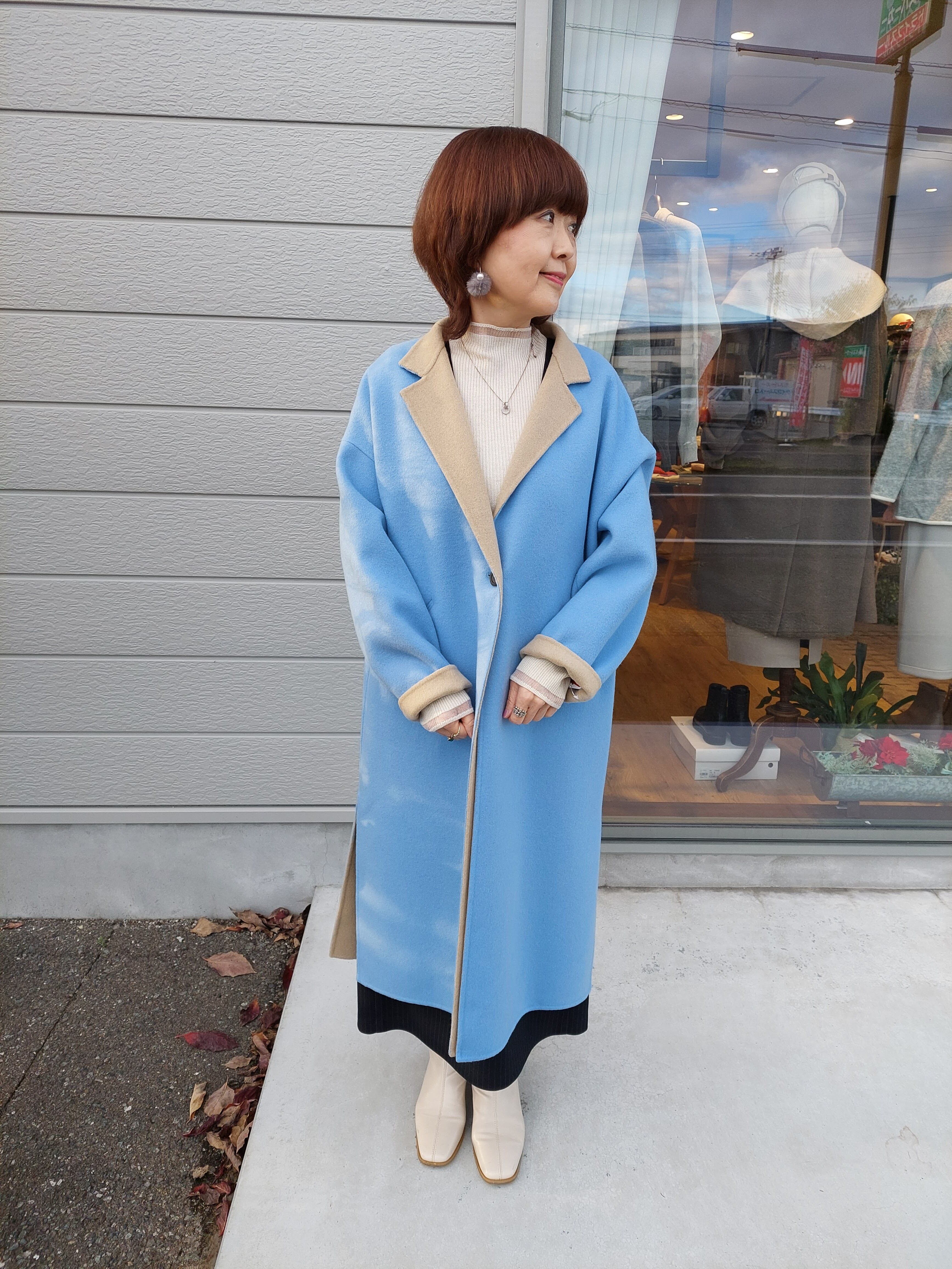 配色が目を惹くウールコート。