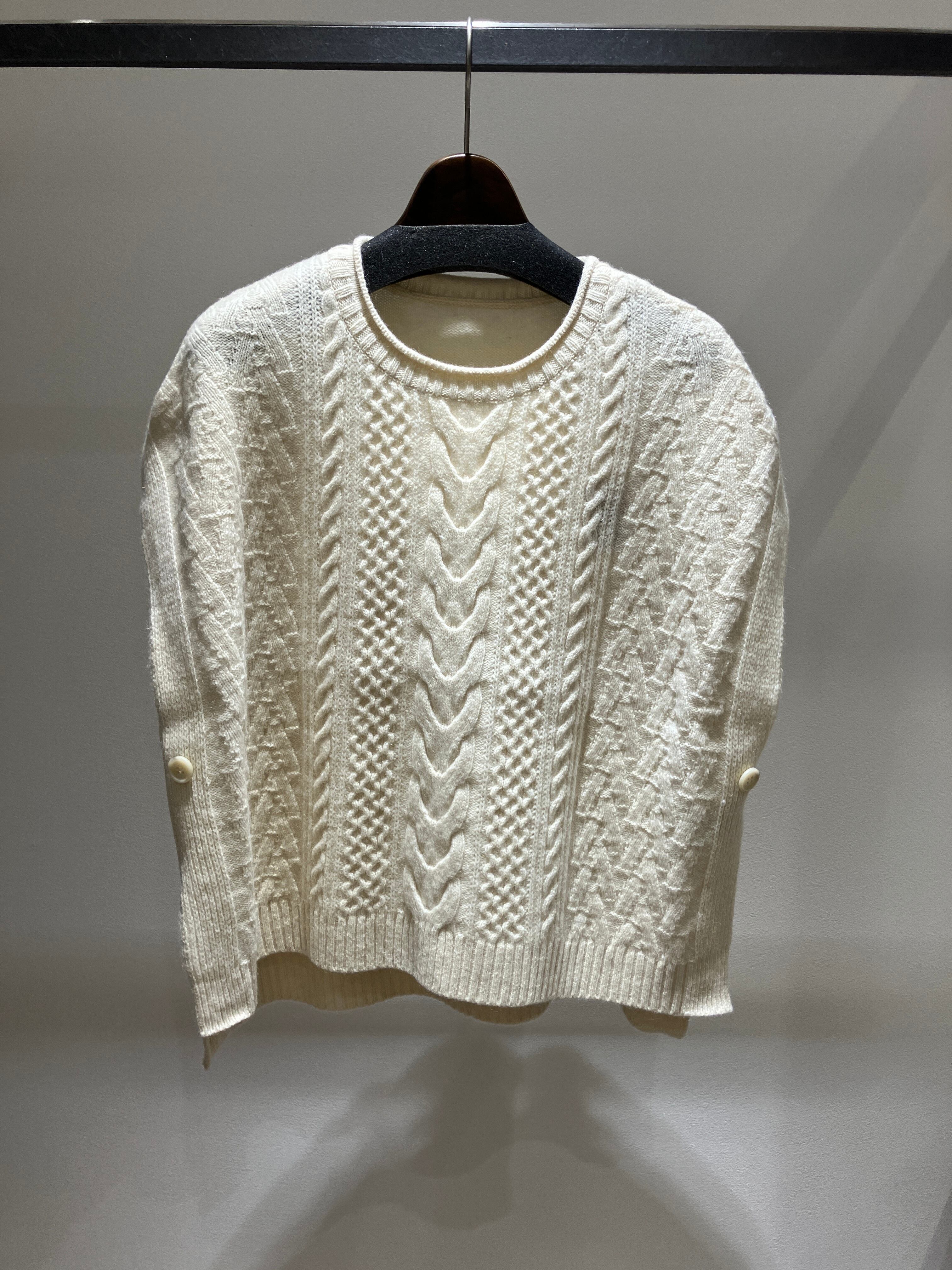 カシミア混のウール素材は軽く暖かく、伝統的なアラン柄の凹凸感が