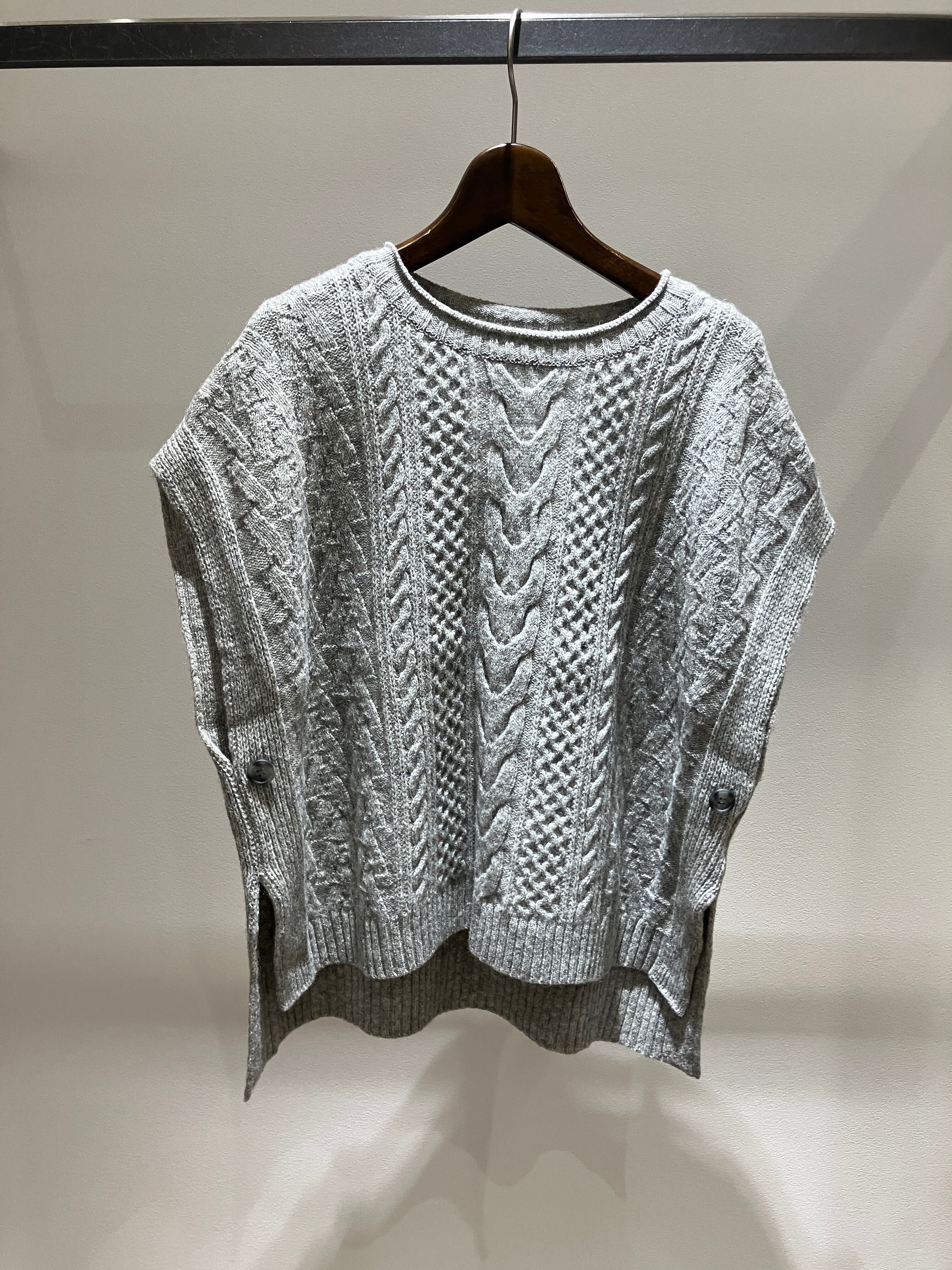アラン柄を組み合わせた、クルーネックのプルオーバーベストです。