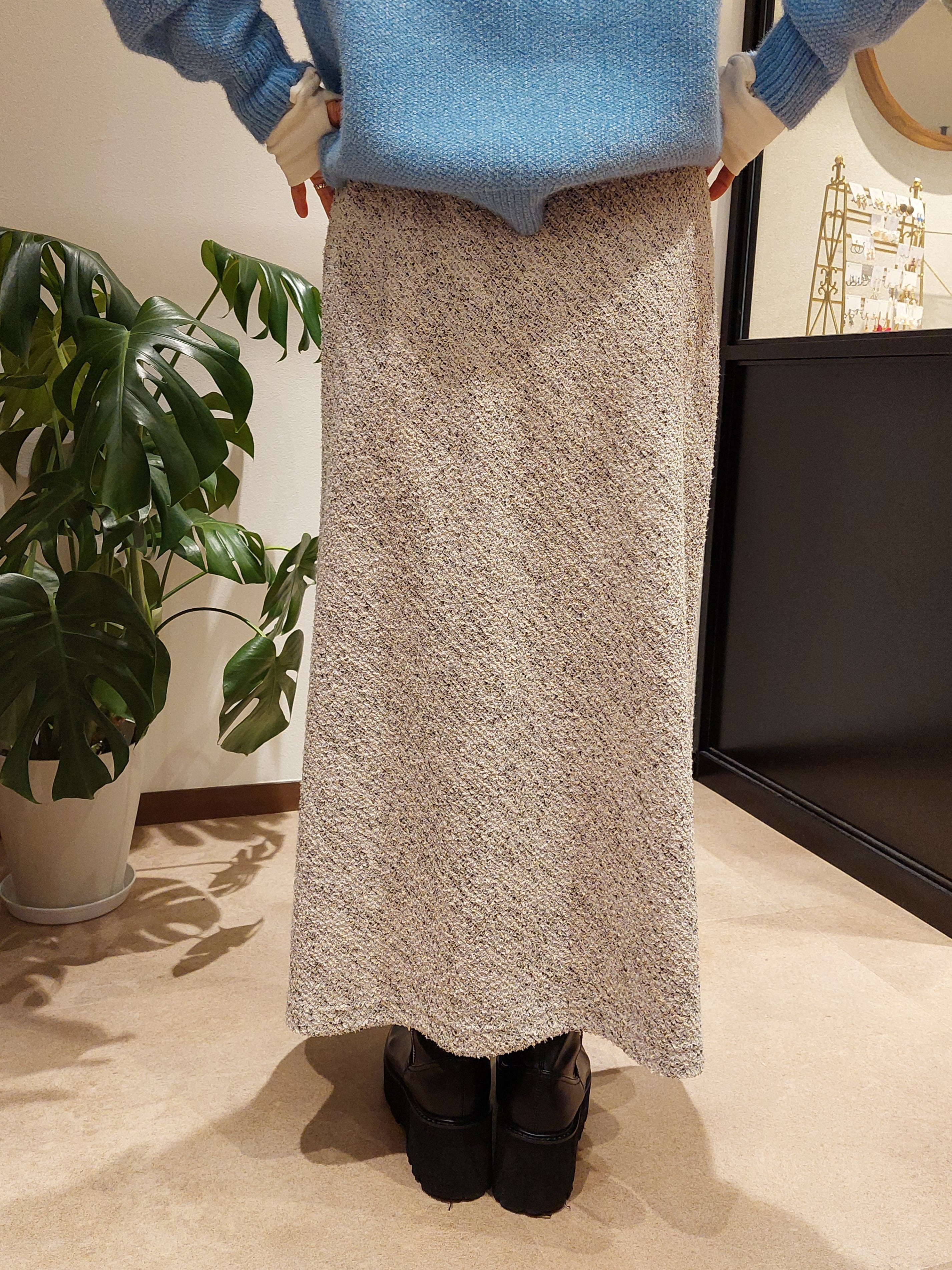 ツイード特有の凹凸感をニットの柔らかさで包んだ様なフレアスカート。