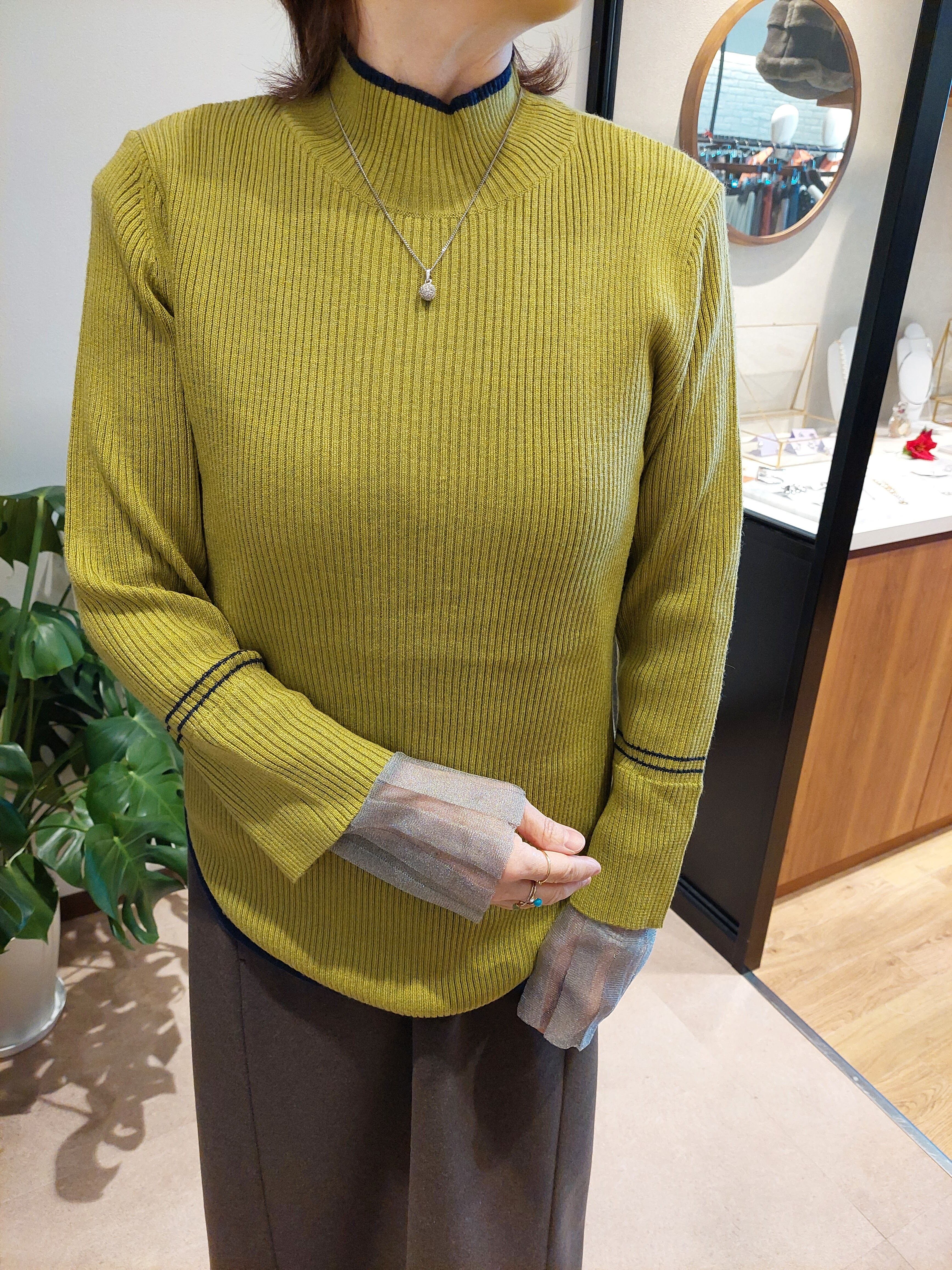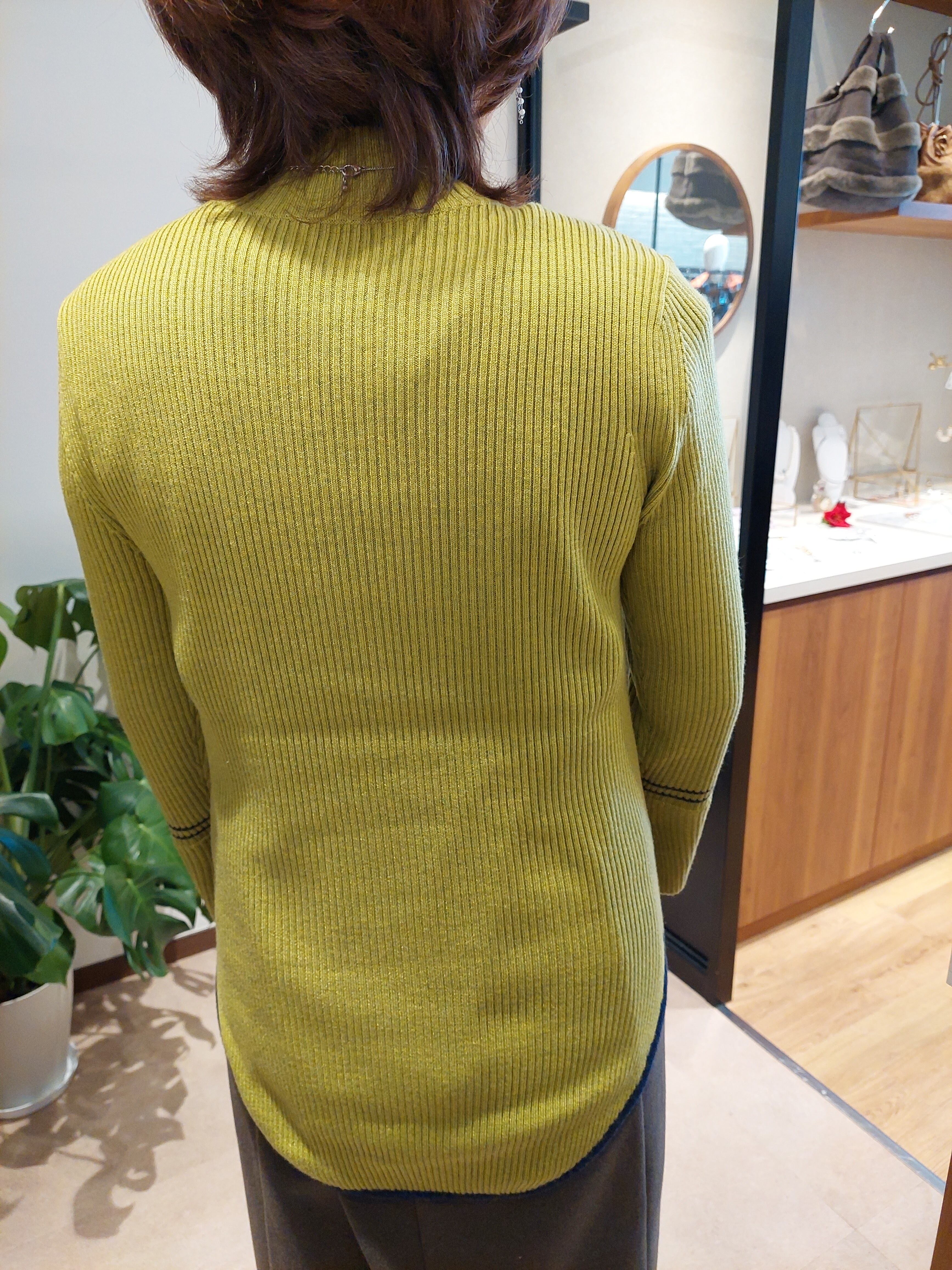 身頃は定番ベストセラーのハイゲージニットのシルエットを活かし、付かず離れずのボディラインを拾いにくいシルエット。