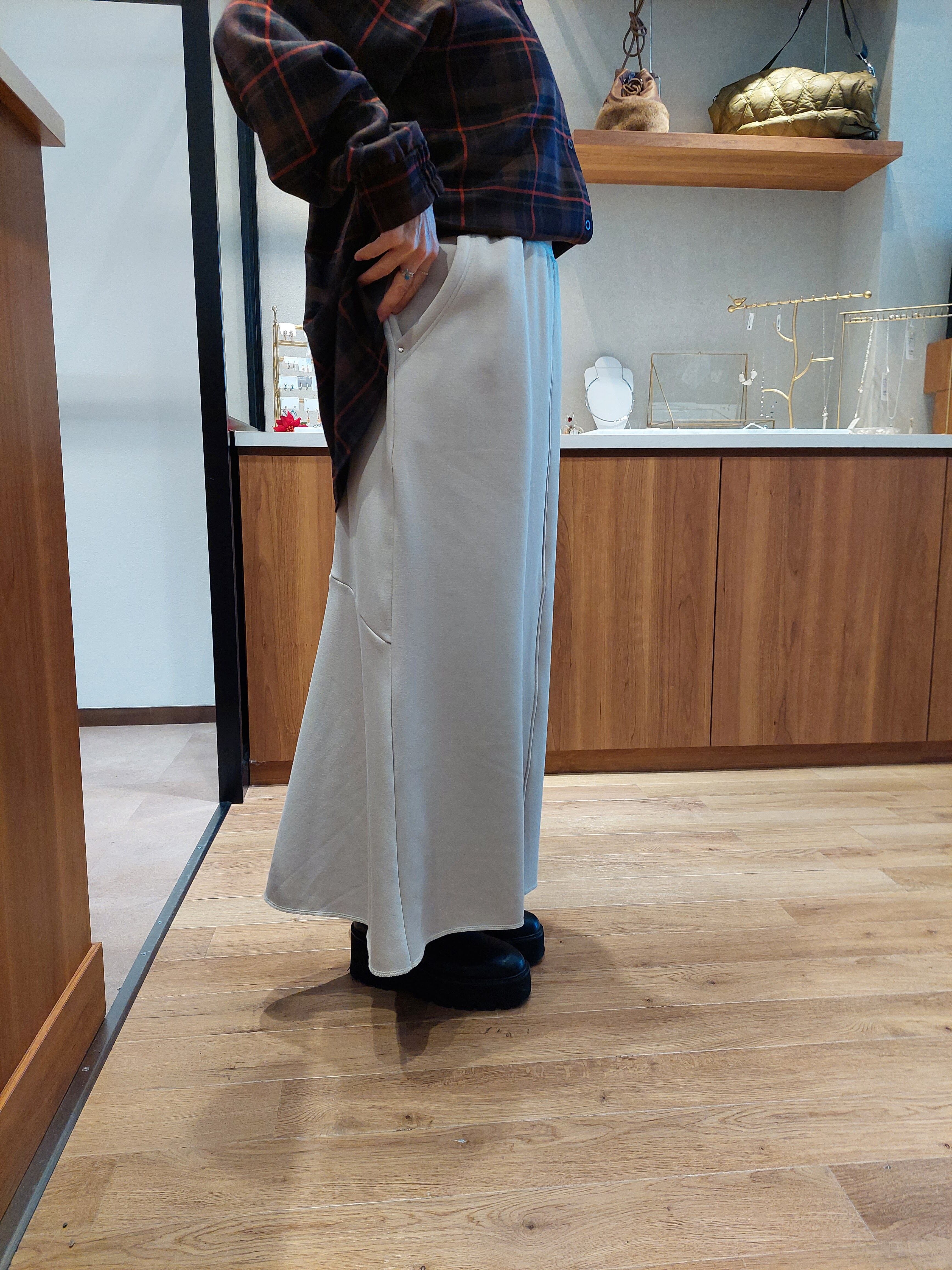 毛布に包まれるような、柔らかな裏起毛ムートン素材のフレアスカート。
