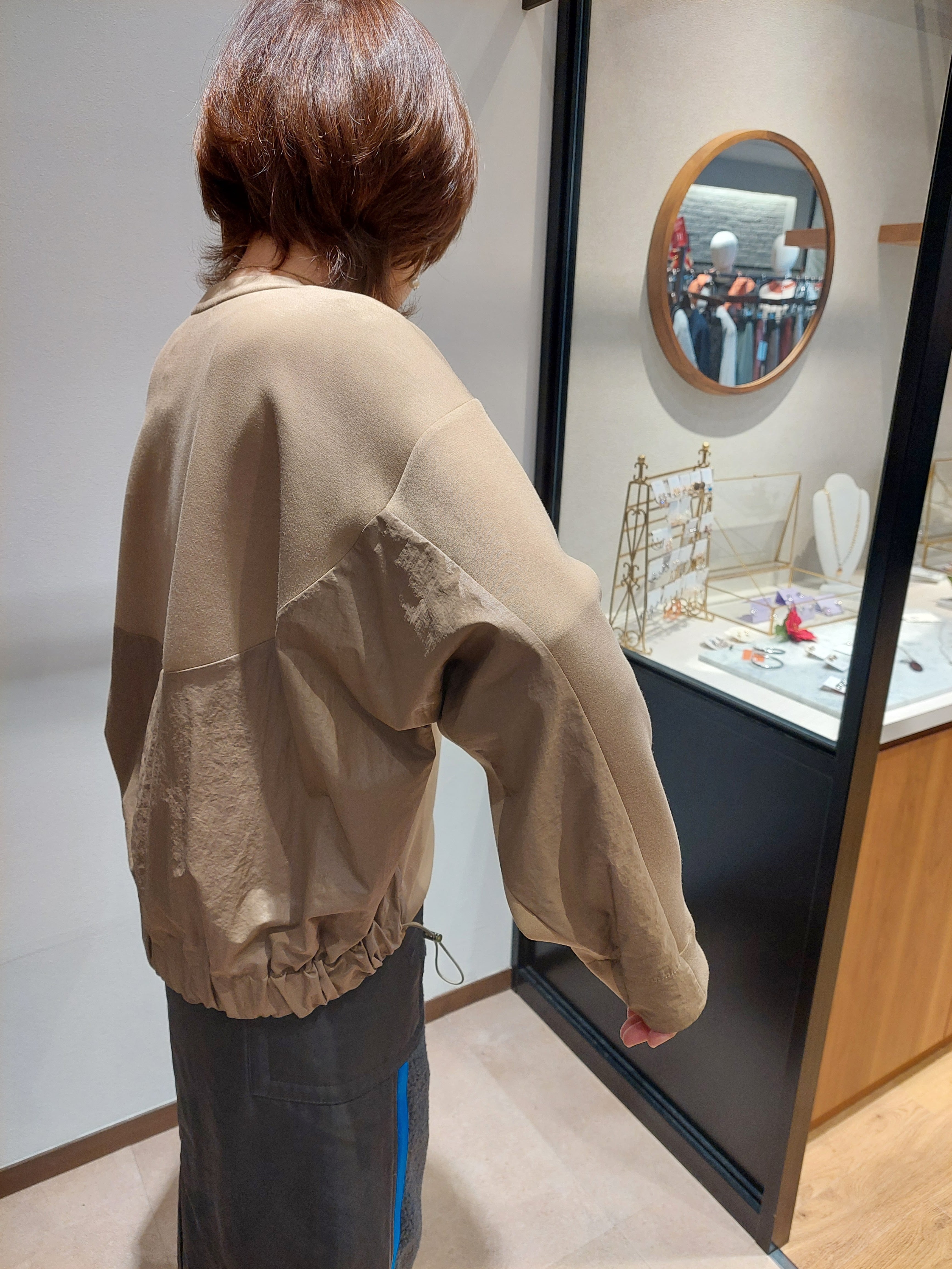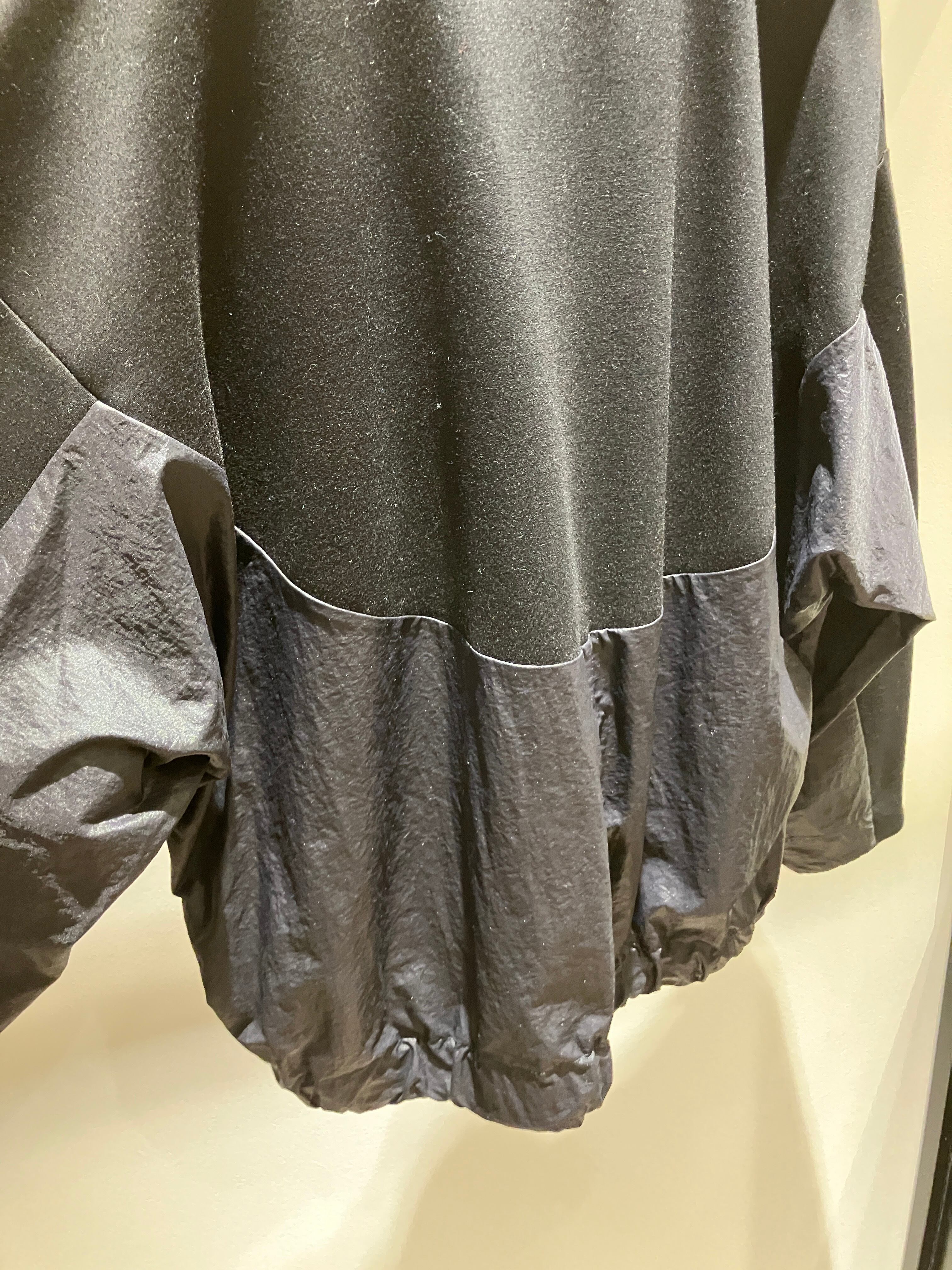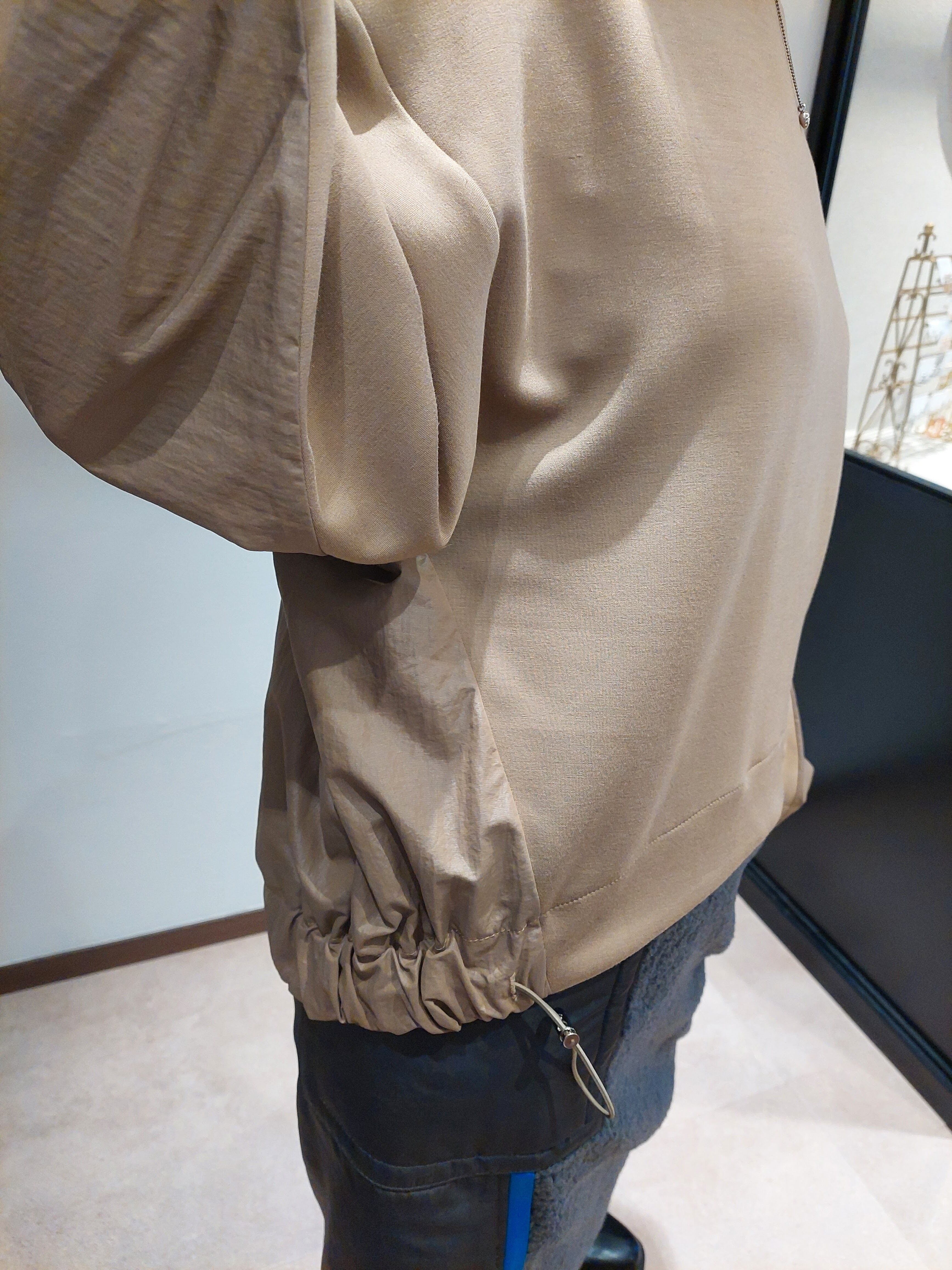 光沢を持たせたナイロン素材を組み合わせたプルオーバーです。