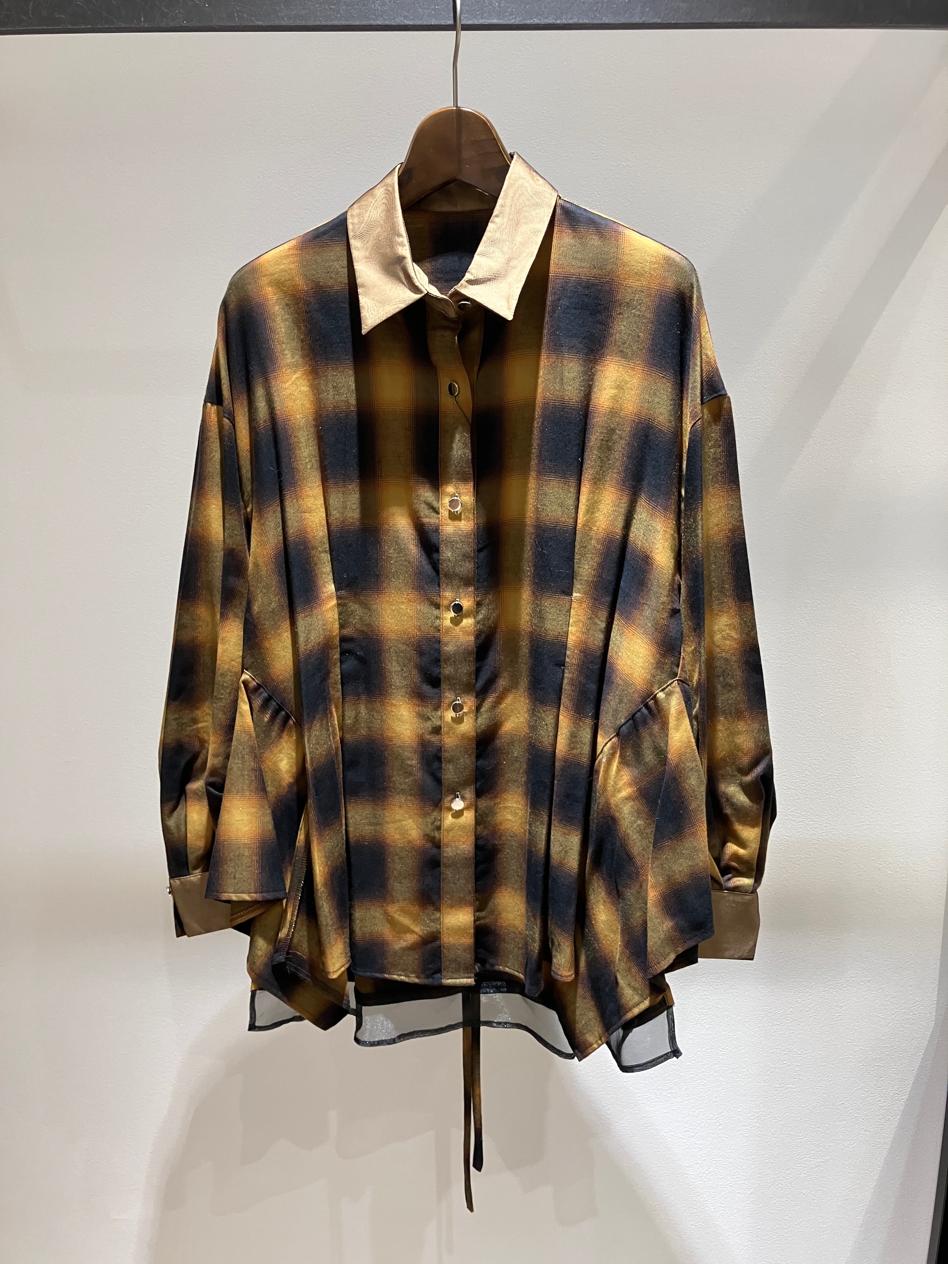 衿とカフ部分には繊細なチュールを重ねさりげない光沢感をプラス。