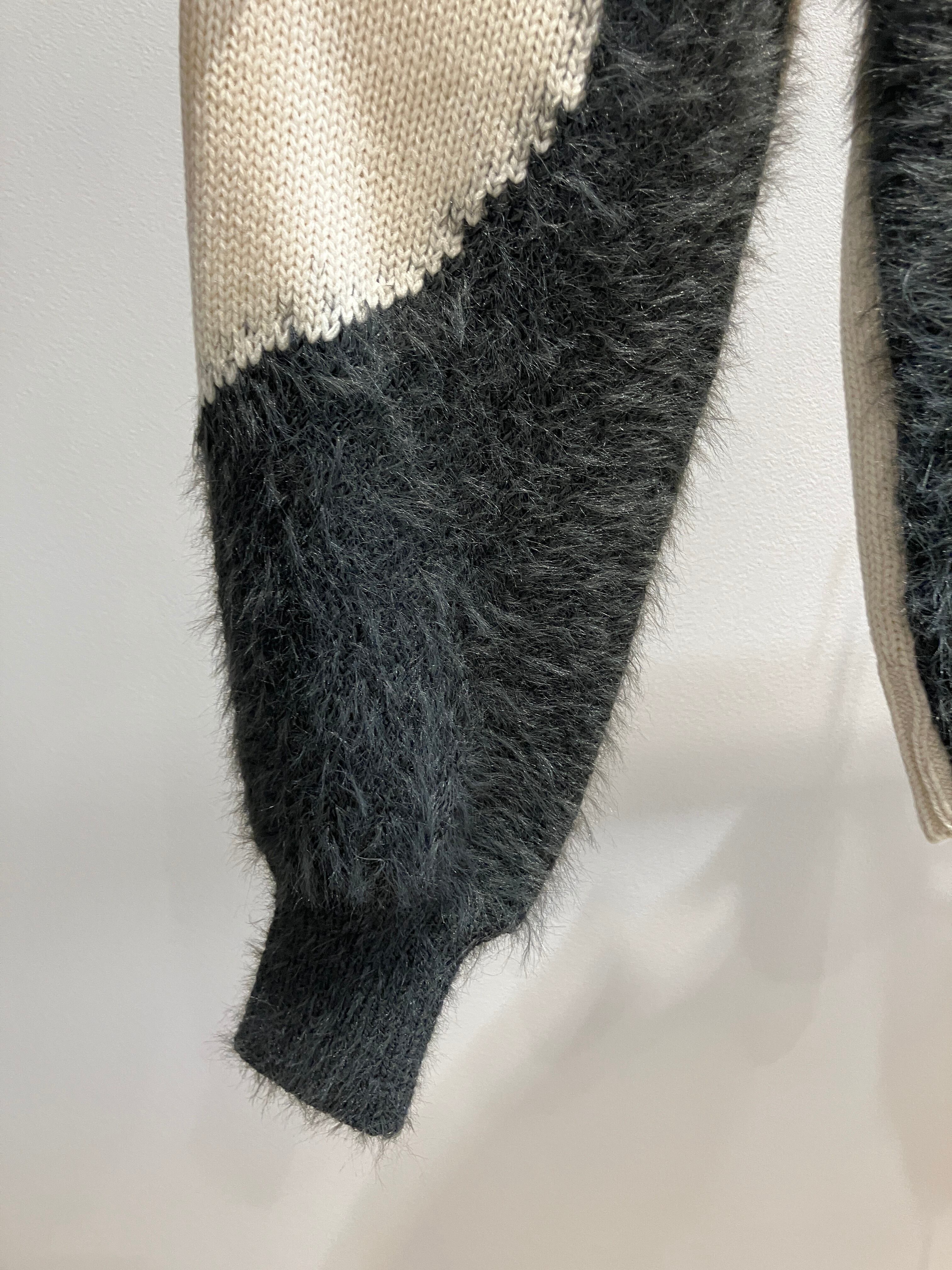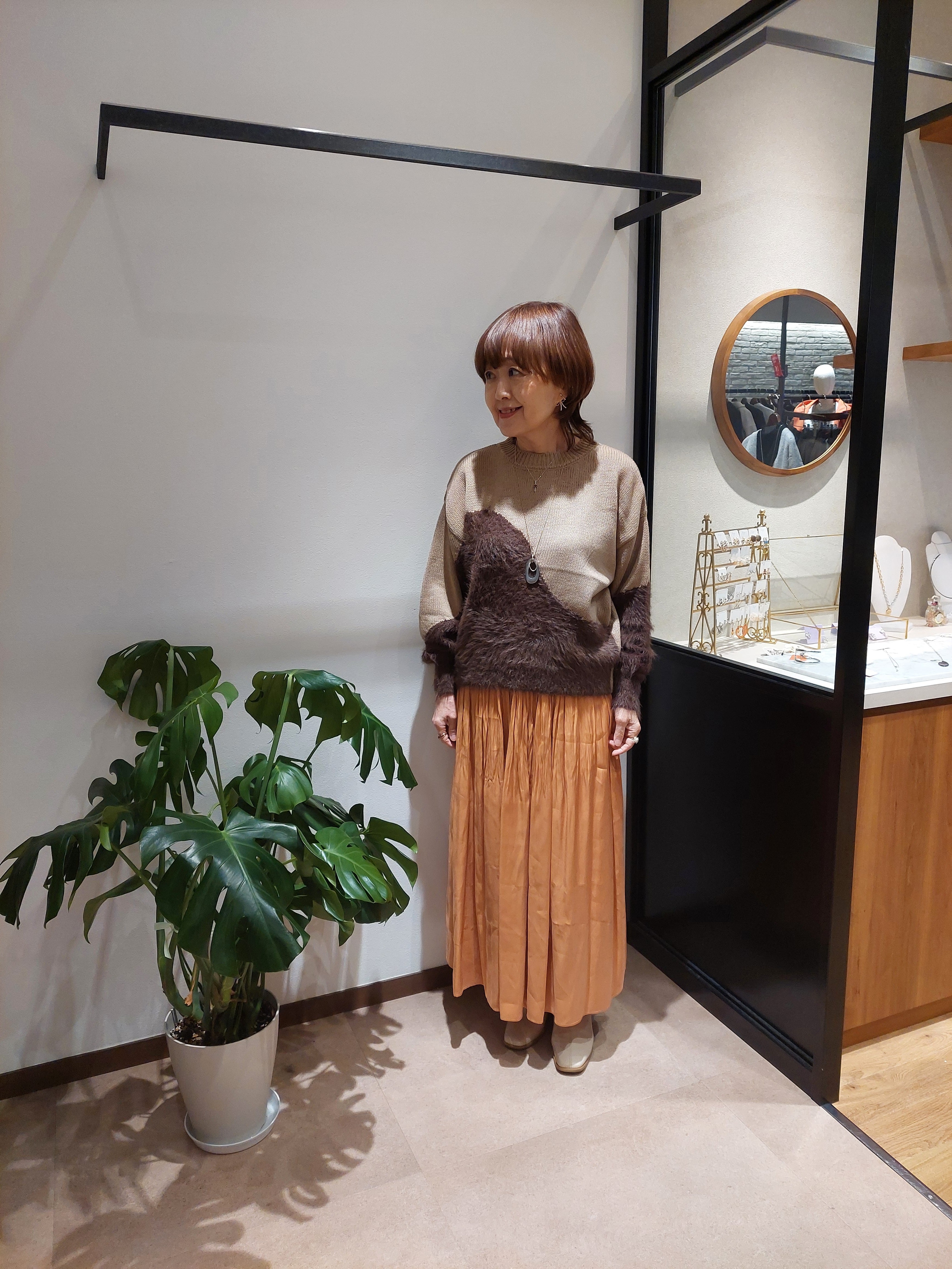 シャギー素材が見た目にも映える、異素材切替ニット。