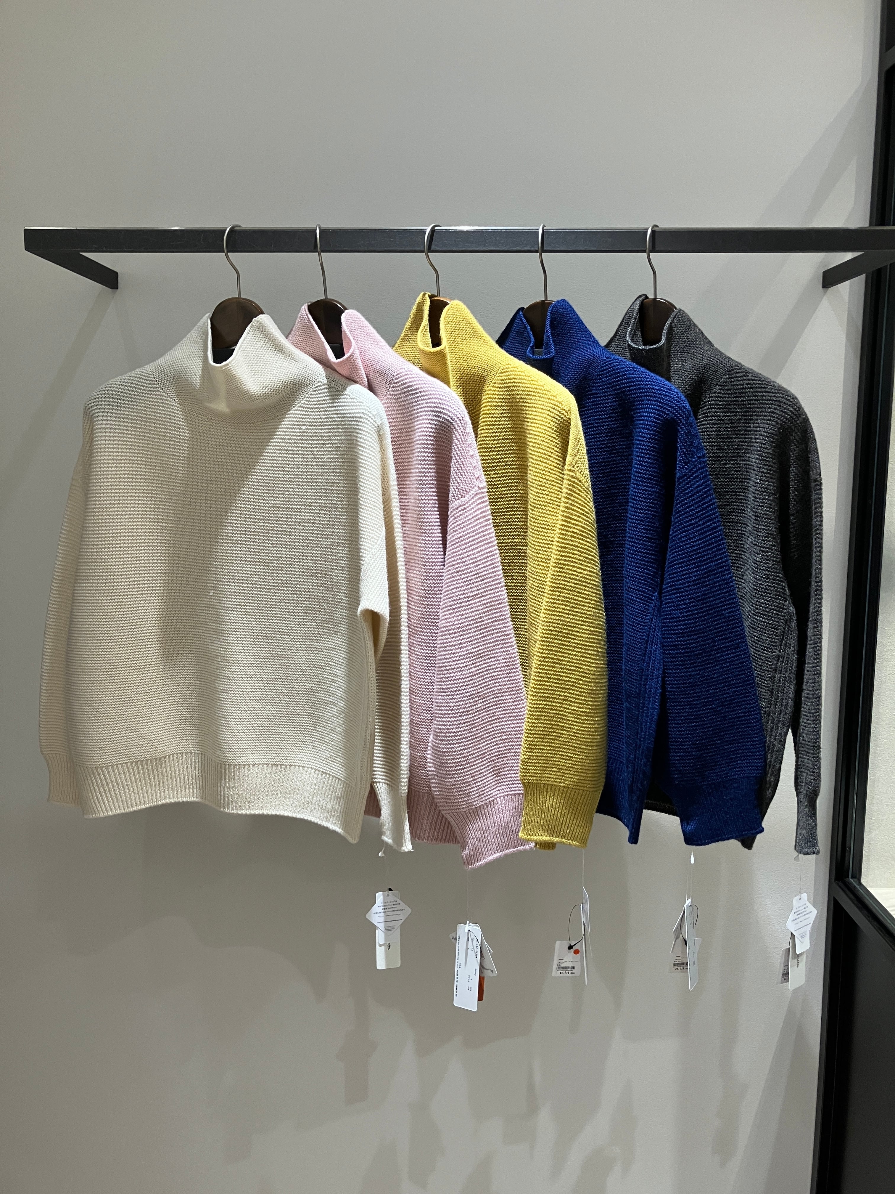 すっきりとしたボトルネックとふんわり袖で今季らしく。