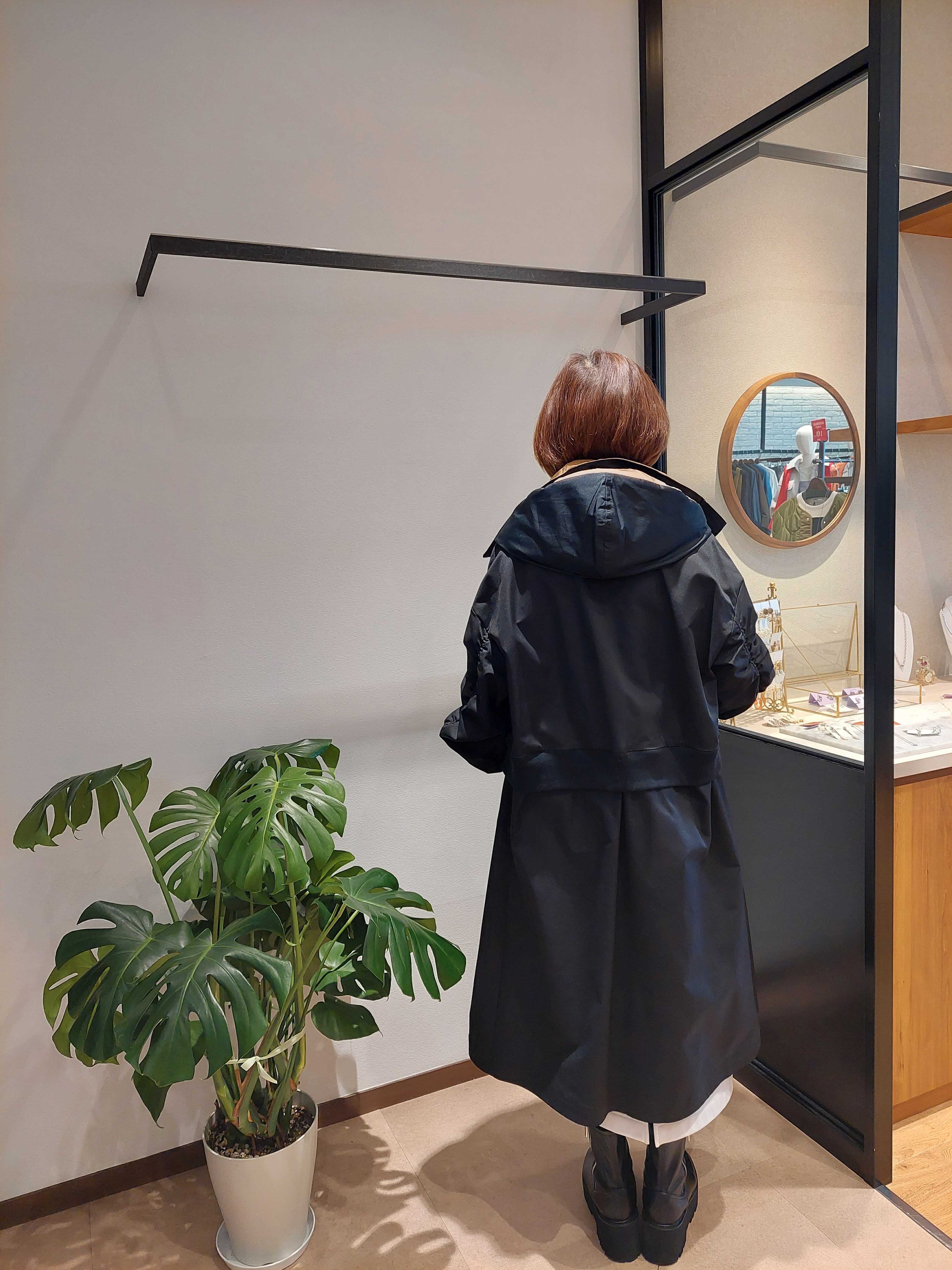 撥水性のあるマットでしなやかな伸びのあるポリエステル素材を使用することでスポーティーになりがちなユーティリティーコートも柔らかな表情をかもし上品な印象です。