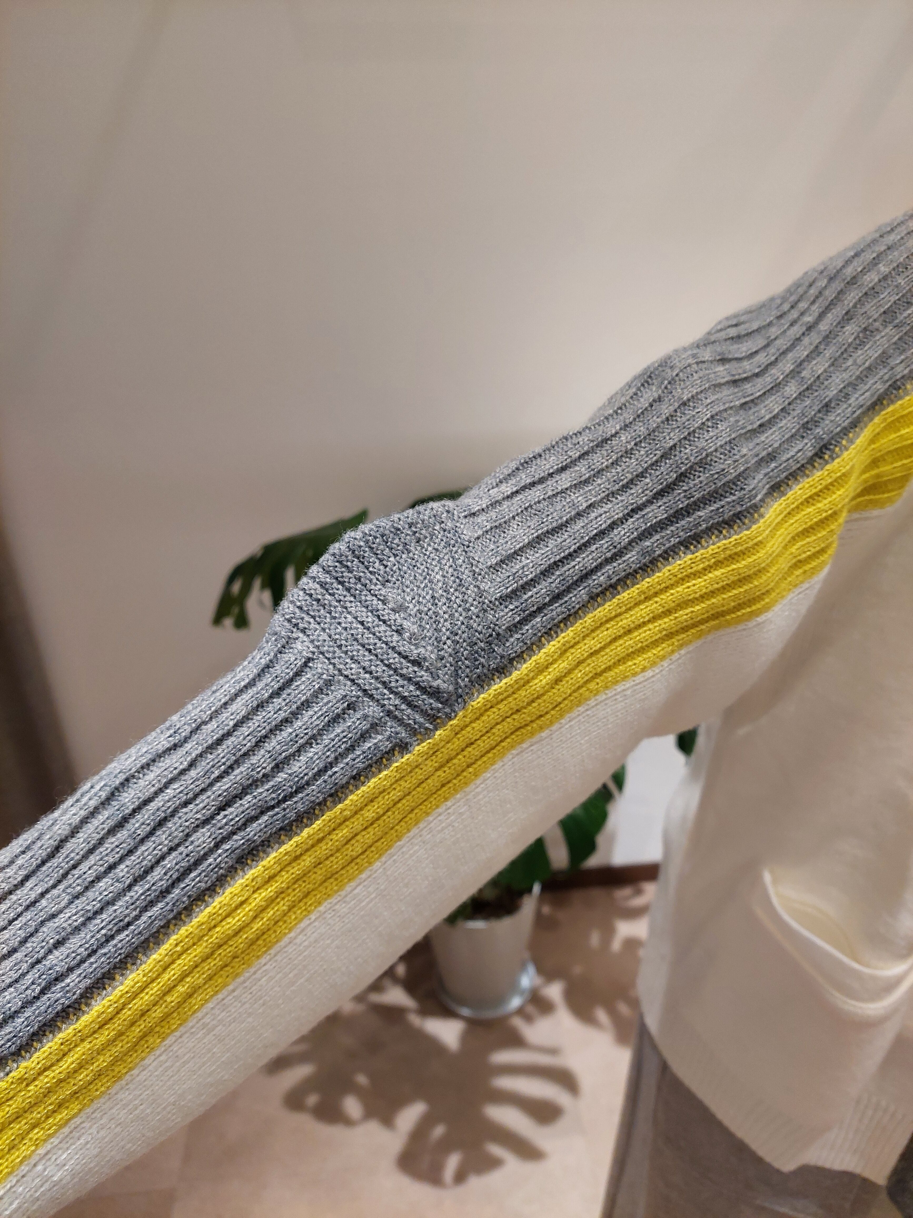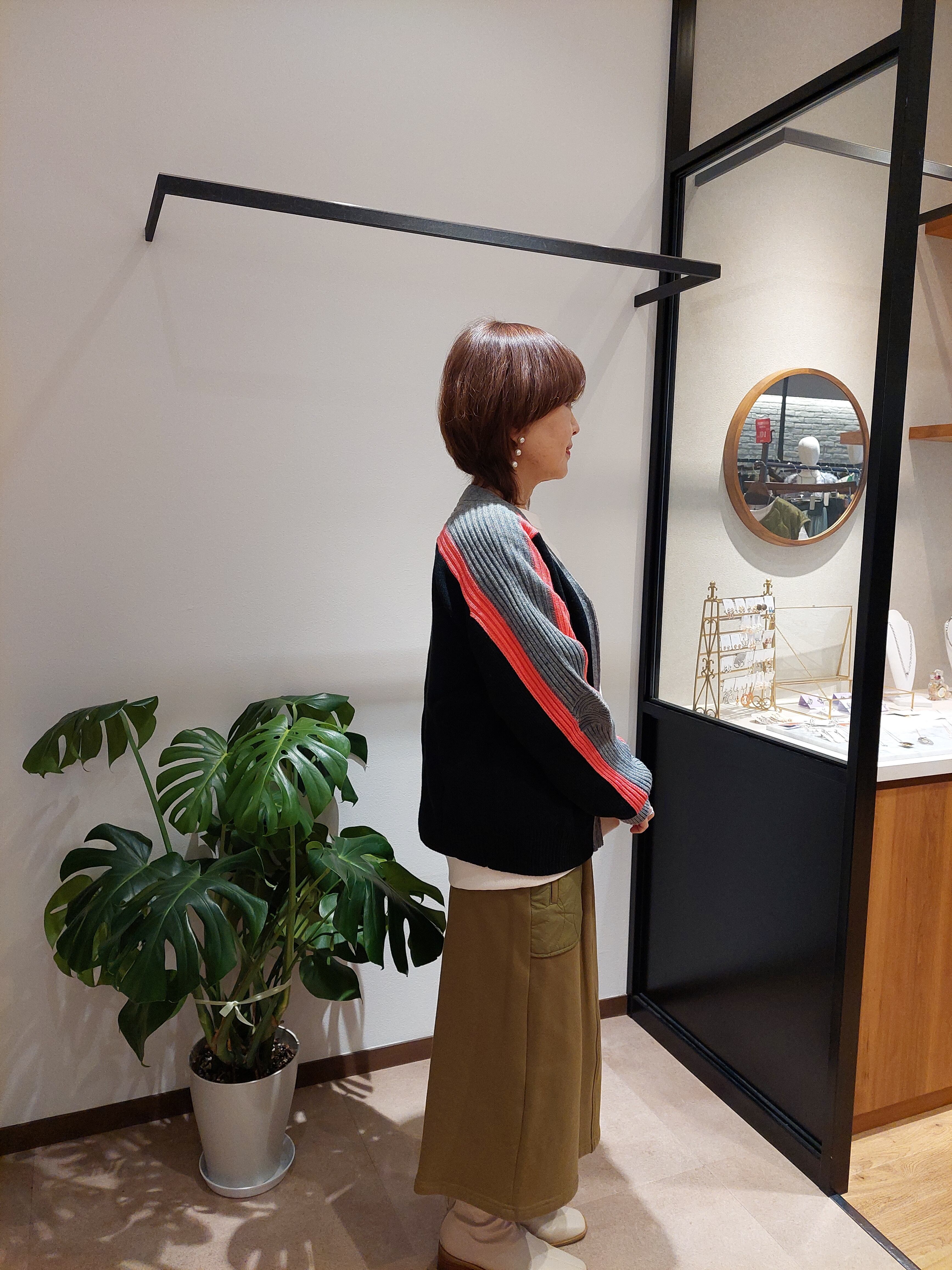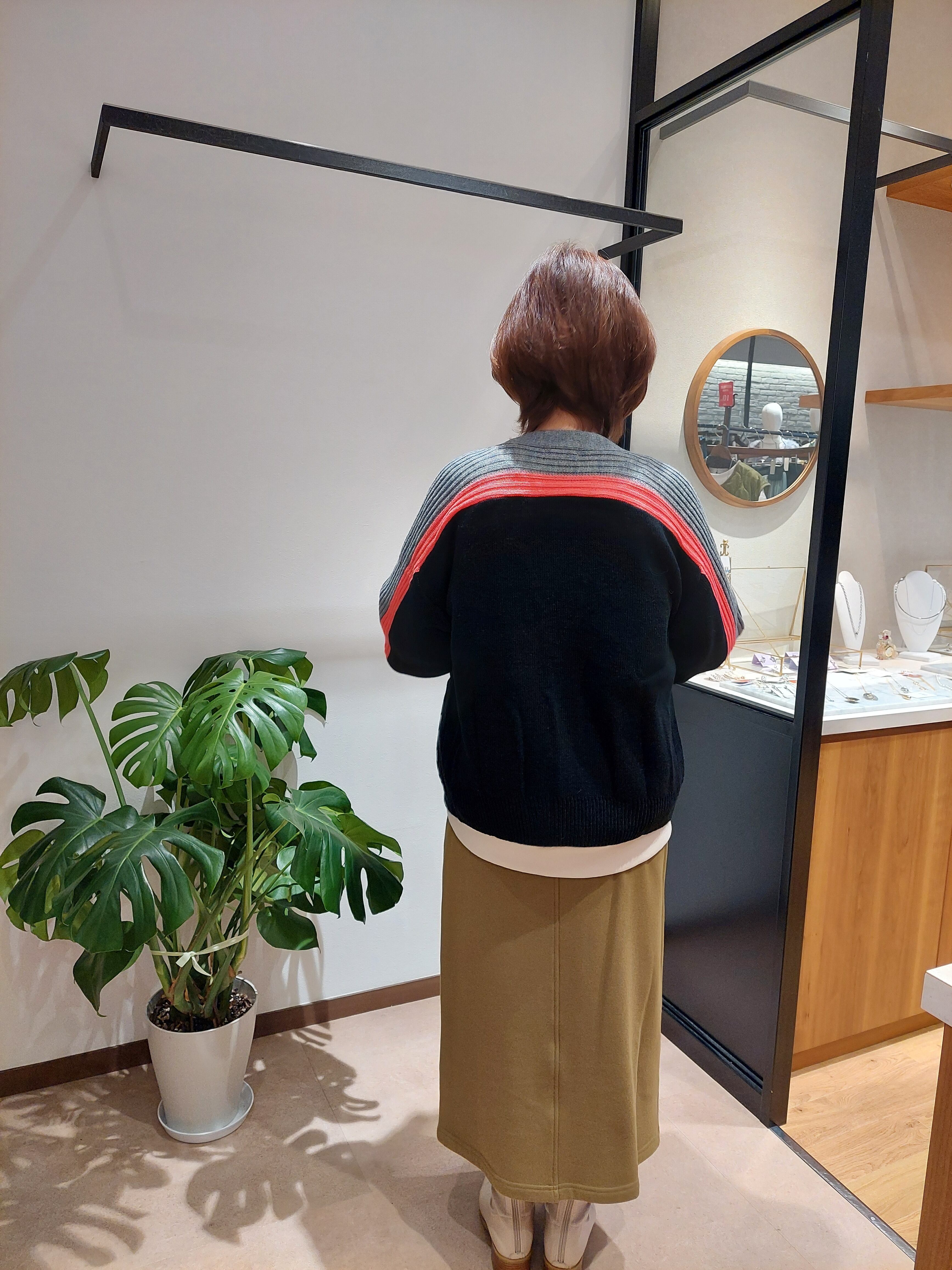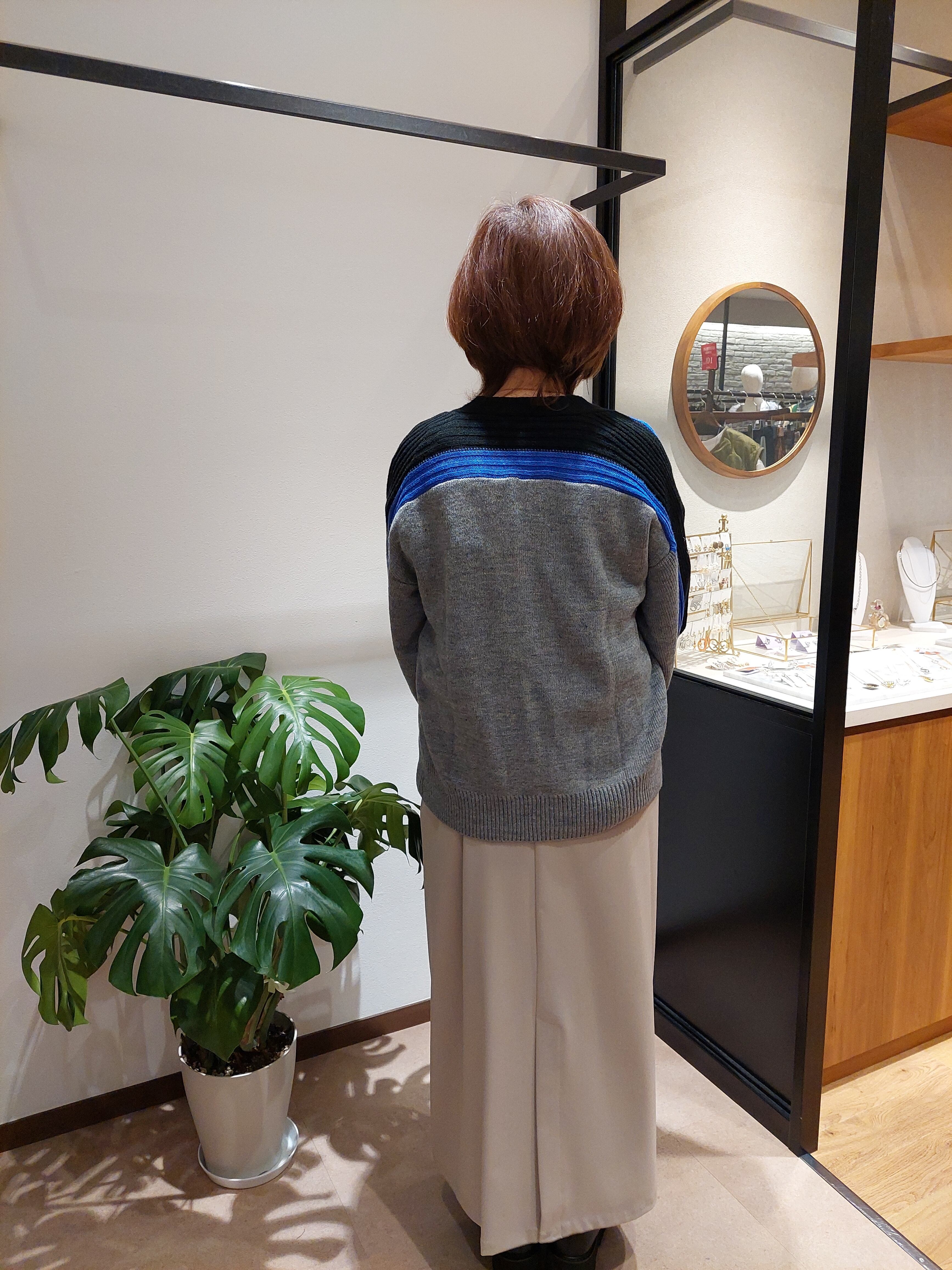 アシンメトリーと配色を楽しむニットカーディガン