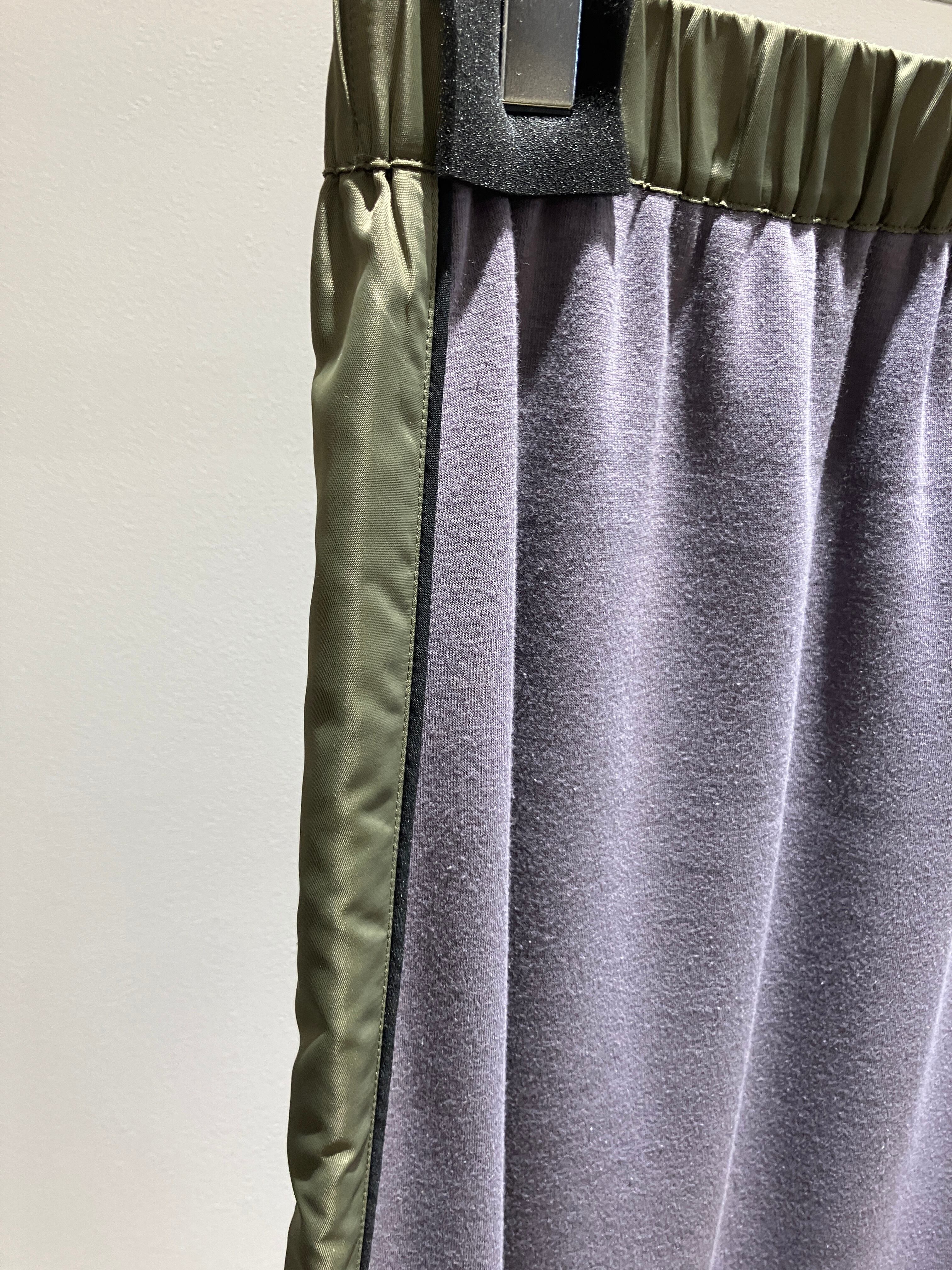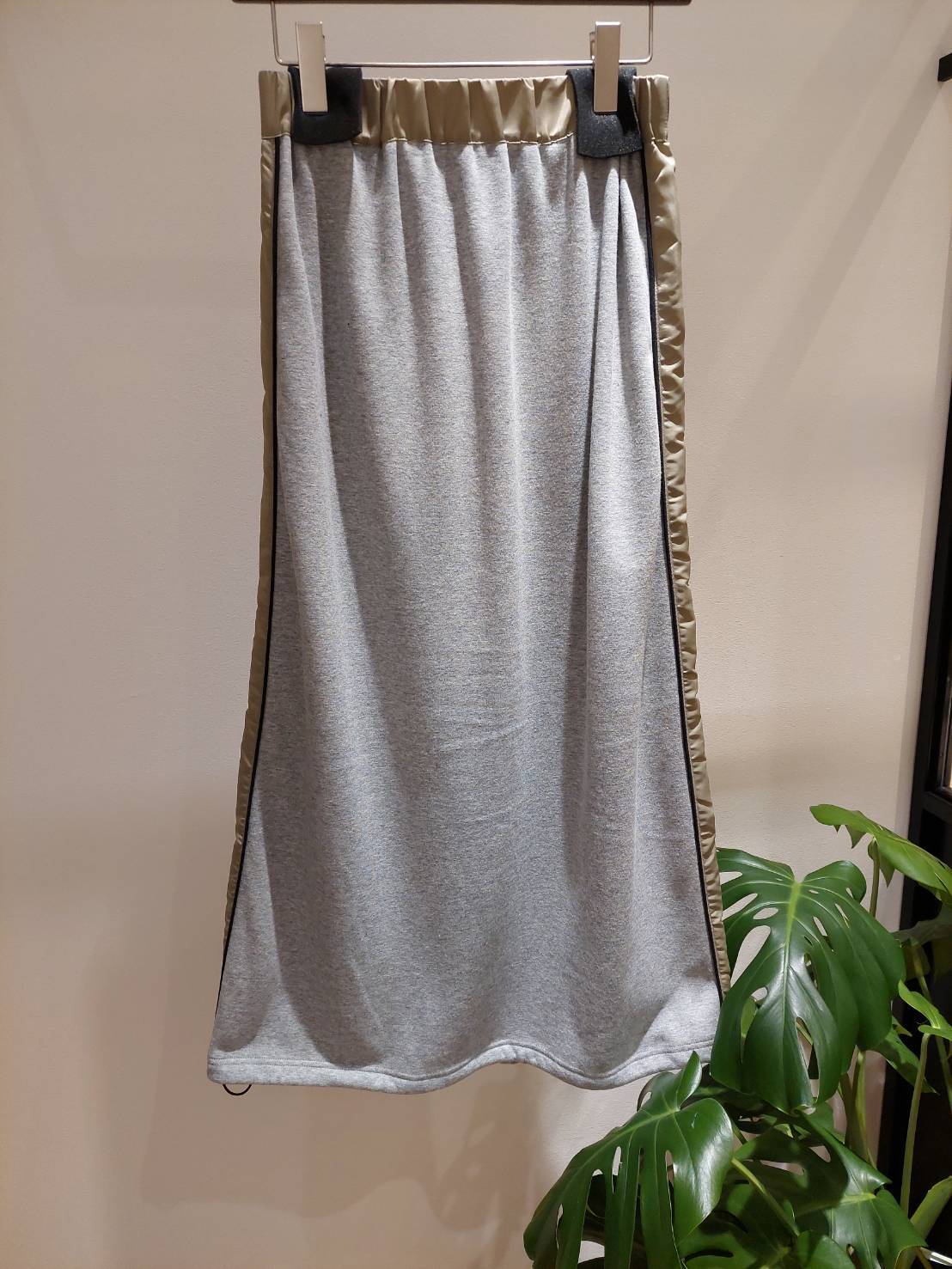 ウエストからサイドにかけたタフタ切替が特徴的なタイトスカート。
