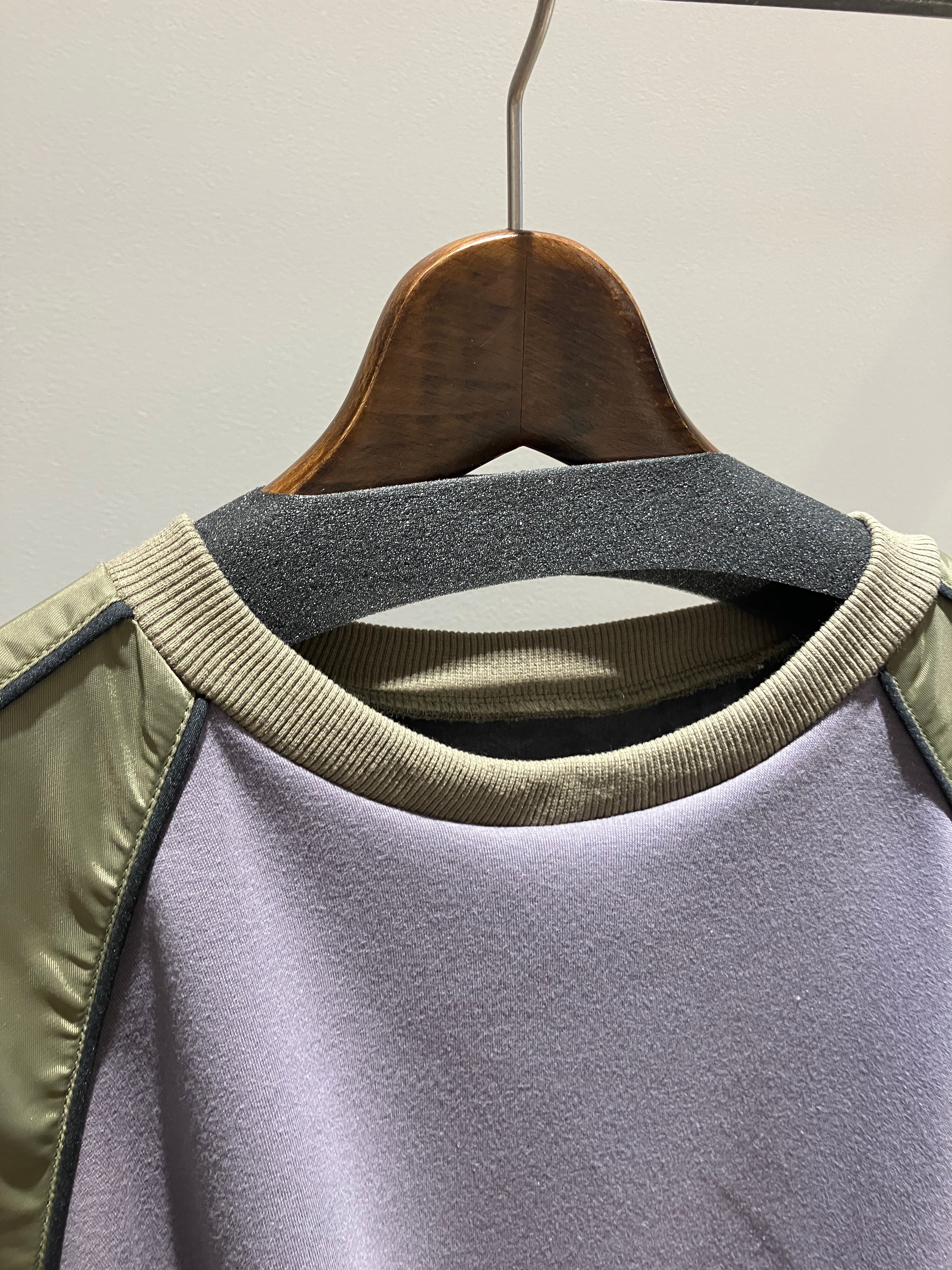 首元から袖にかけてタフタ切替になっているプルオーバー。