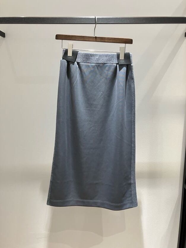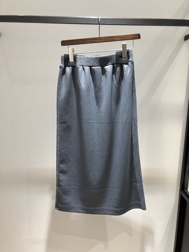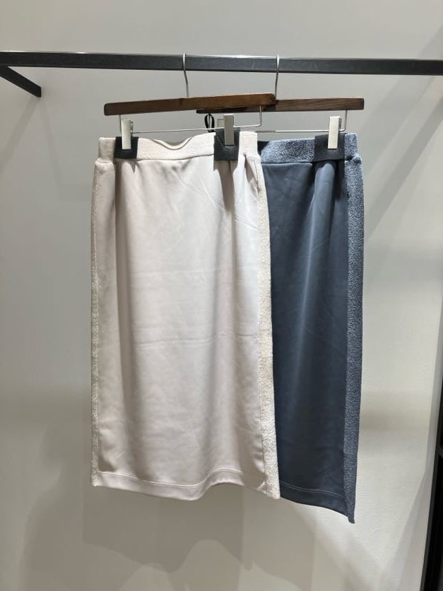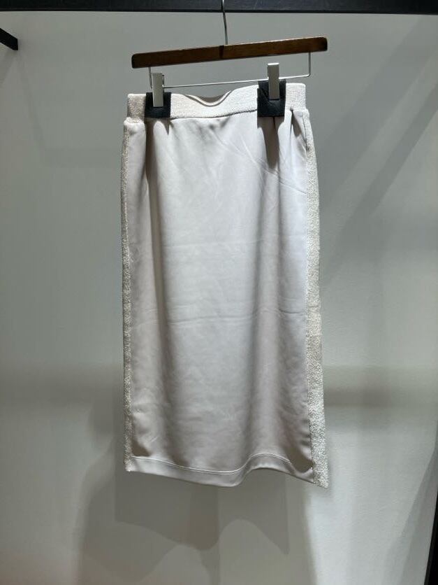 サイド部分がニット素材に切り替わっている異素材スカート。
