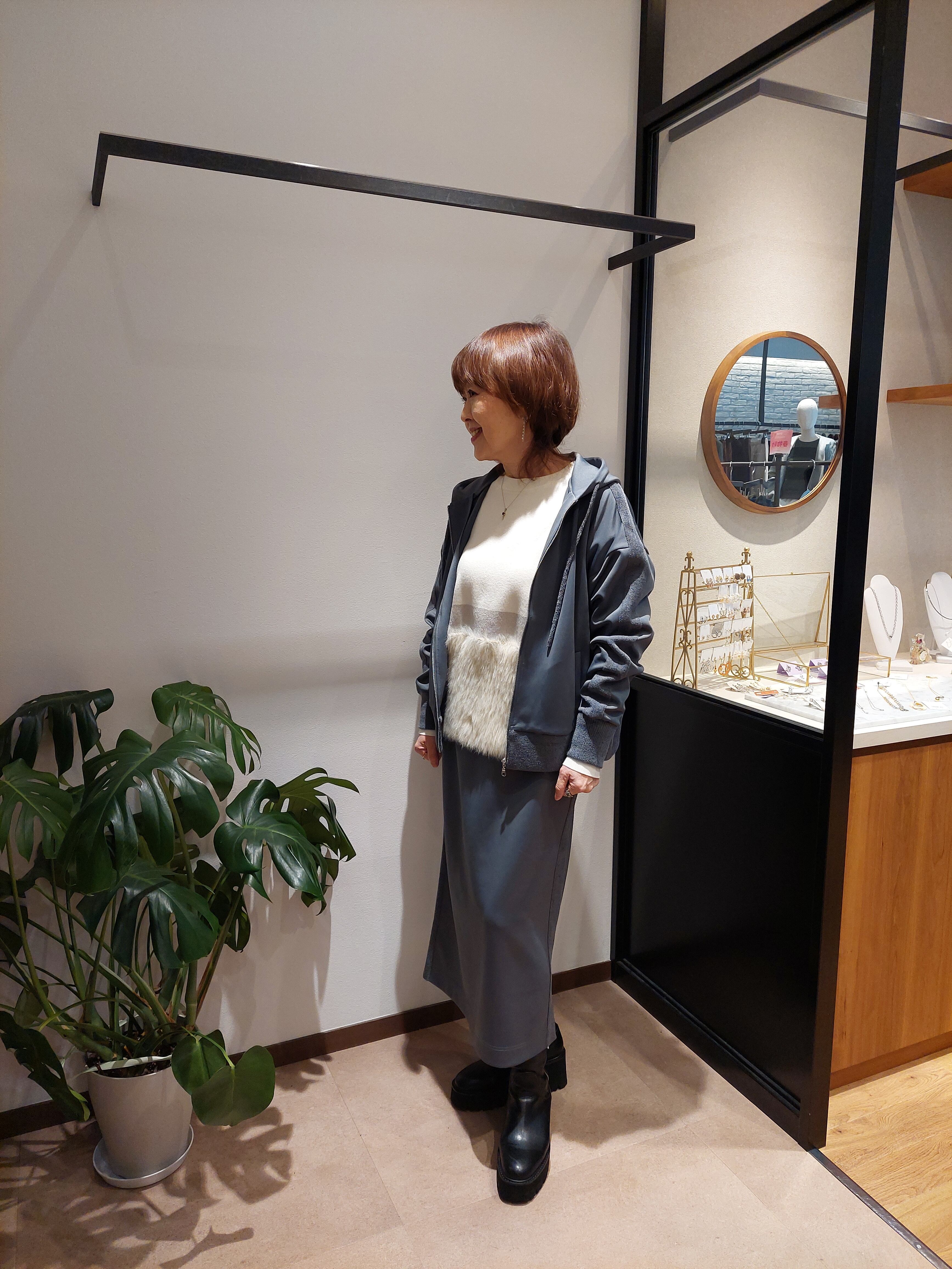 サイドに起毛感のあるニット素材をドッキングする事でちょっとしたアクセントに。