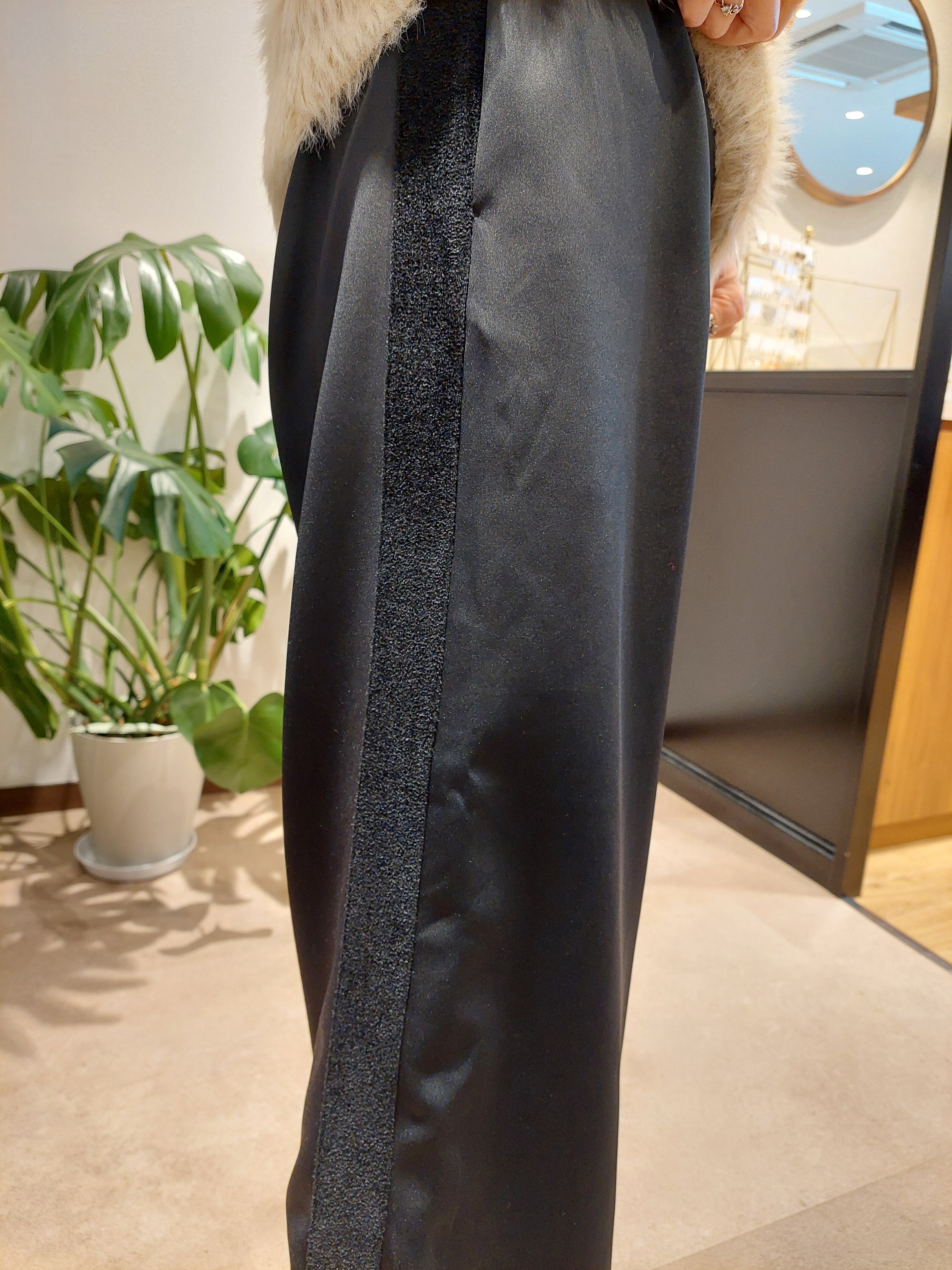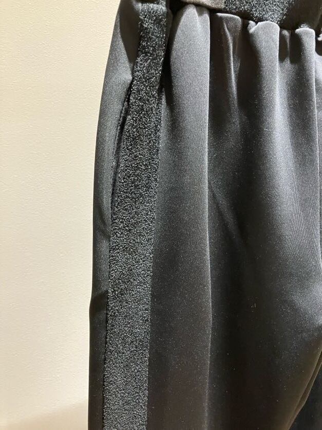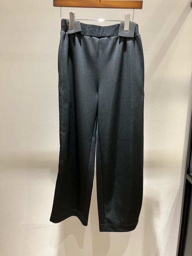 サイド部分がニット素材に切り替わっている異素材パンツ。