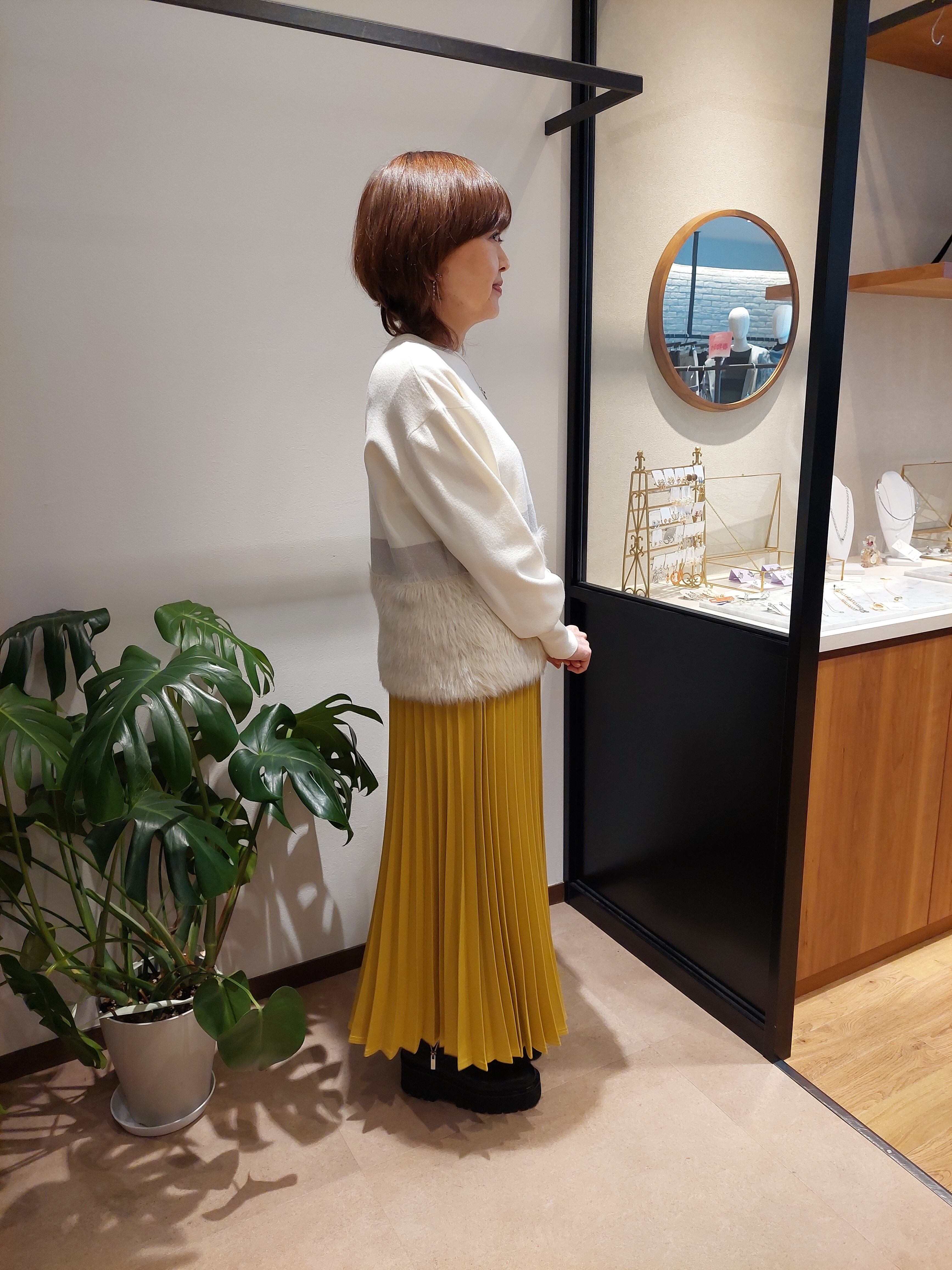 広がり過ぎないシルエットとプリーツの縦ライン効果ですっきり体型カバーも叶います。