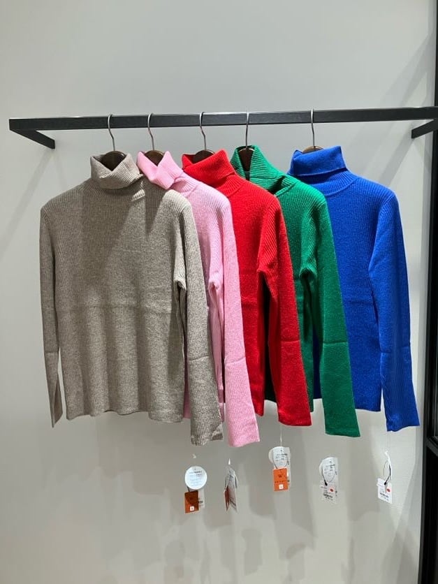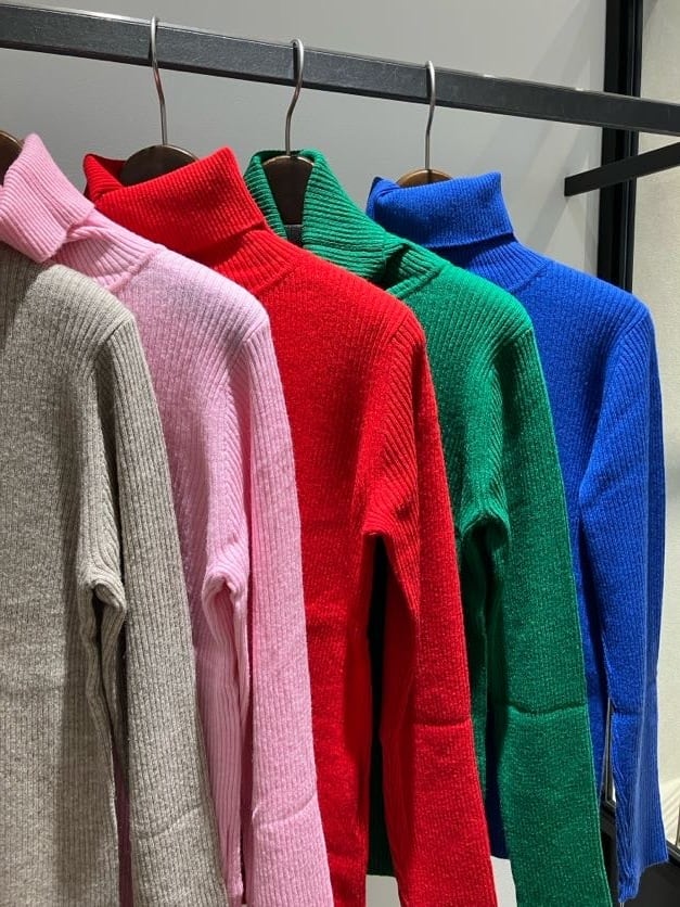 カシミア混で滑らかな肌触りのタートルネックニット。