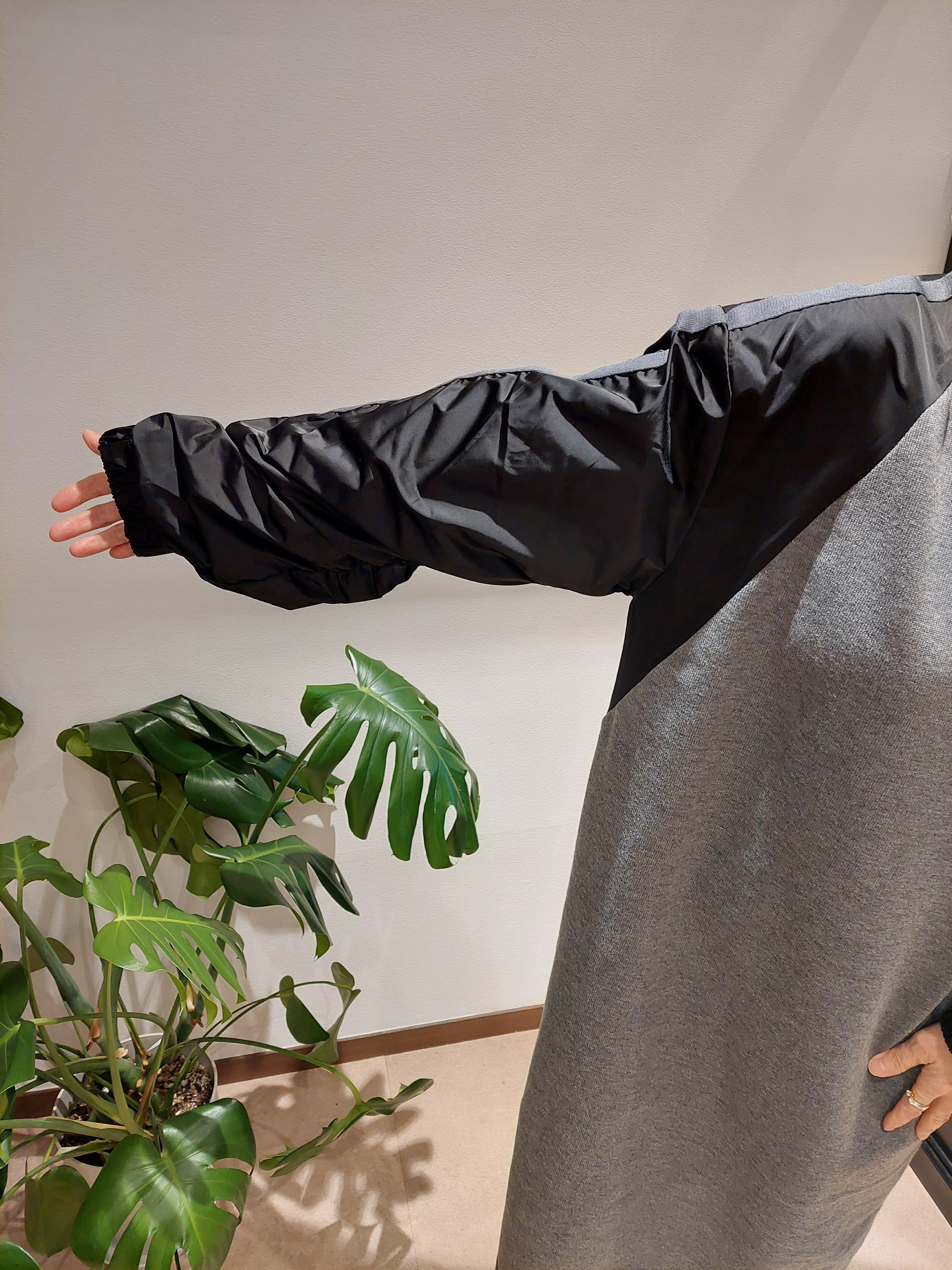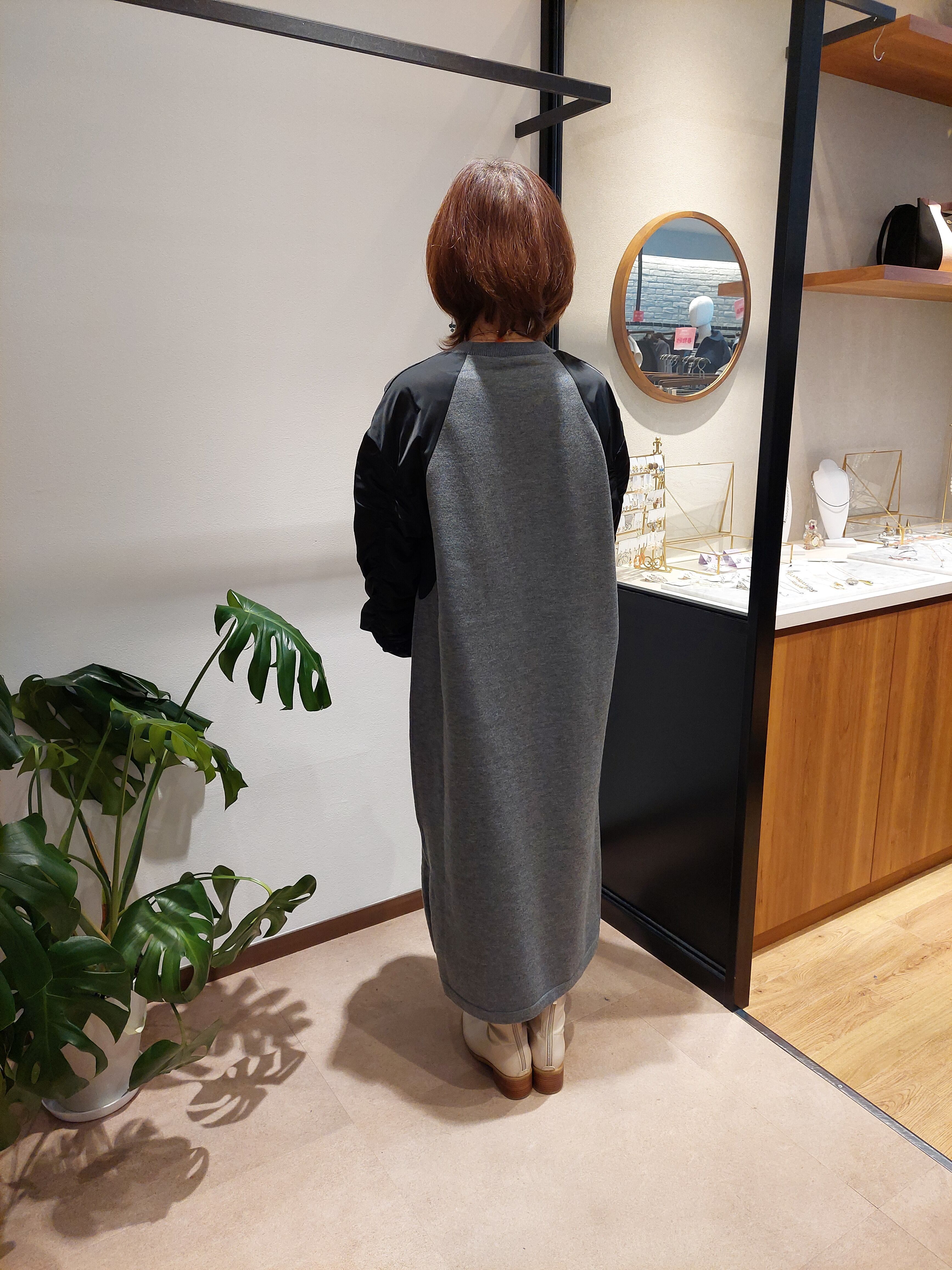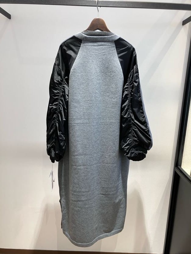 ボリューミーな異素材切替なお袖が特徴的なワンピース。