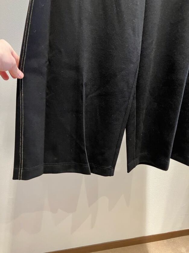 とろみのあるしなやかさと、程よいハリ感がハイブリッドな生地感のワイドパンツ。