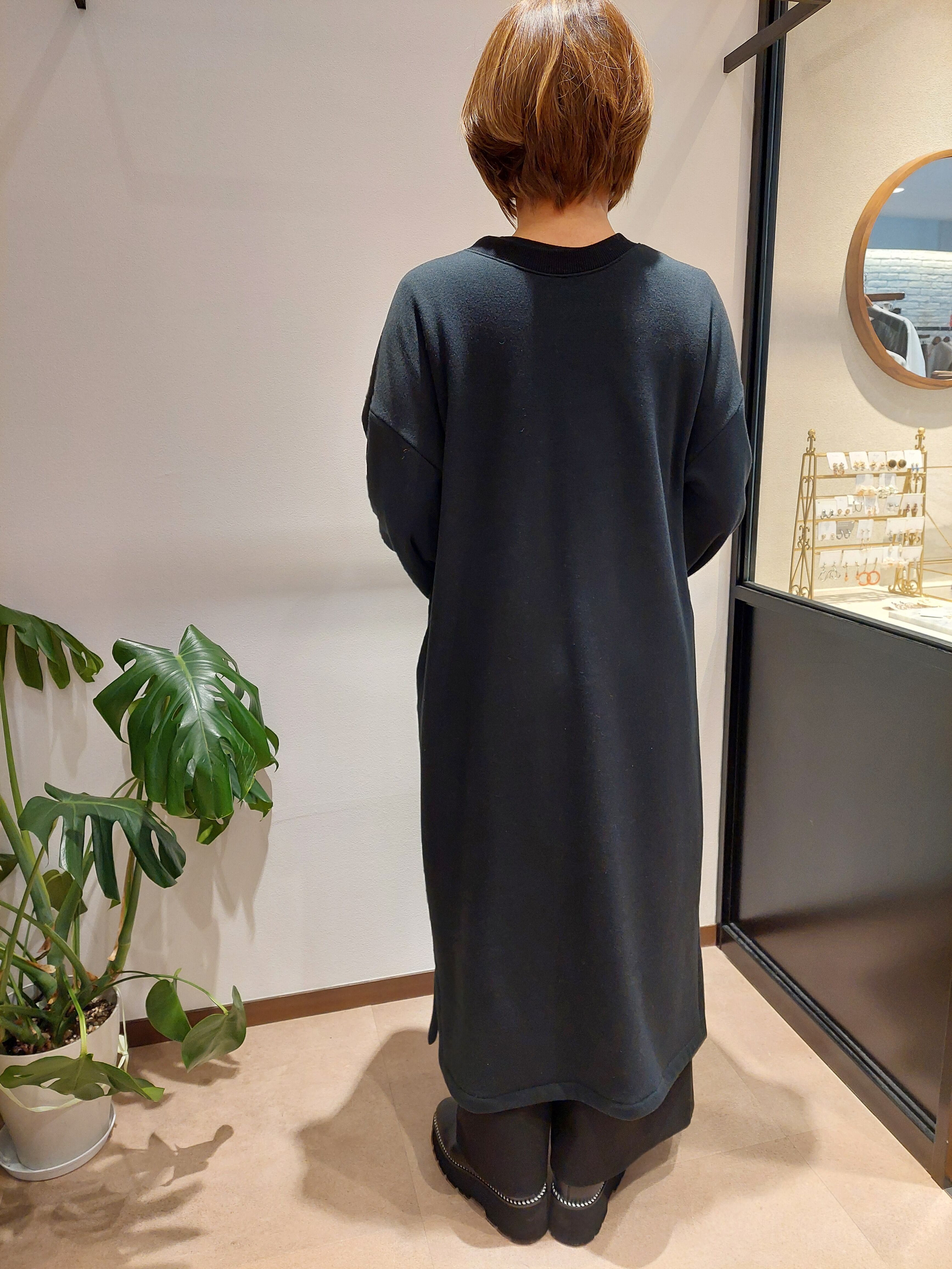 一枚で着用できるロング丈は両脇のスリットで軽さをプラス。