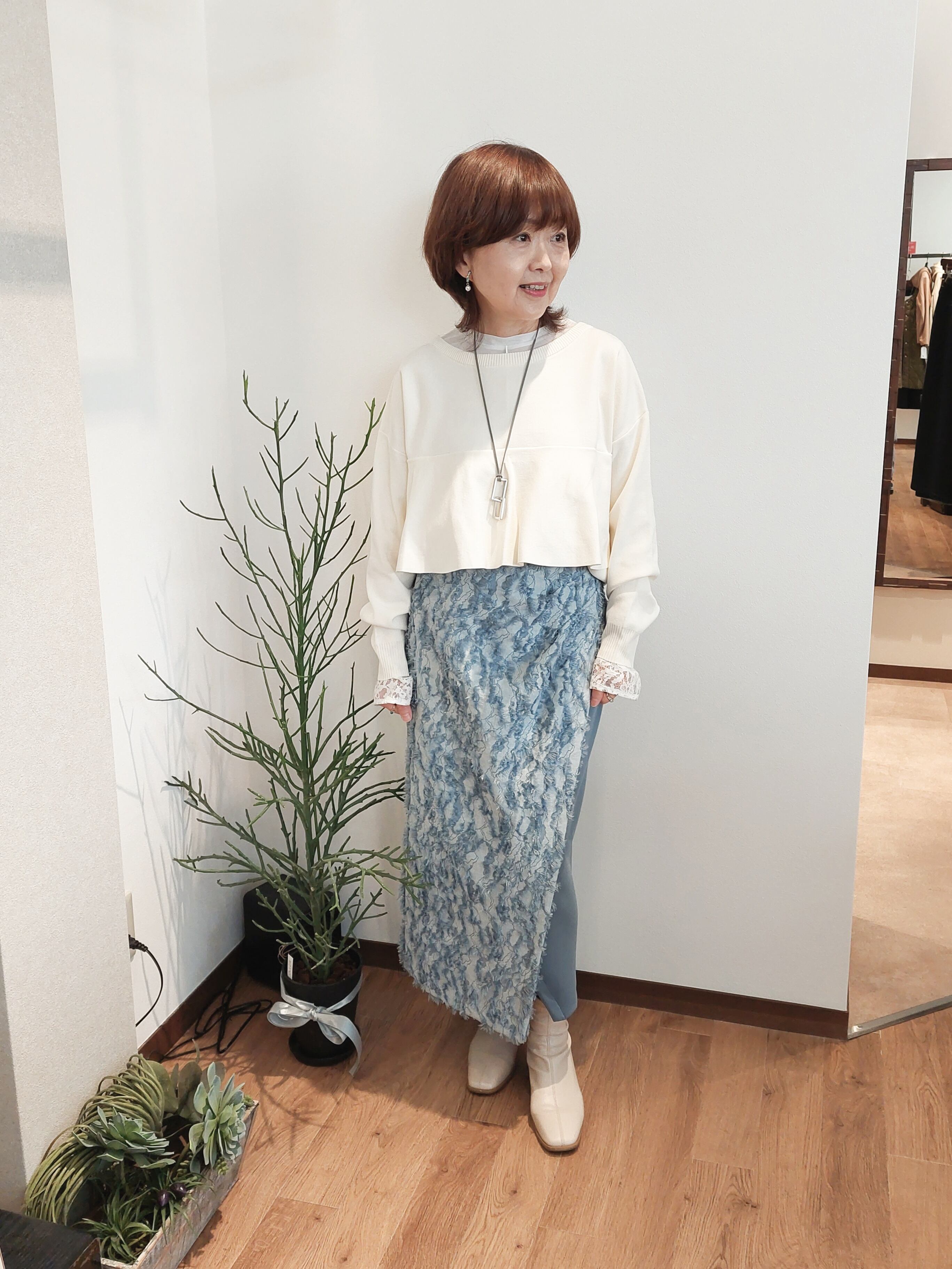 ブラウス合わせだと品よくまとまります。